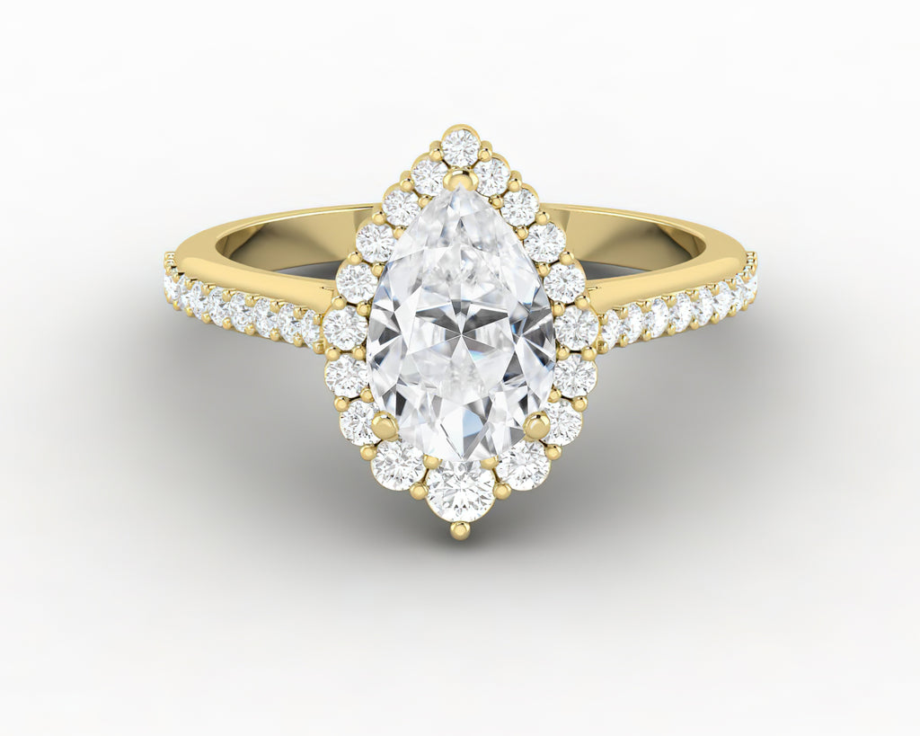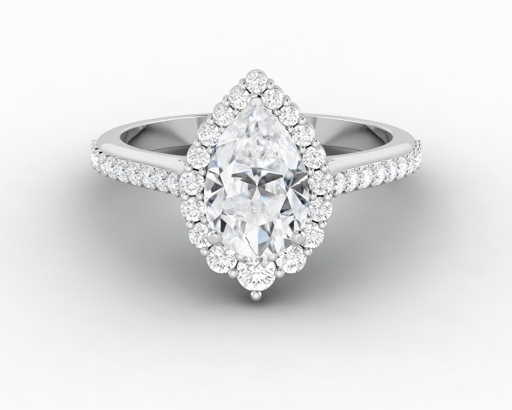 Ava 1.25 Ct Pear Cut Halo Engagement Ring With Side Stones