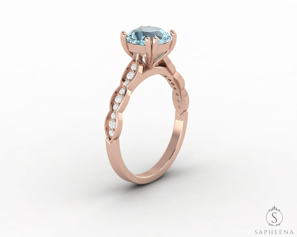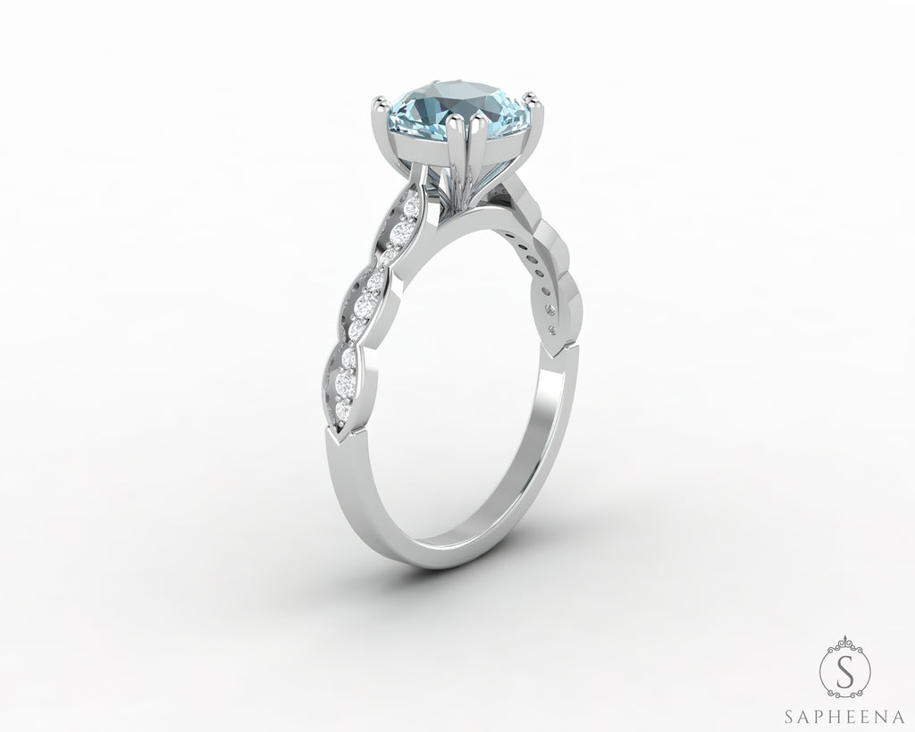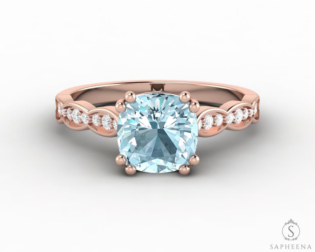 Celeste 1.5 Ct Solitaire Cushion Cut Natural Aquamarine Engagement Ring With Side Stones