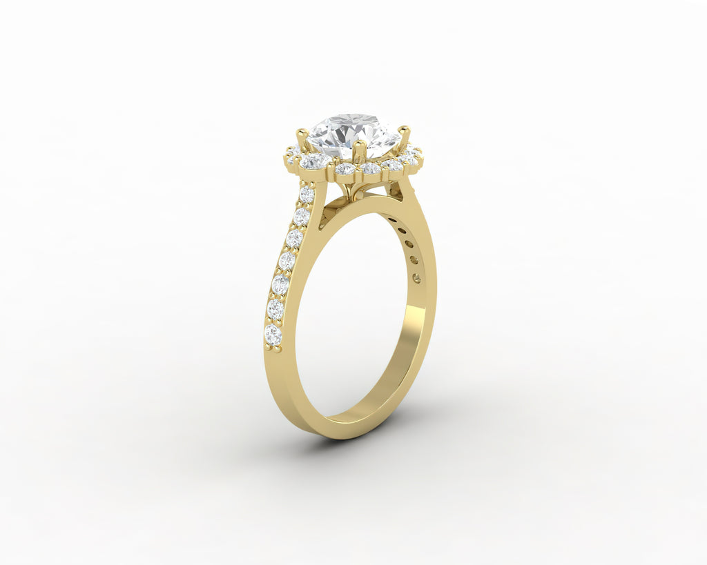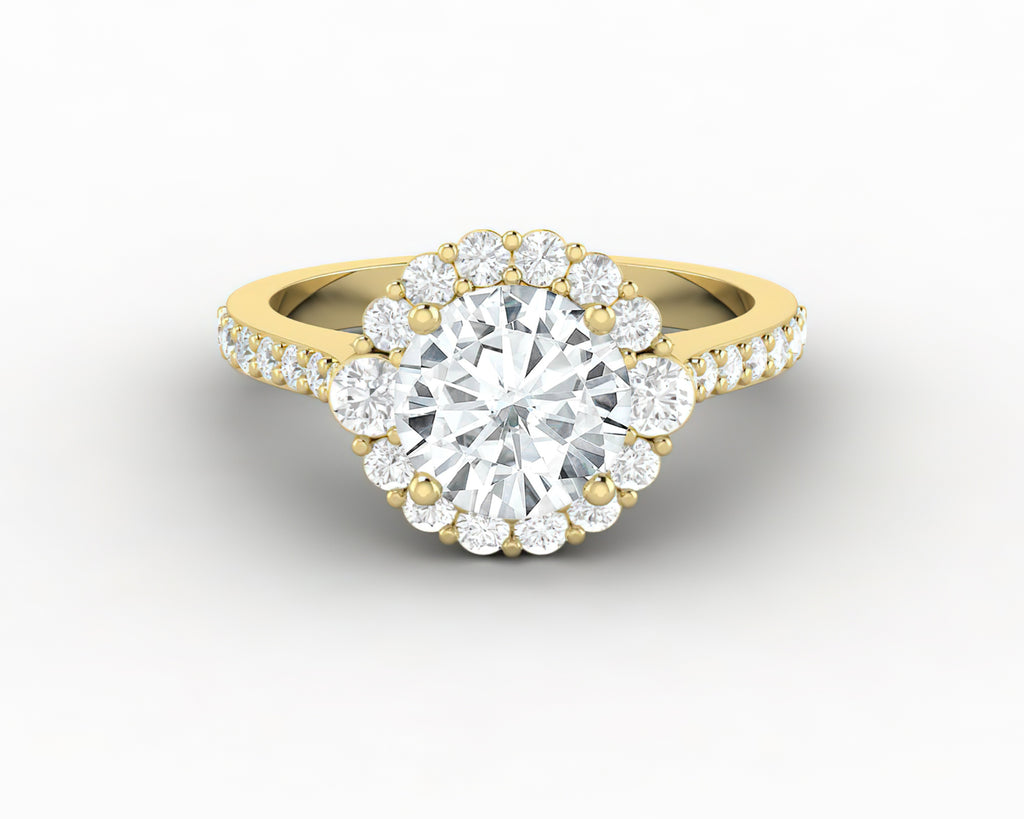 Enya 1.0 Ct Round Cut Halo Moissanite Engagement Ring with Side Stones