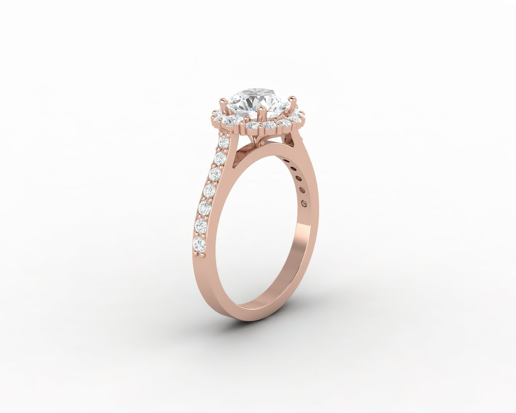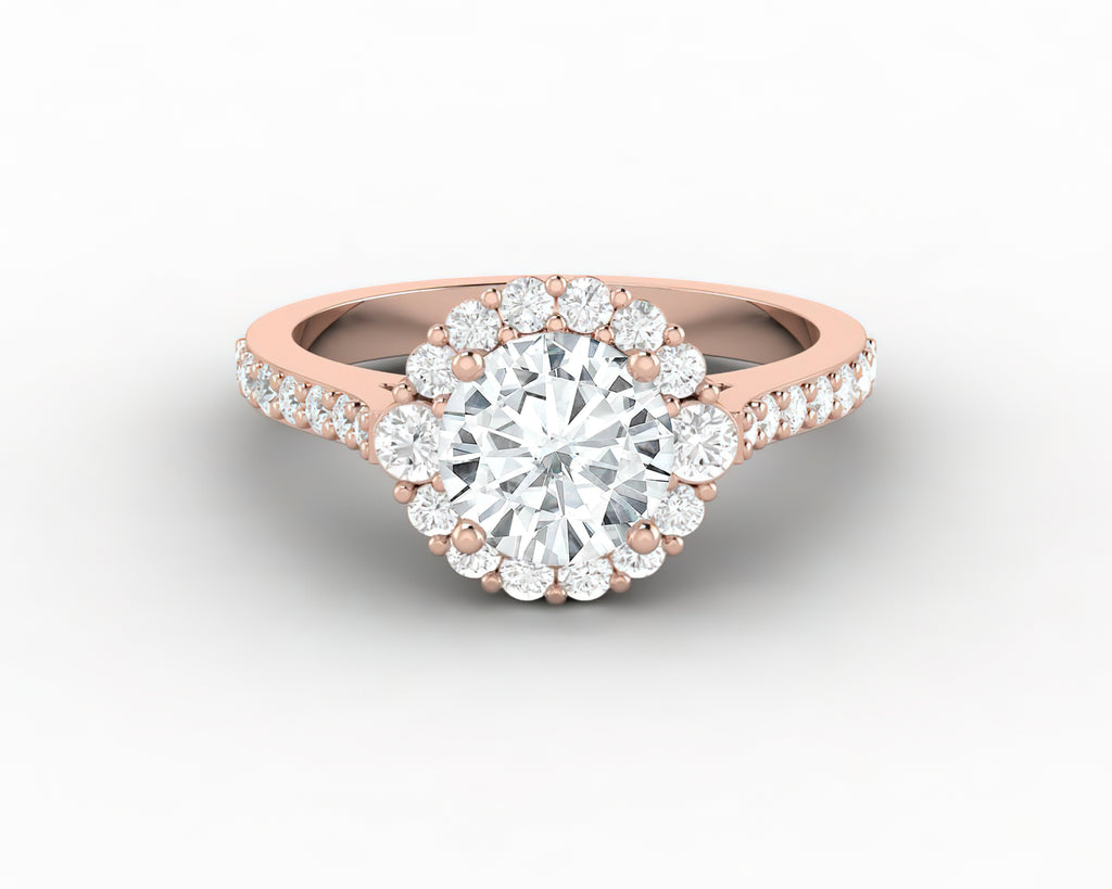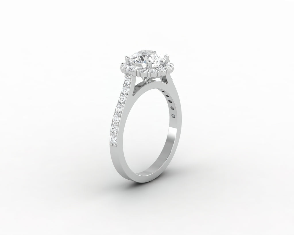 Enya 3/4 Ct Round Cut Halo Moissanite Engagement Ring with Side Stones
