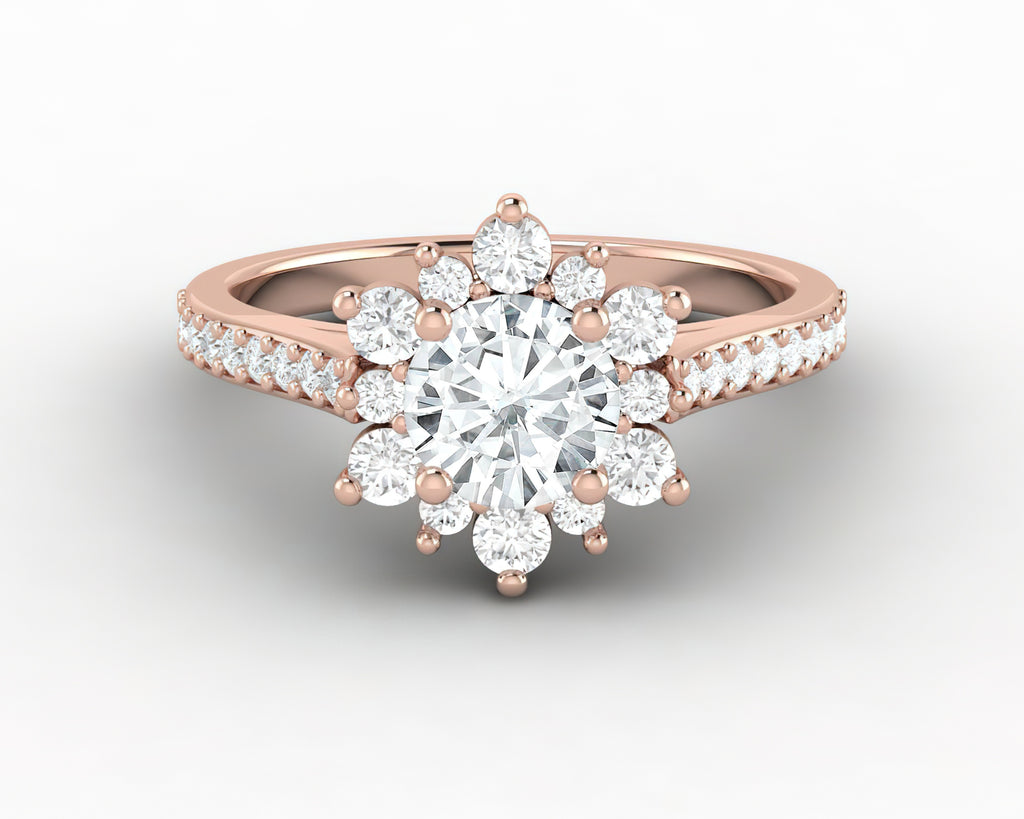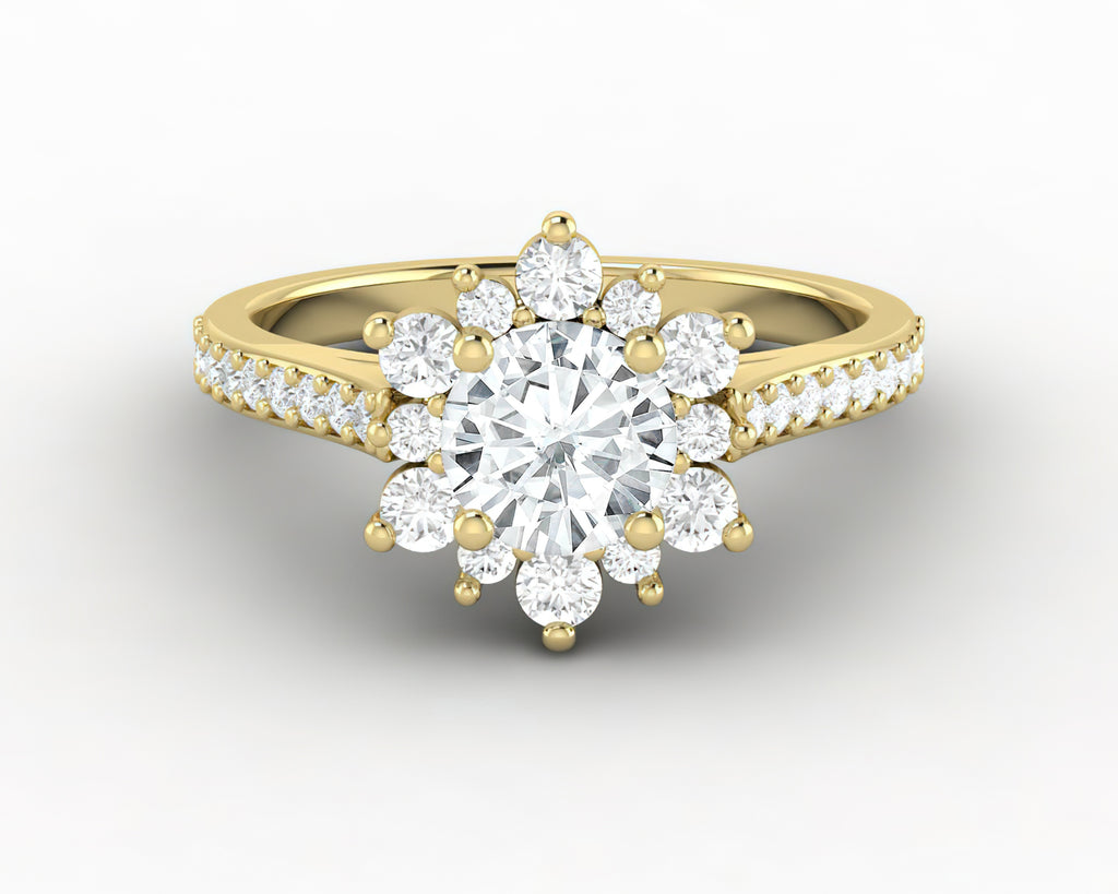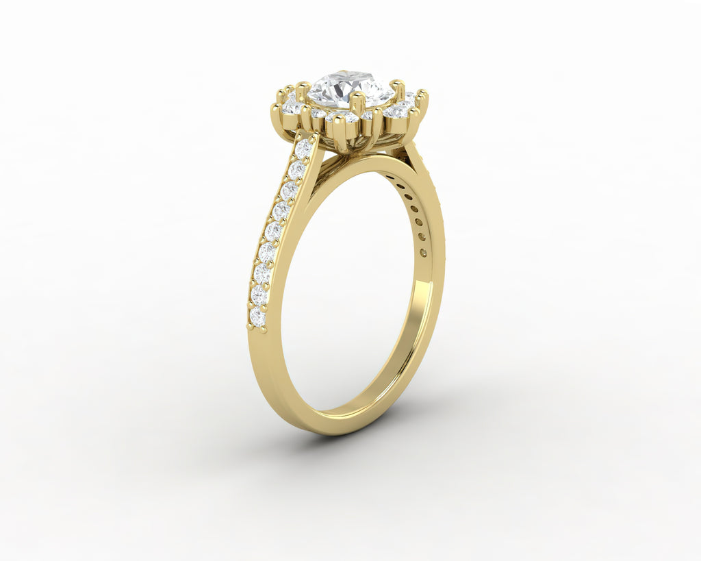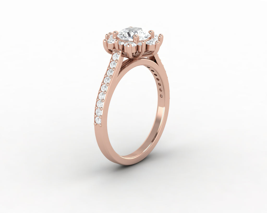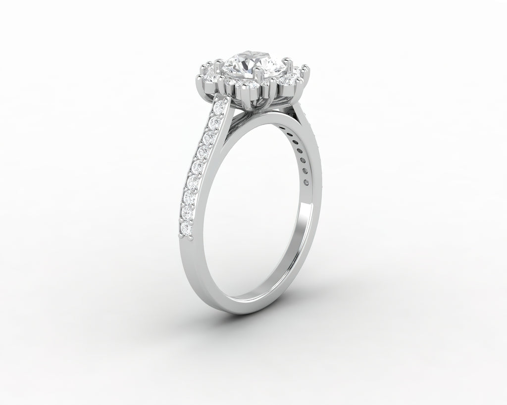 Nivis 0.75 Ct Round Cut Halo Engagement Ring with Side Stones