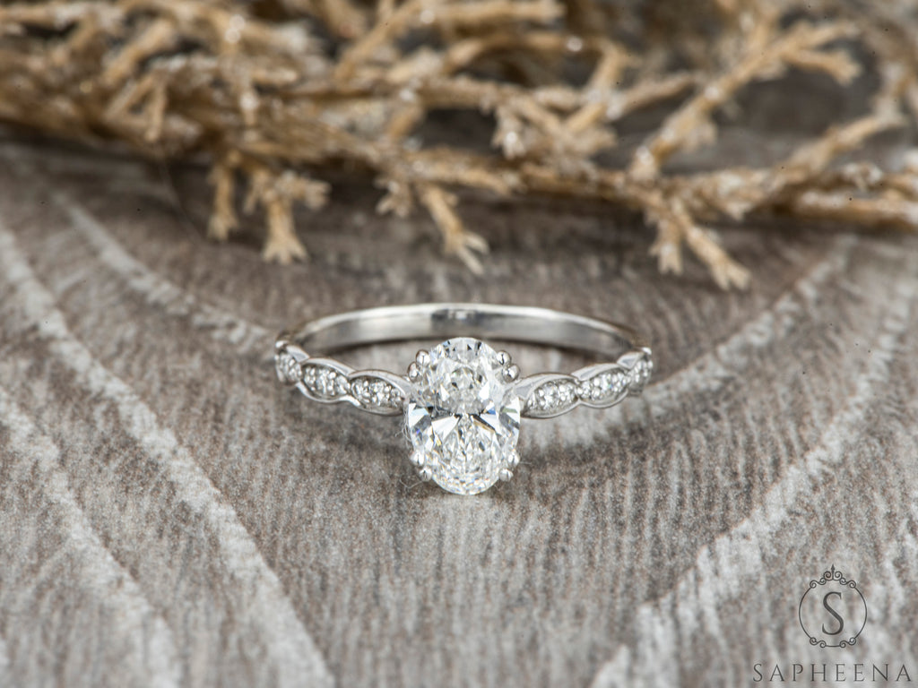 Celeste 1.0 Ct Solitaire Oval Cut Engagement Ring With Side Stones