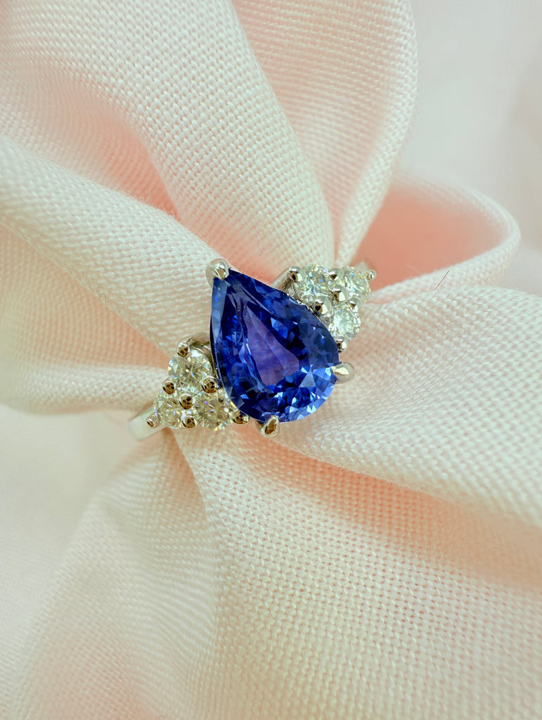 Astrid 1.50 Ct Pear Cut Natural Lavender Blue Sapphire Engagement Ring