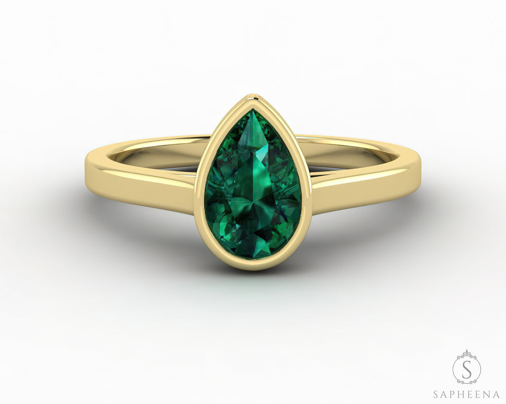 Siara 0.75 Ct Solitaire Pear Cut Green Emerald Engagement Ring
