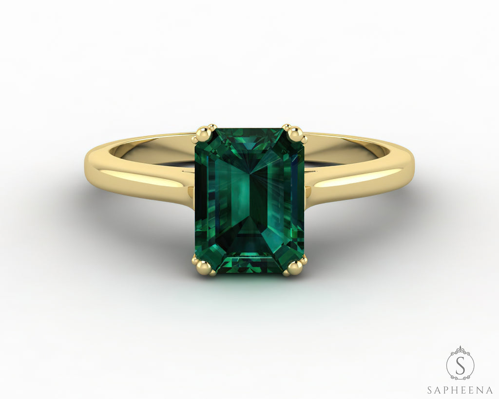 Lilian 2.0 Ct Solitaire Emerald Cut Green Emerald Engagement Ring