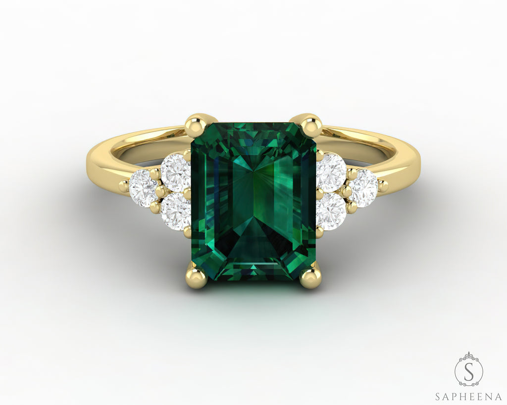 Thea 2.0 Ct Emerald Cut Solitaire Green Emerald Engagement Ring with Side Stones