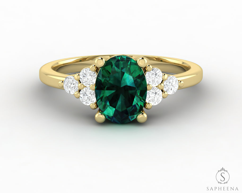 Astrid 1.0 Ct Oval Cut Green Emerald Engagement Ring