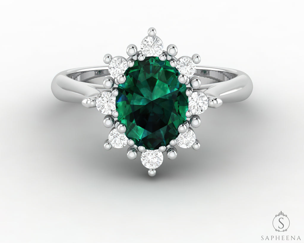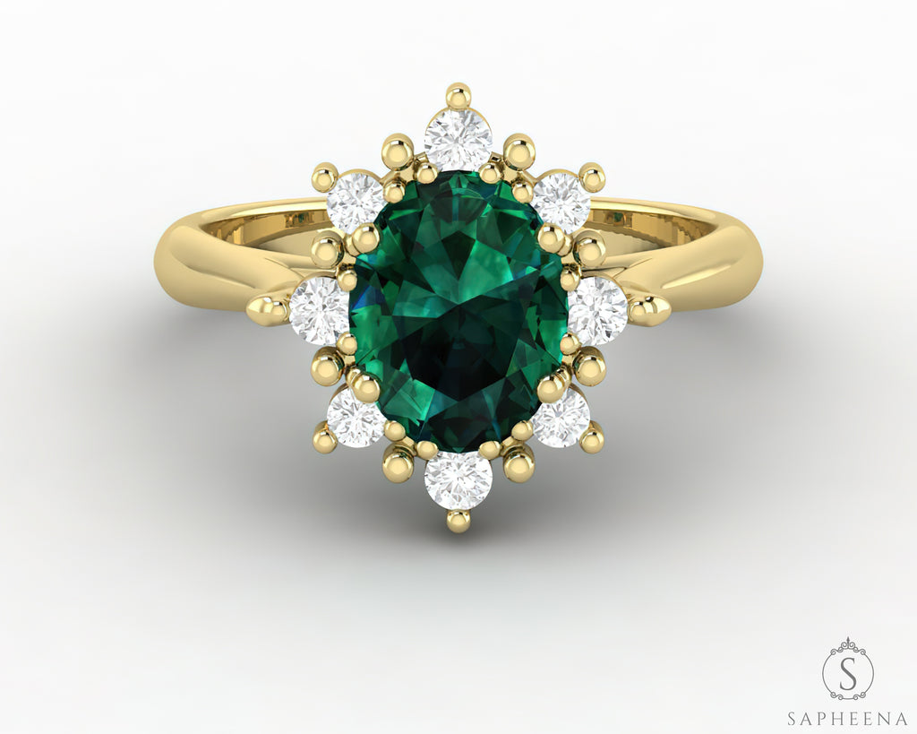 Maia 2.25 Ct Oval Cut Halo Green Emerald Engagement Ring