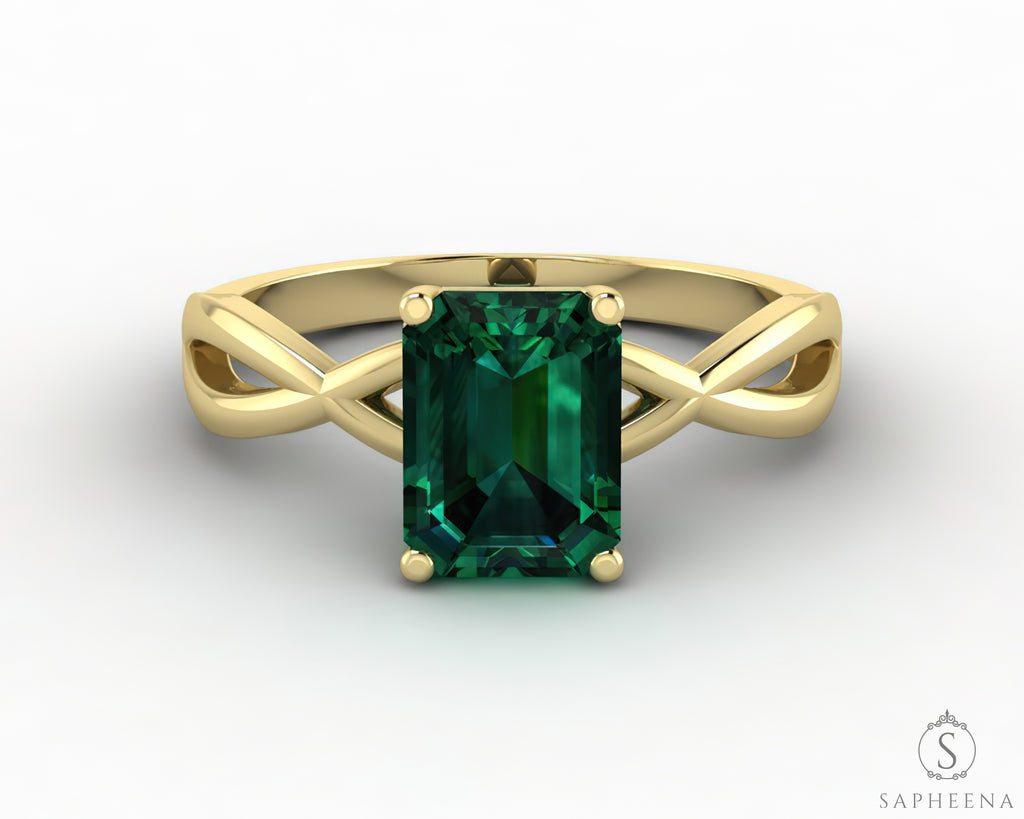 Viola 1.2 Ct Twisted Solitaire Emerald Cut Green Emerald Engagement Ring