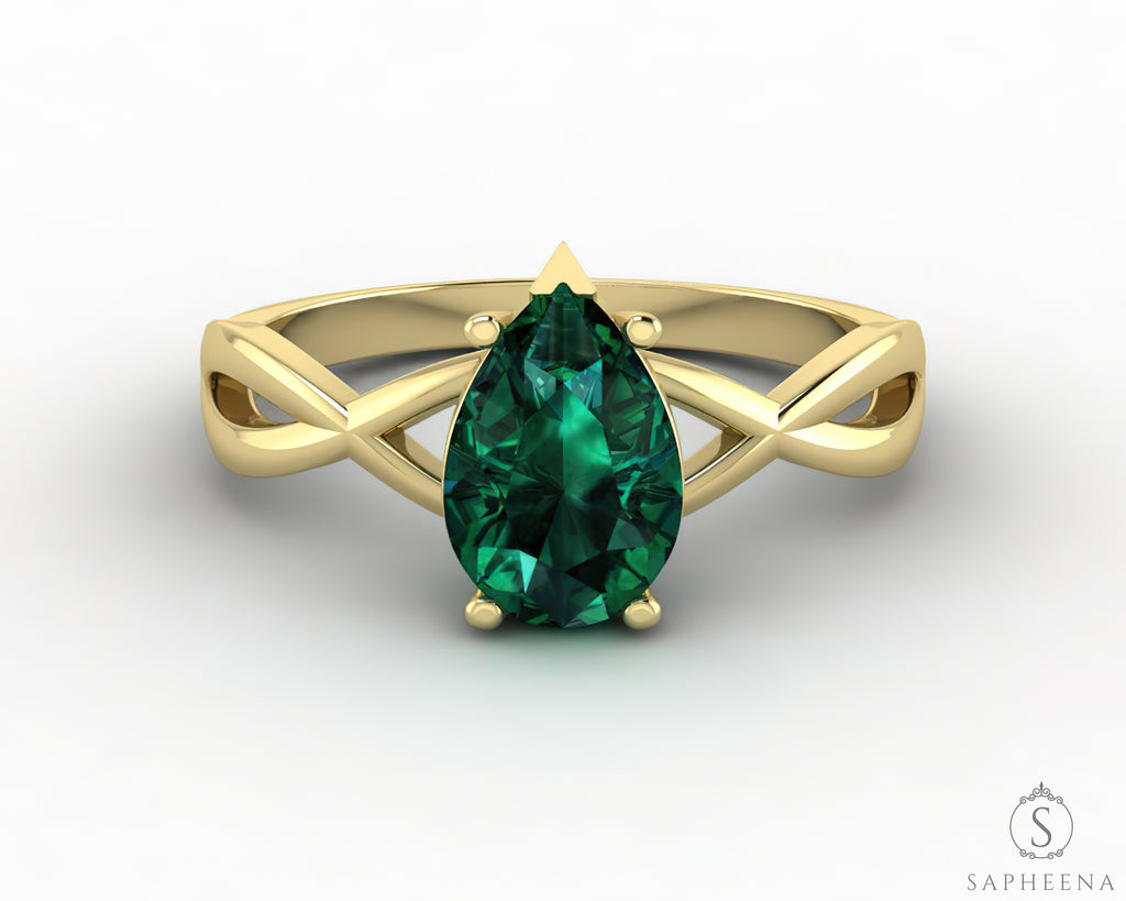 Viola 1.25 Ct Twisted Solitaire Pear Cut Green Emerald Engagement Ring
