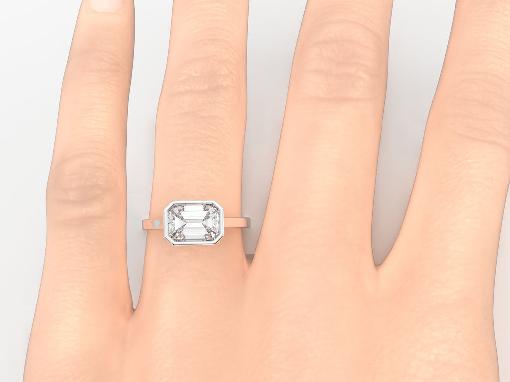 Siara 2.0 Ct Solitaire E-W Emerald Cut Engagement Ring
