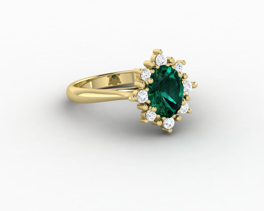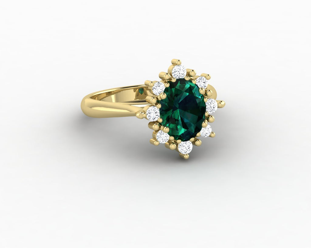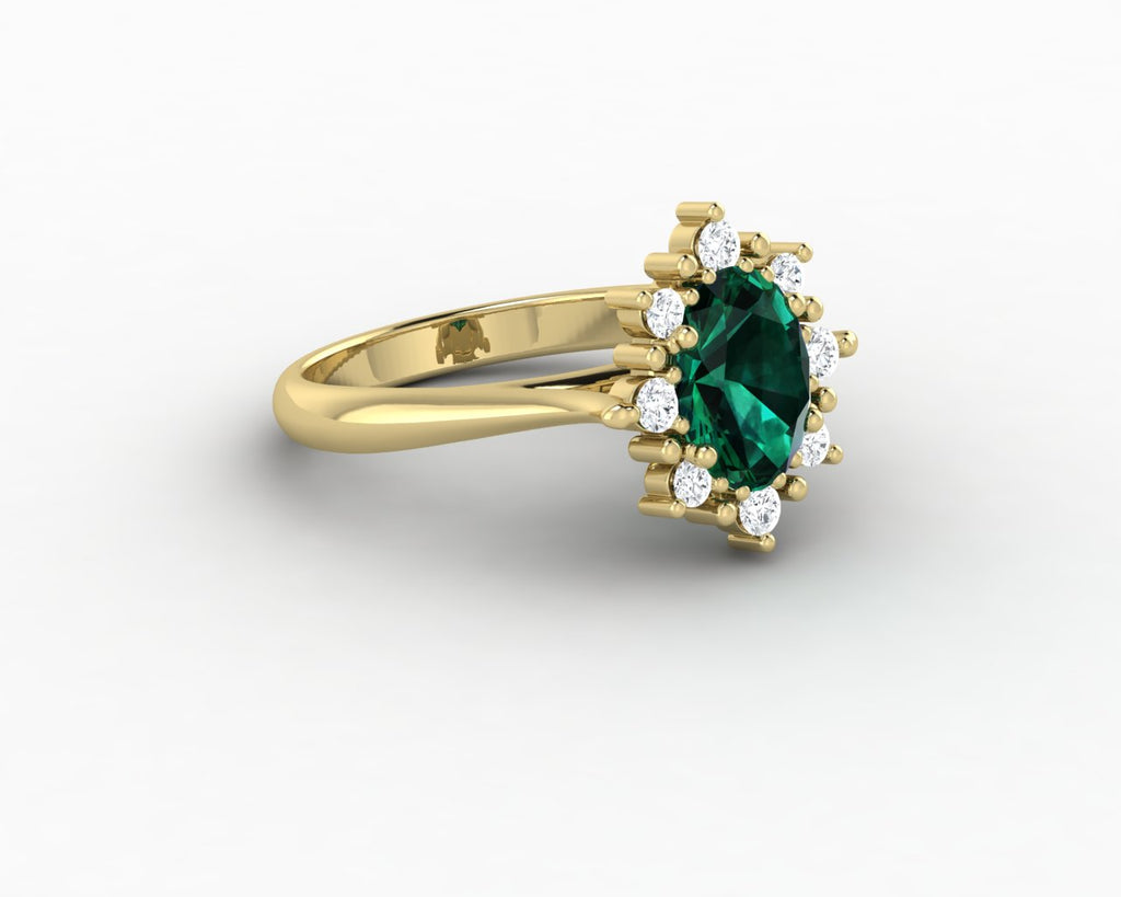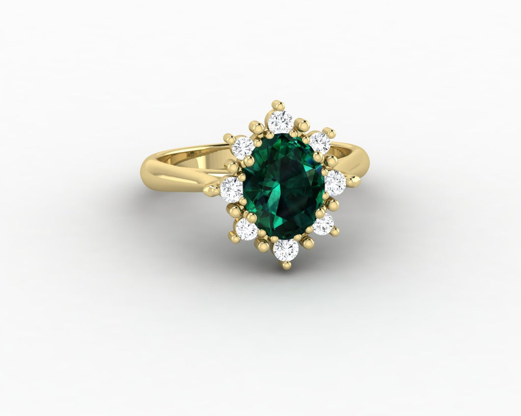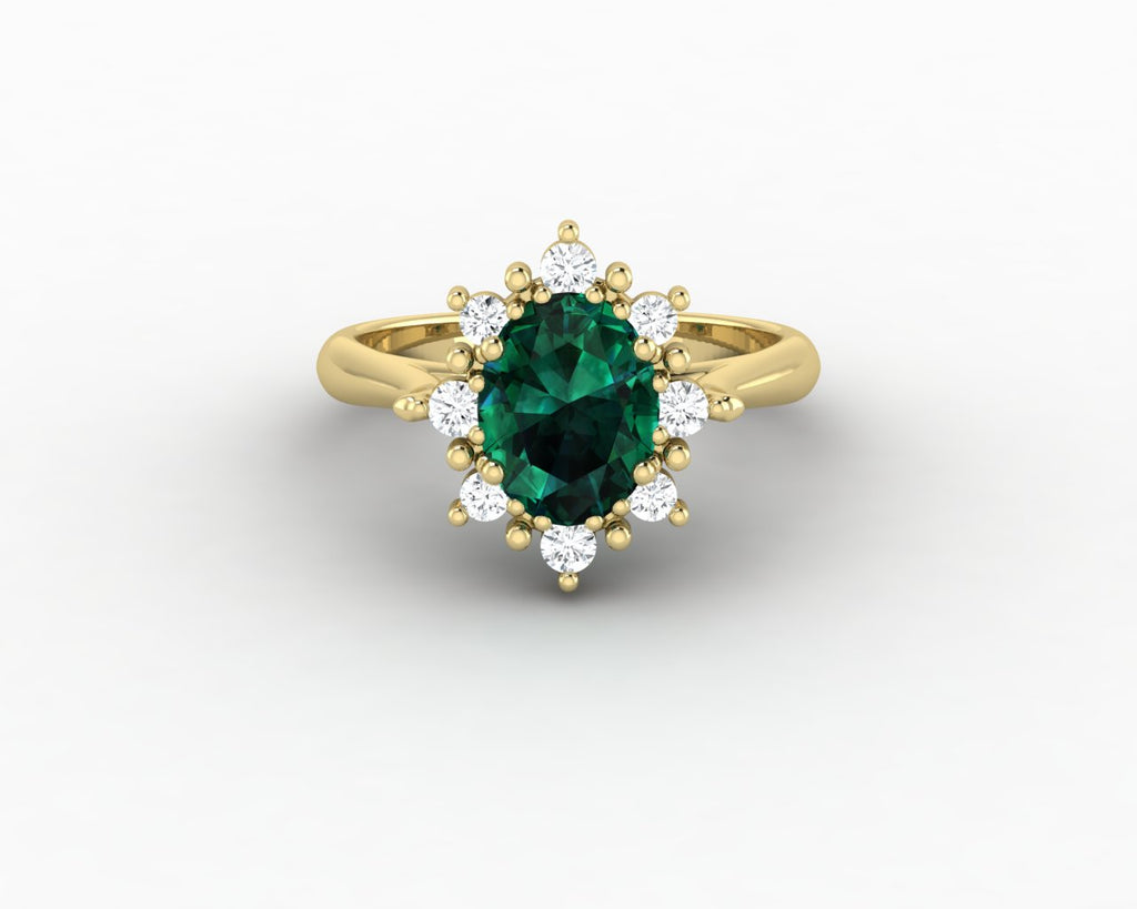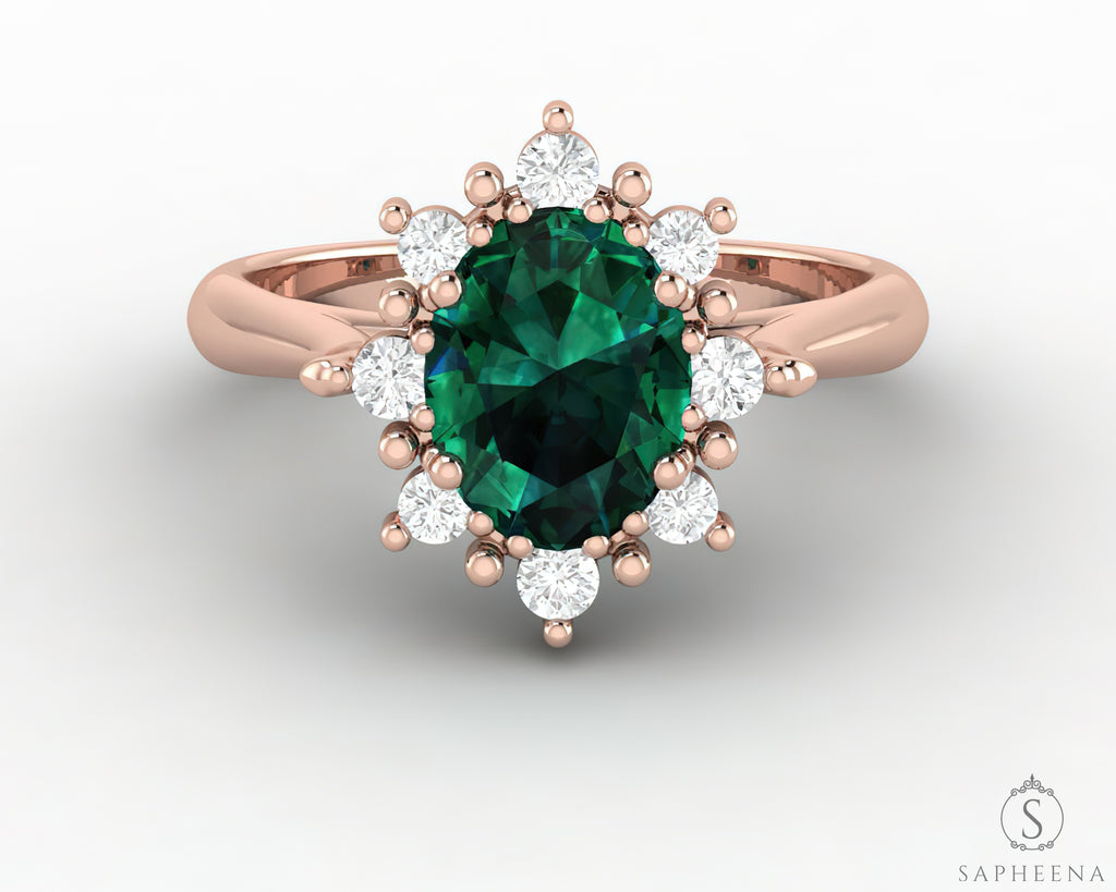 Bridget 1.0 Ct Oval Cut Halo Green Emerald Engagement Ring