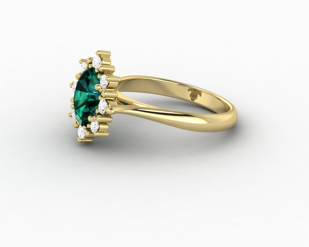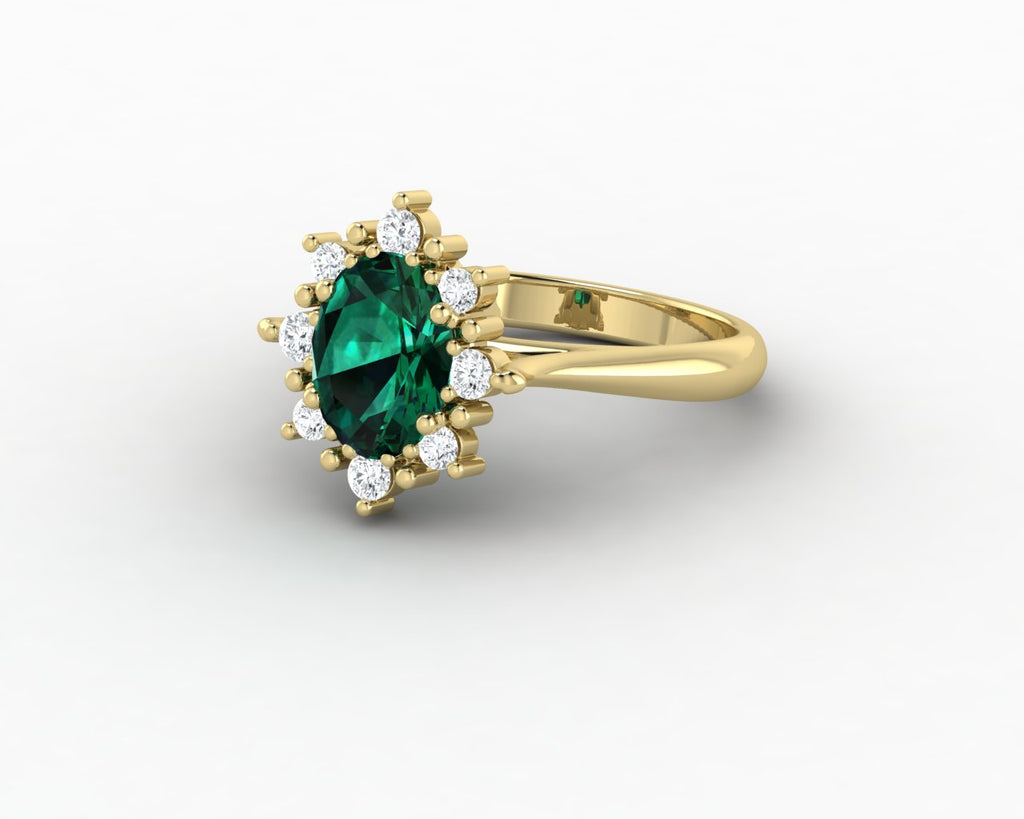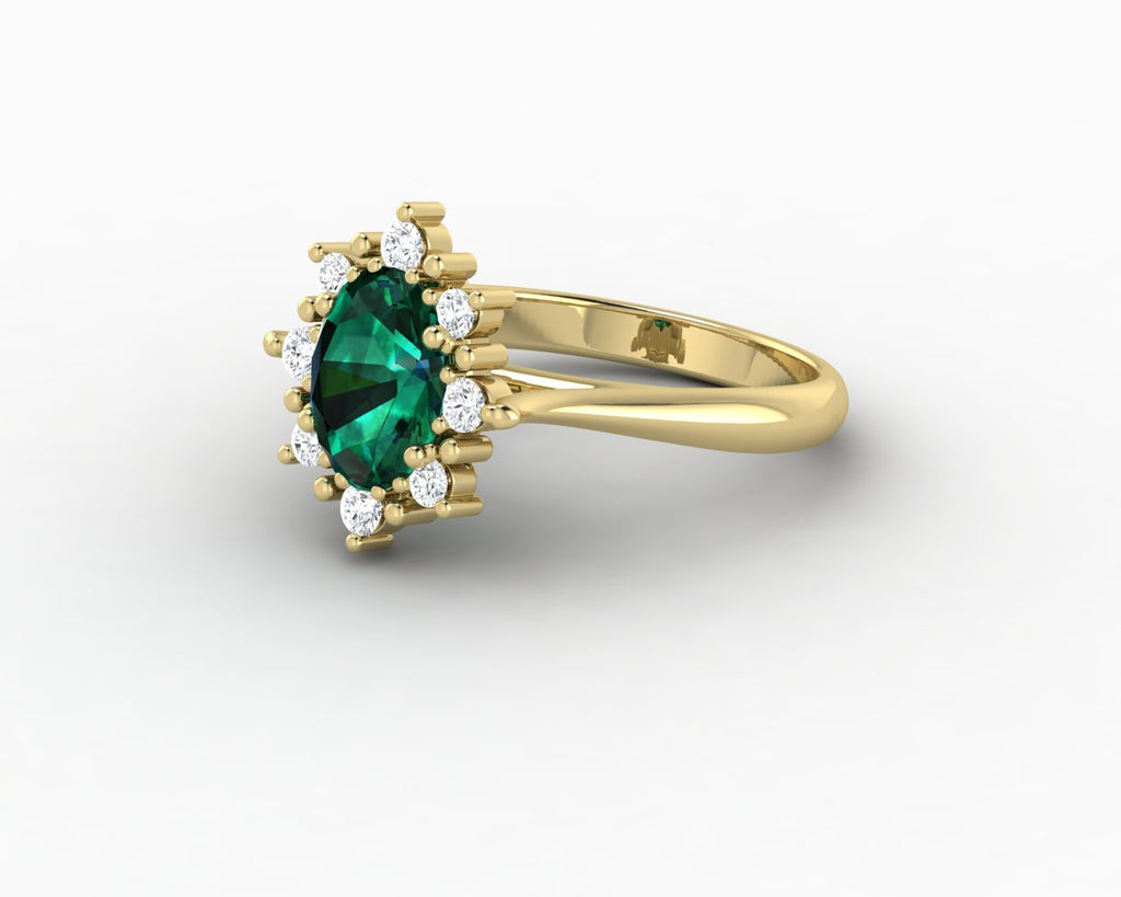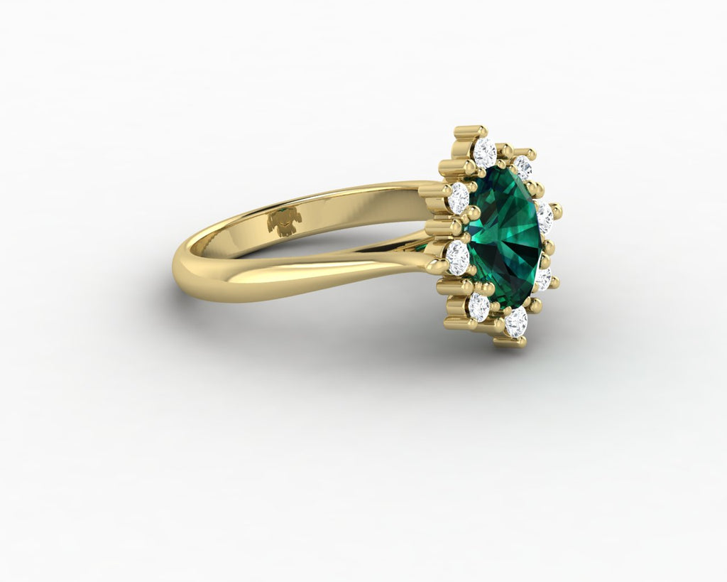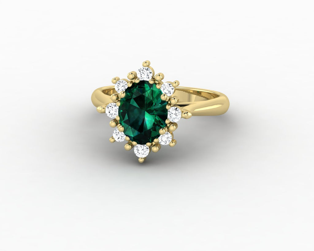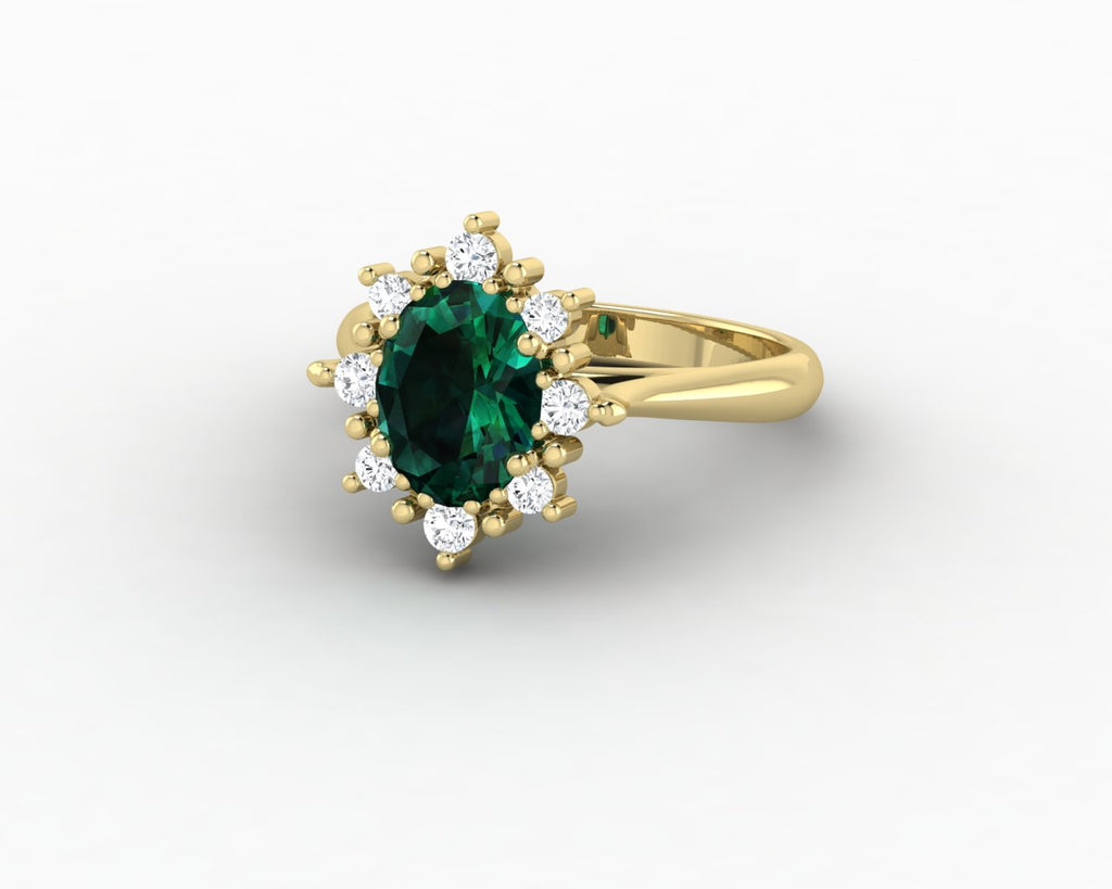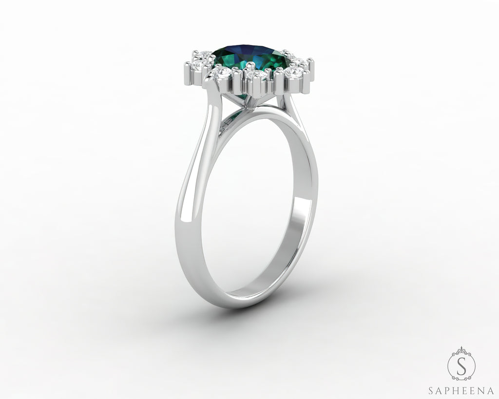 Bridget 1.0 Ct Oval Cut Halo Green Emerald Engagement Ring