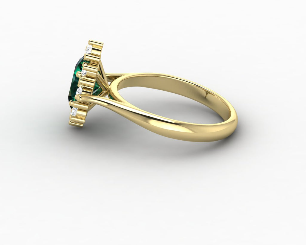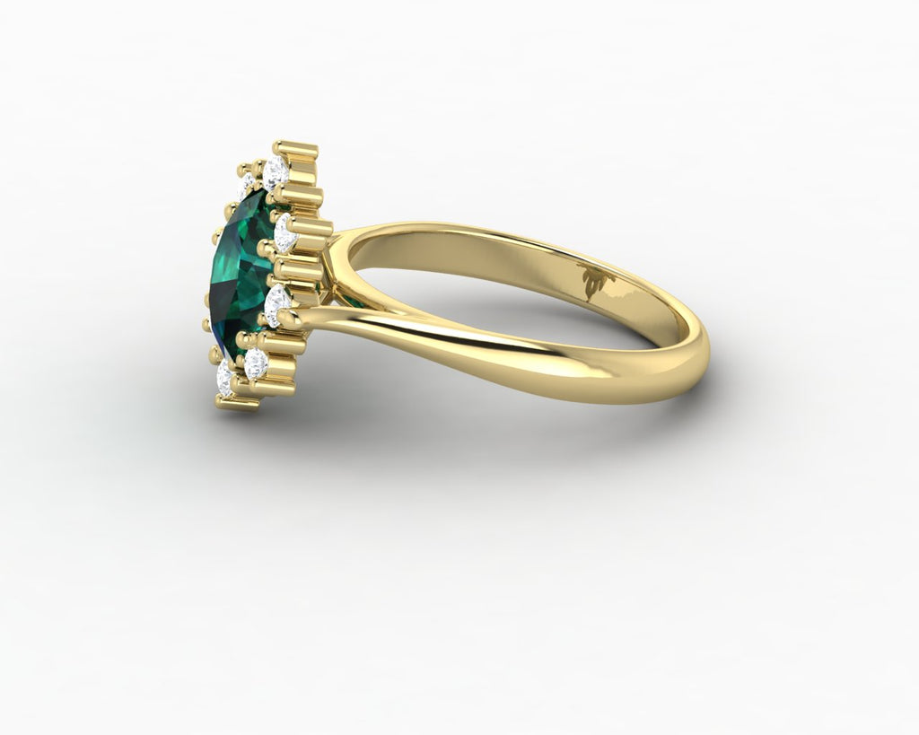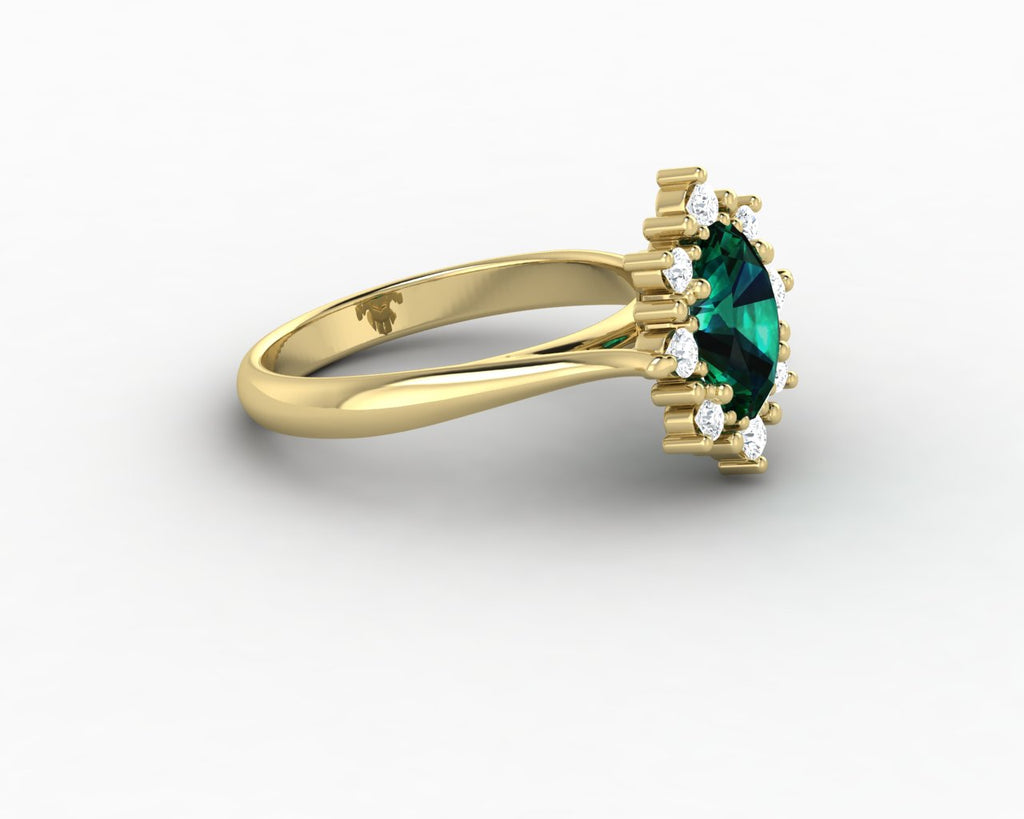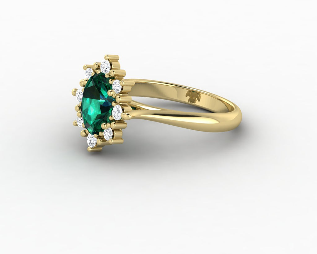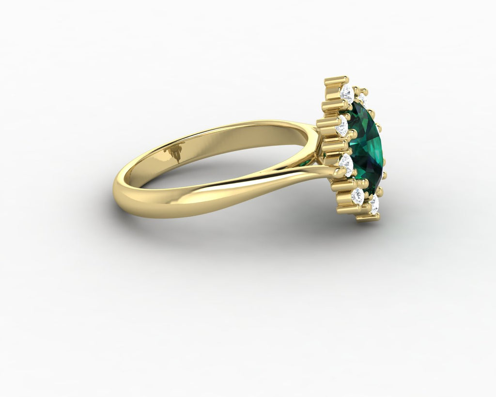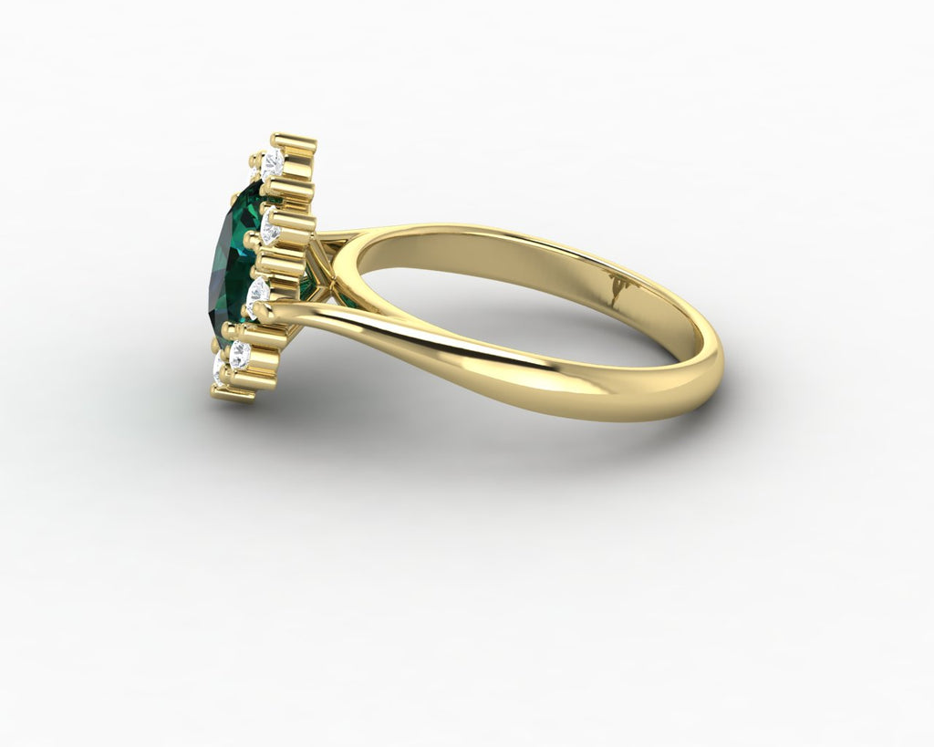 Bridget 1.0 Ct Oval Cut Halo Green Emerald Engagement Ring