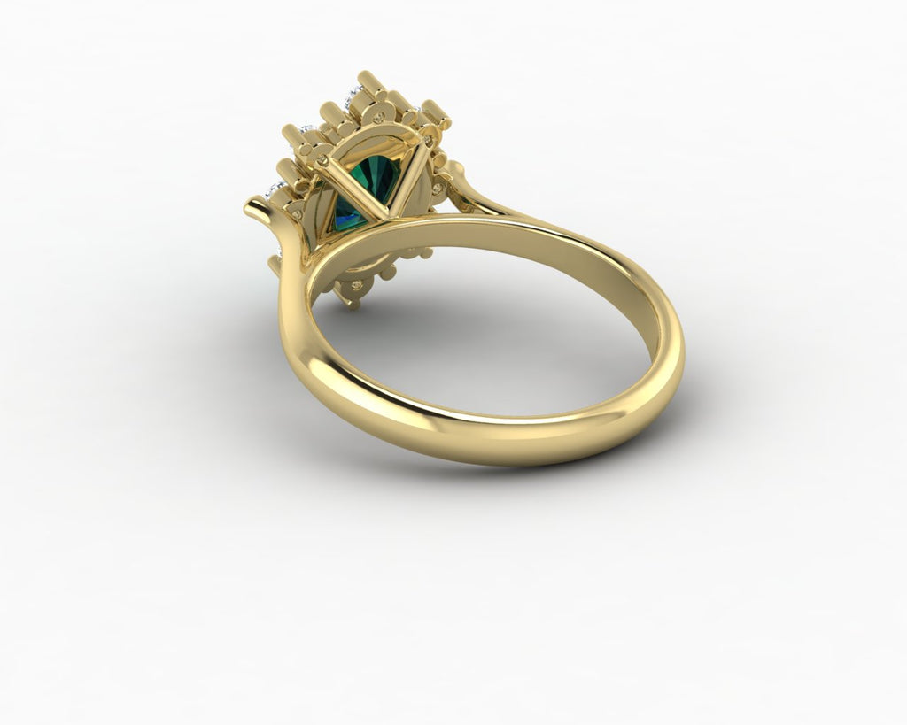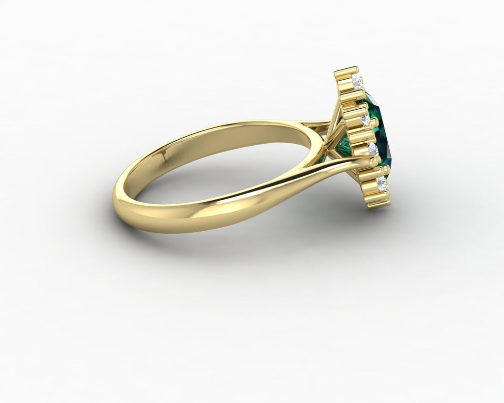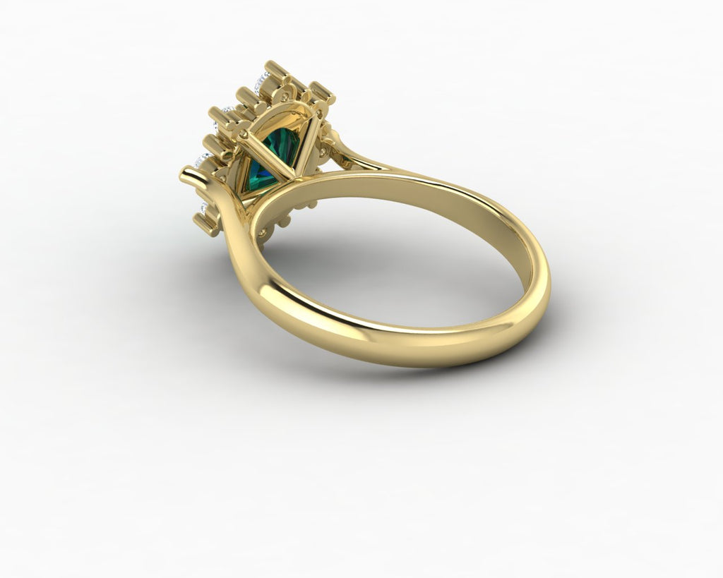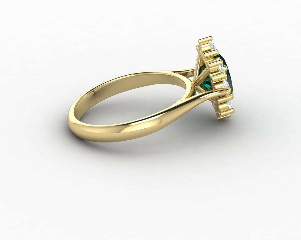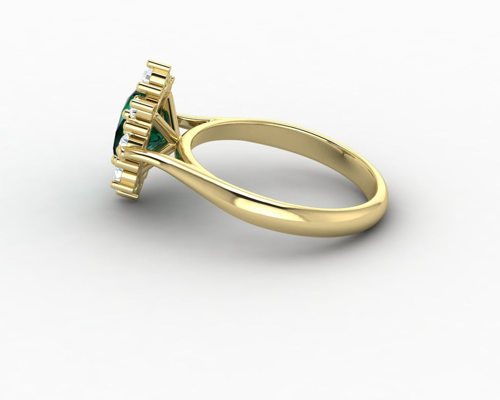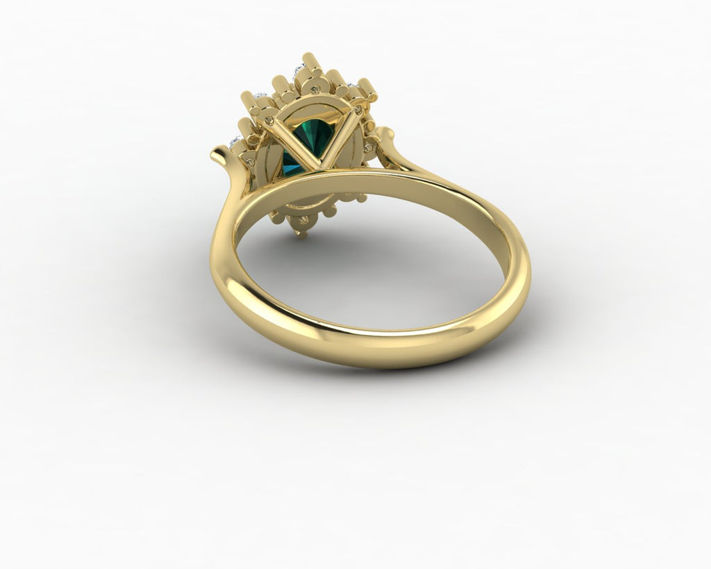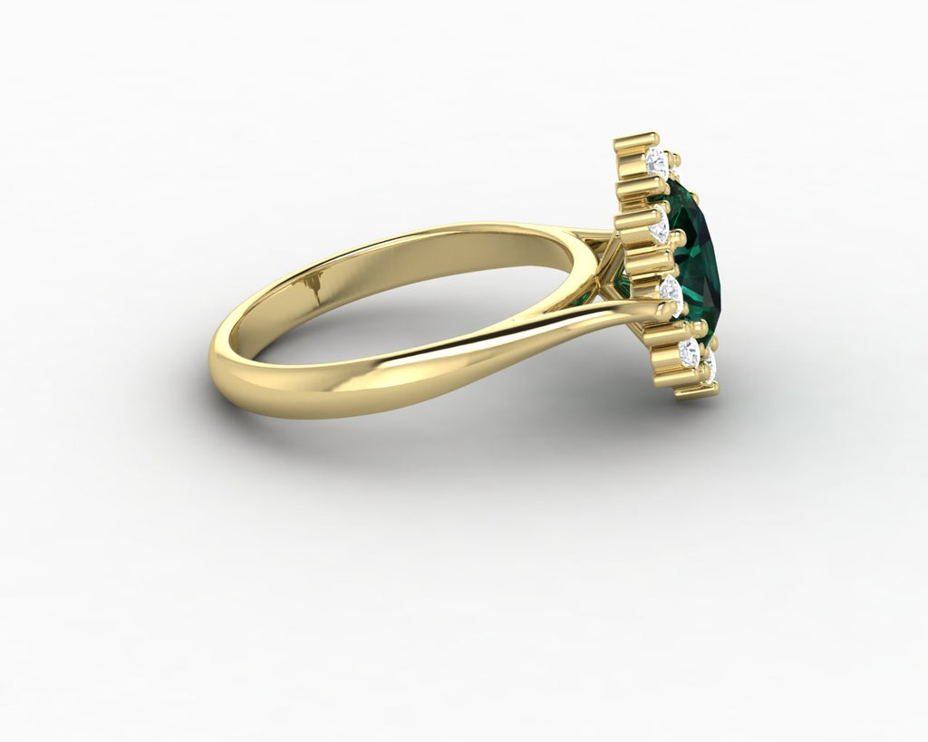 Bridget 1.0 Ct Oval Cut Halo Green Emerald Engagement Ring