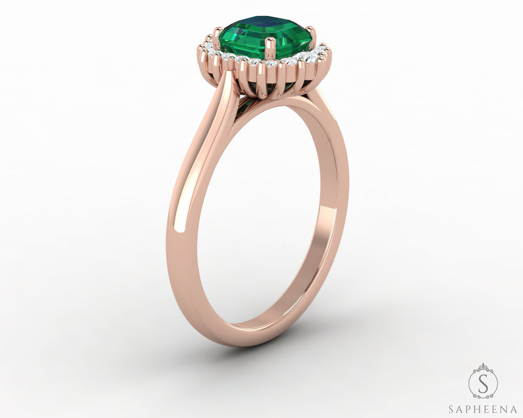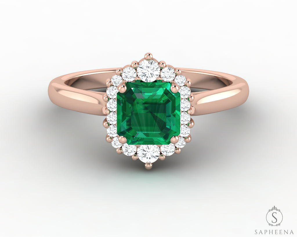 Juno 1.0 Ct Asscher Cut Halo Green Emerald Engagement Ring