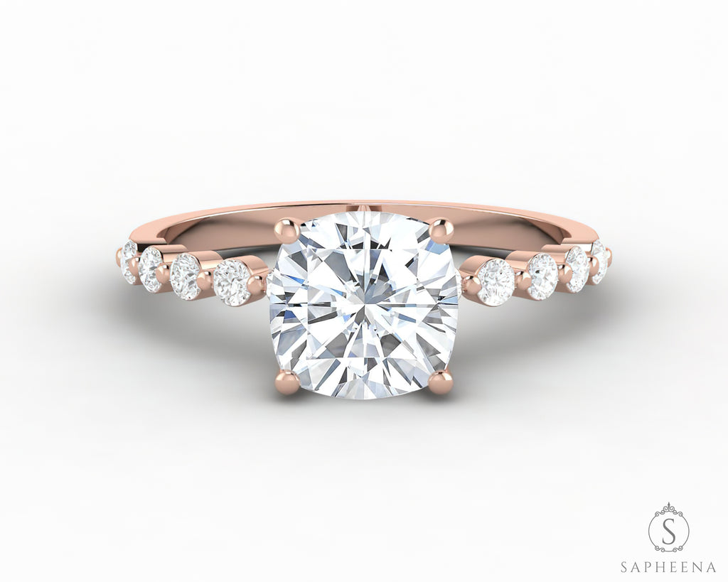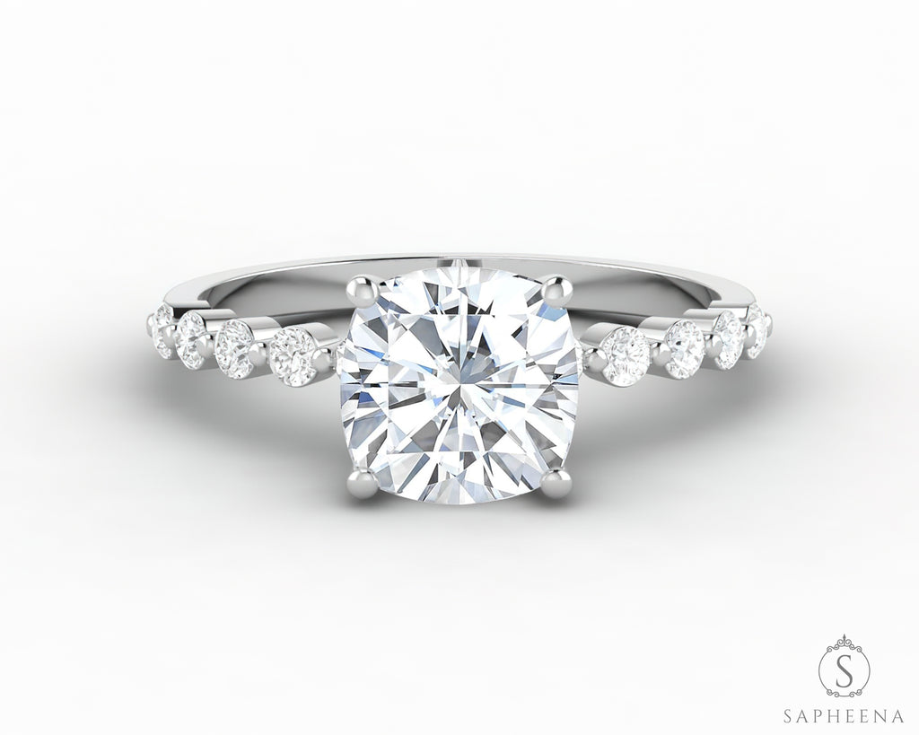 Juliet 1.5 Ct Cushion Cut Moissanite Engagement Ring With Side Stones