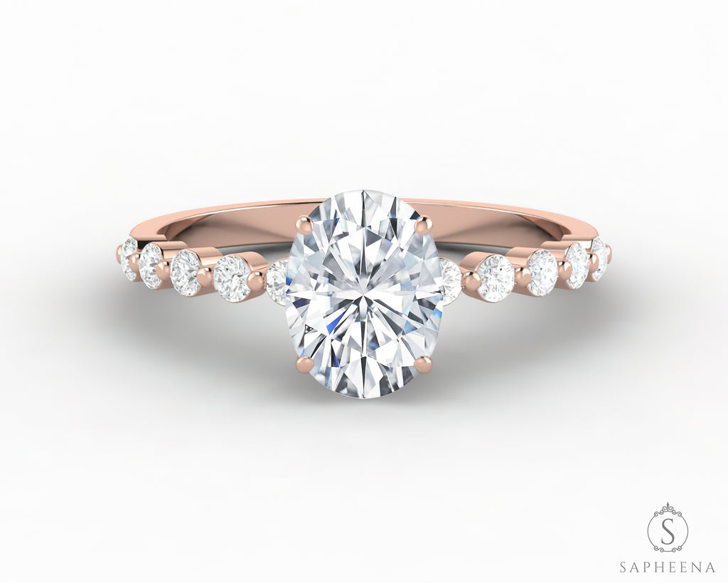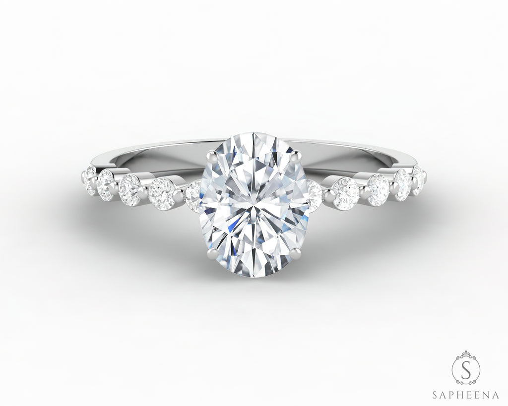 Juliet 1.5 Ct Oval Cut Moissanite Engagement Ring With Side Stones