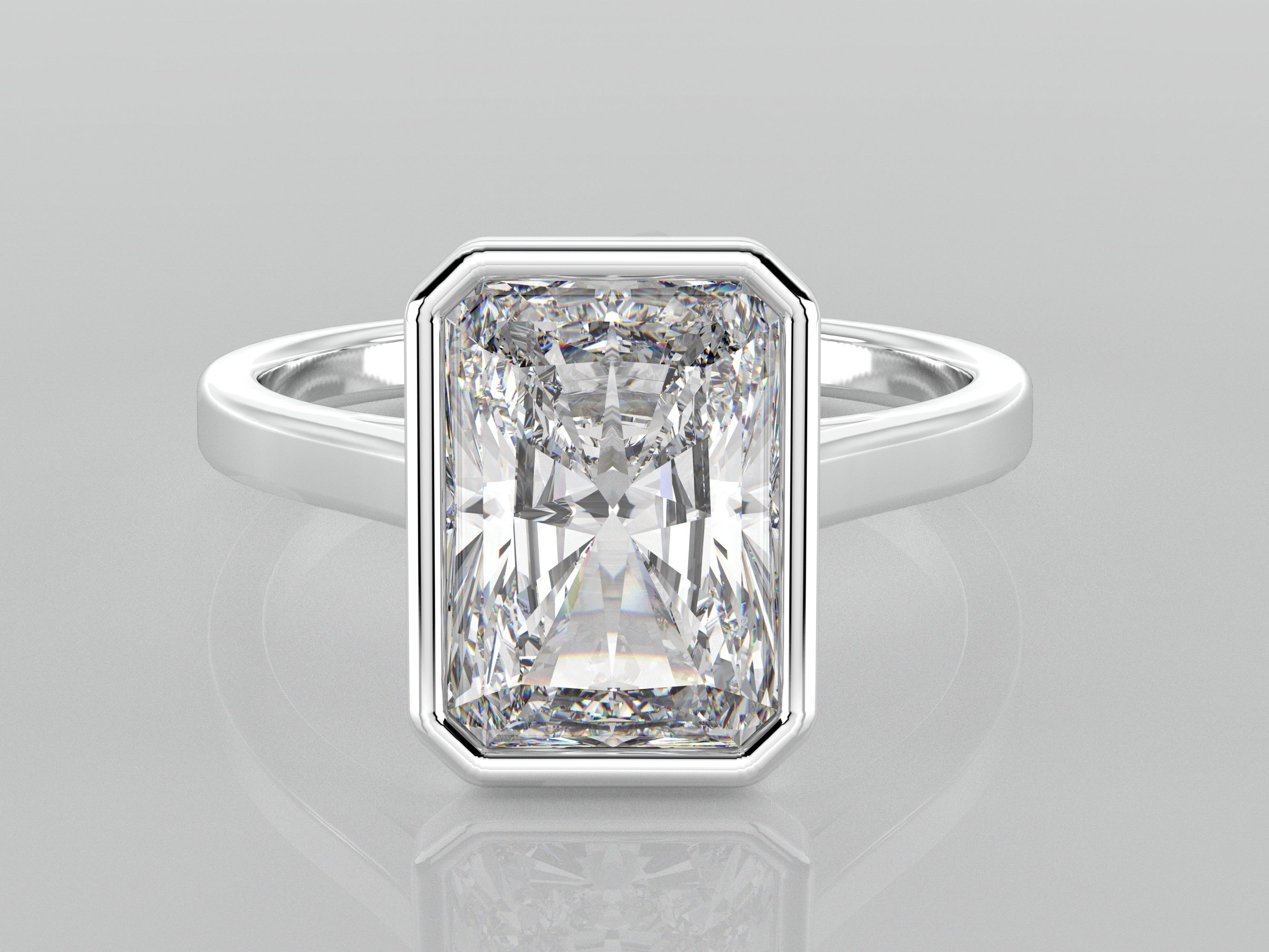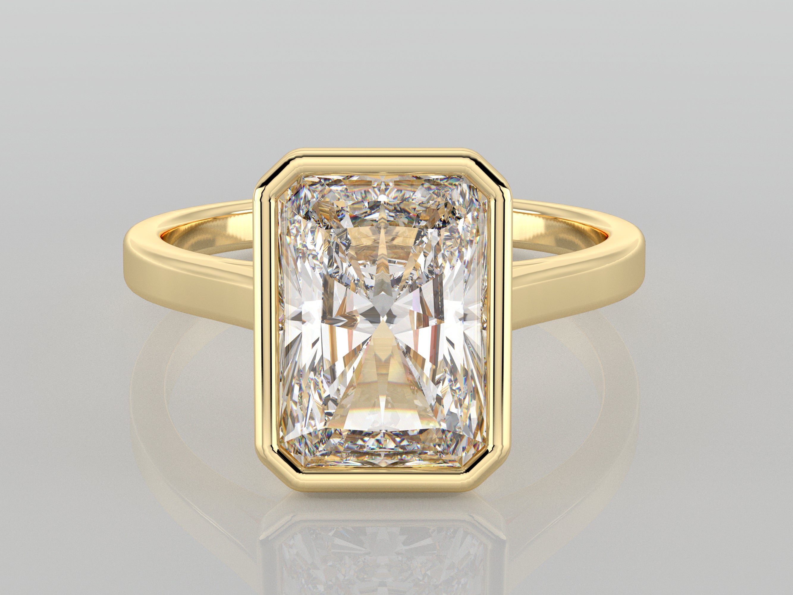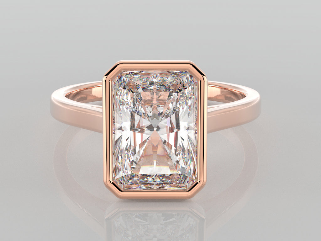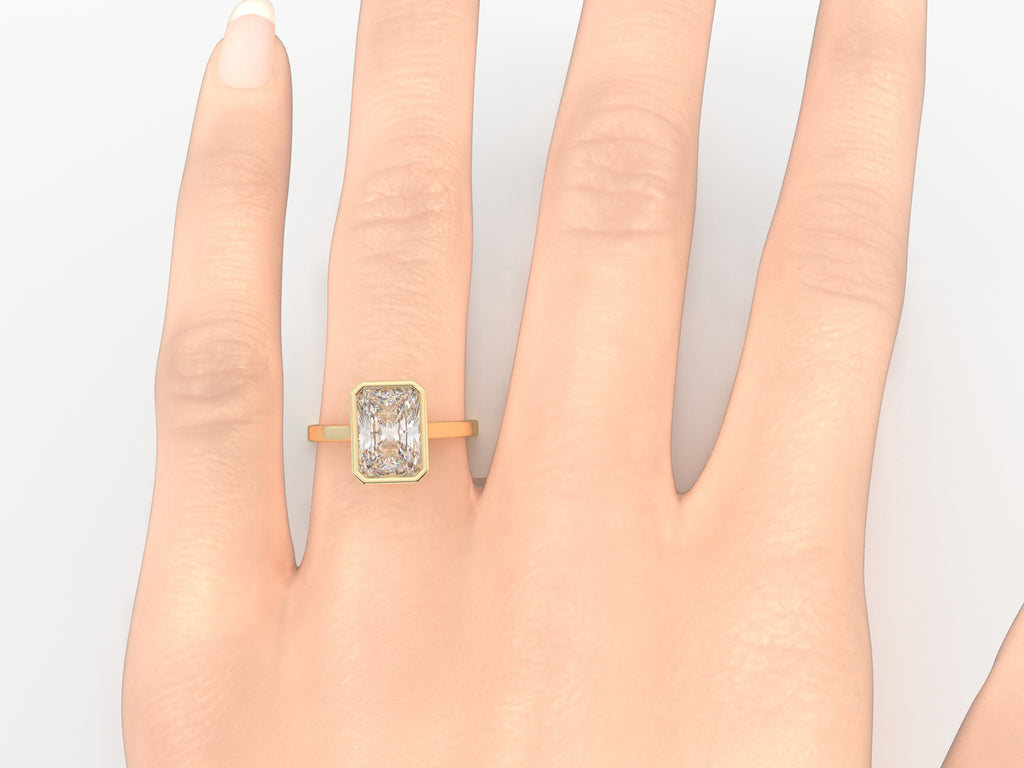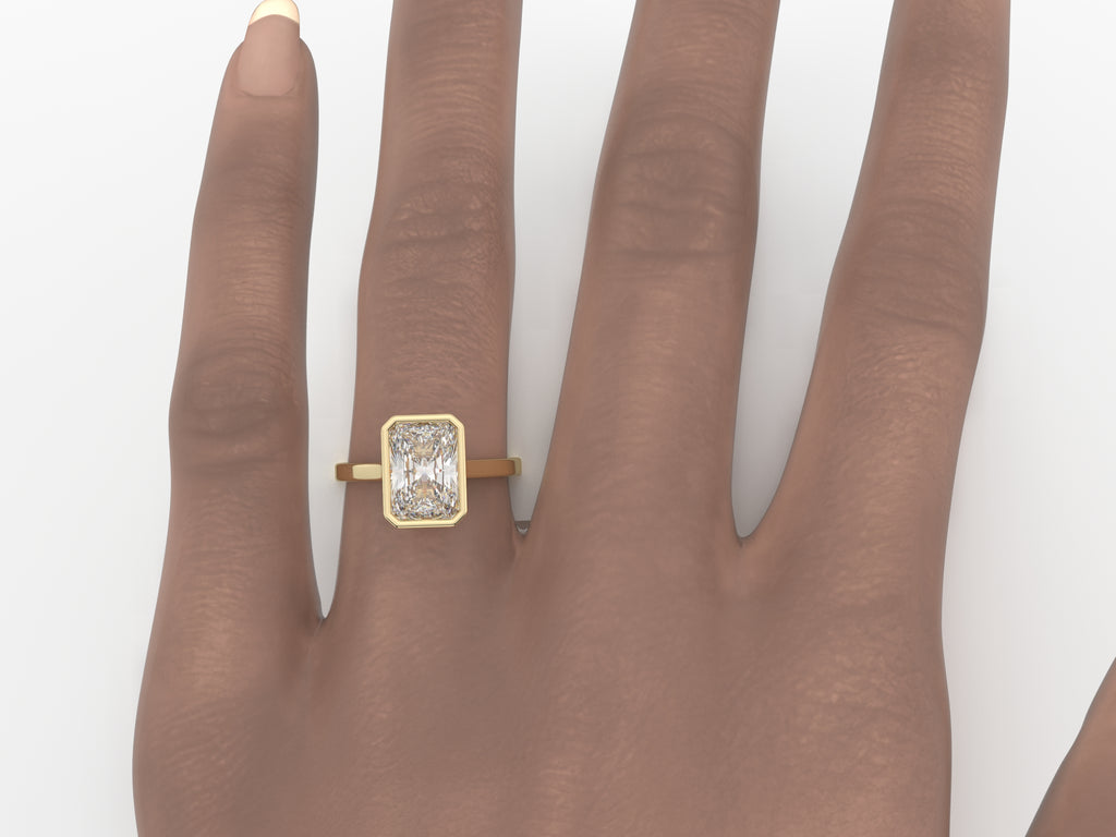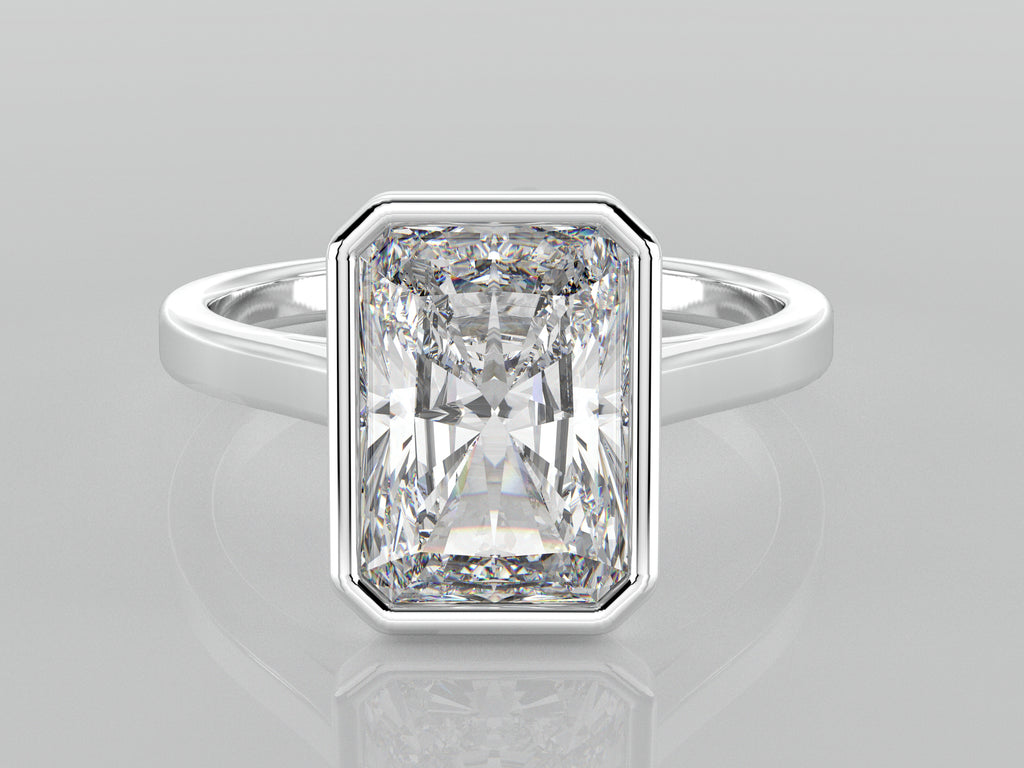 Timeless and elegant, this bezel-set engagement ring features a 3 Ct Radiant cut lab-grown diamond in a sleek solid gold band. Designed for durability and everyday wear, the bezel setting securely encases the diamond while maintaining a minimalist and modern aesthetic. Perfect as an engagement ring or an everyday statement piece.