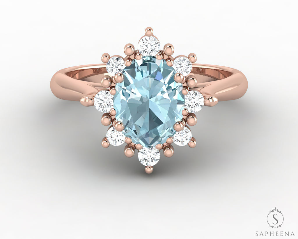 Bridget 1.0 Ct Oval Cut Halo Natural Aquamarine Engagement Ring