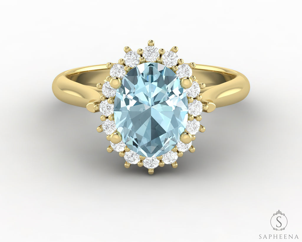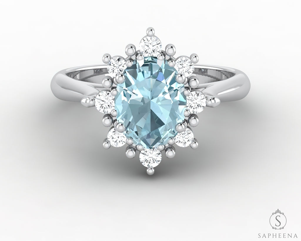 Maia 1.75 Ct Oval Cut Halo Natural Aquamarine Engagement Ring