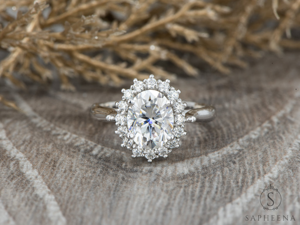 Talya 1.5 Ct Oval Cut Halo Engagement Ring with Side Stones