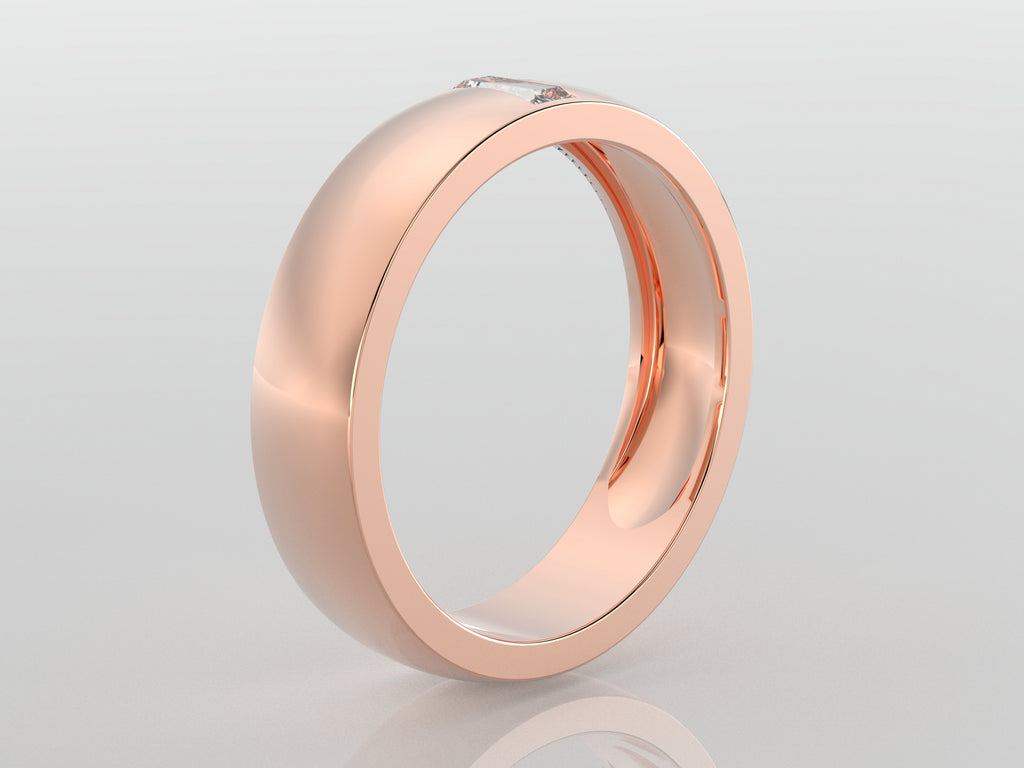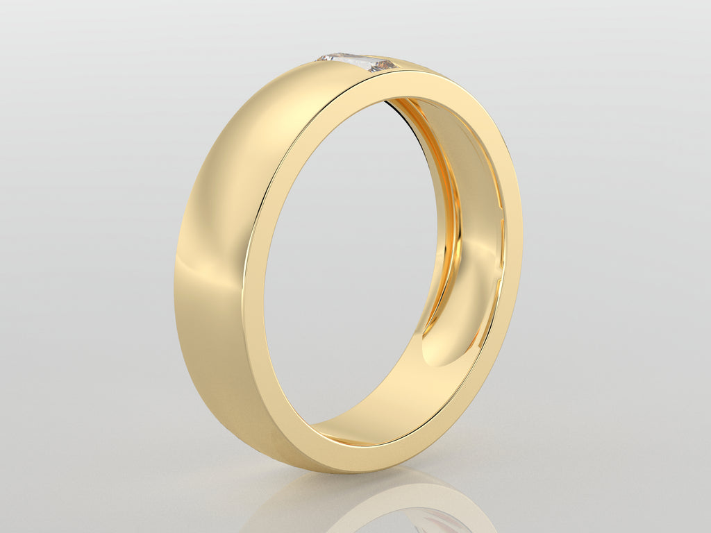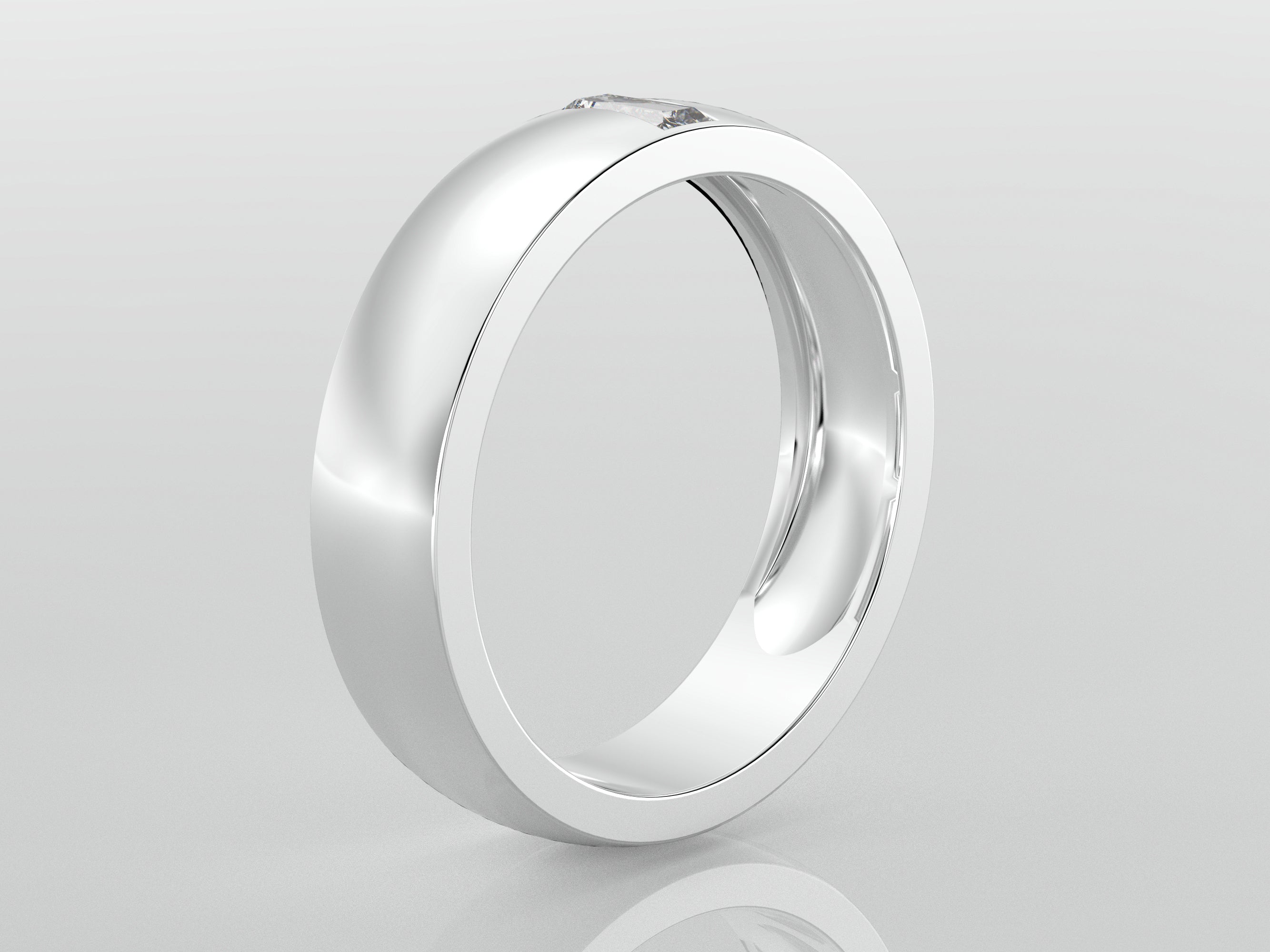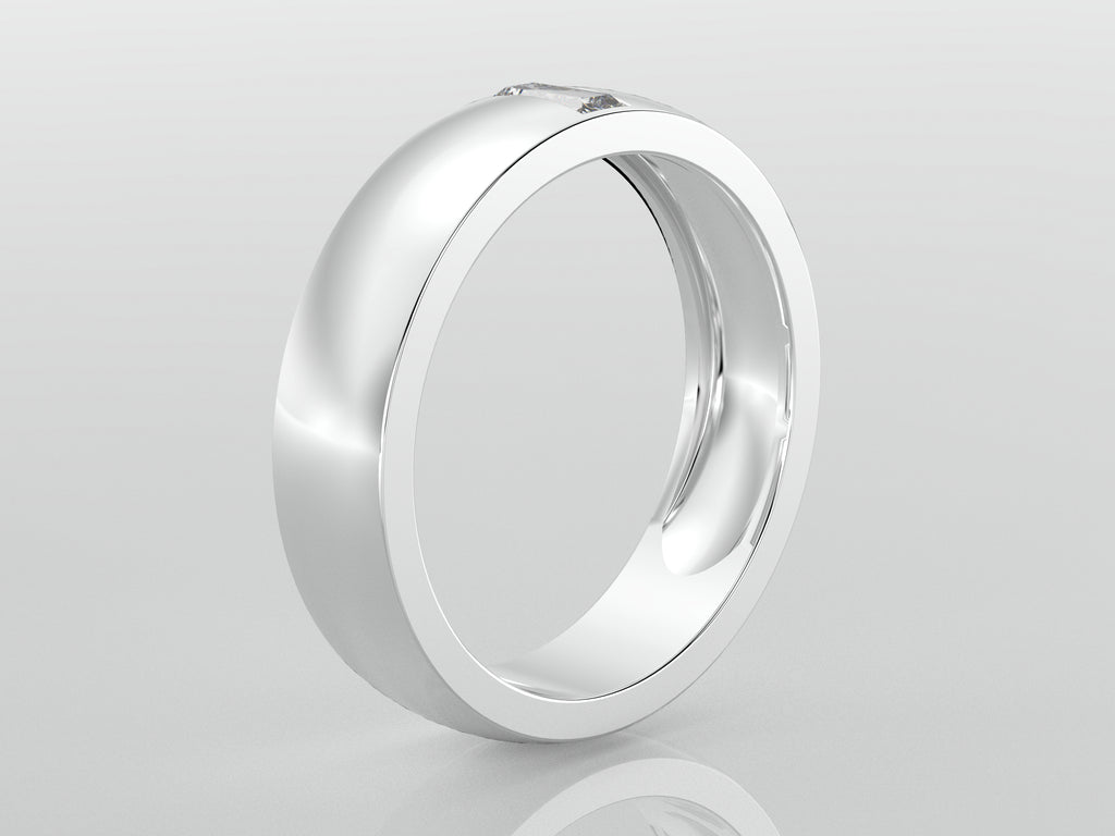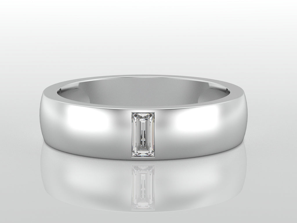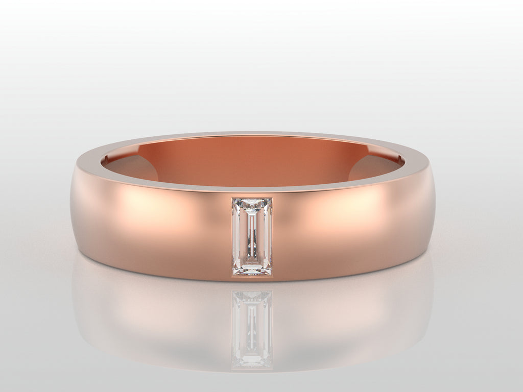This sleek baguette cut ring features a single moissanite or lab-grown diamond, bezel-set in a solid gold band. Its minimalist and modern design makes it a timeless wedding band or everyday ring. A refined piece that combines elegance with understated sophistication.