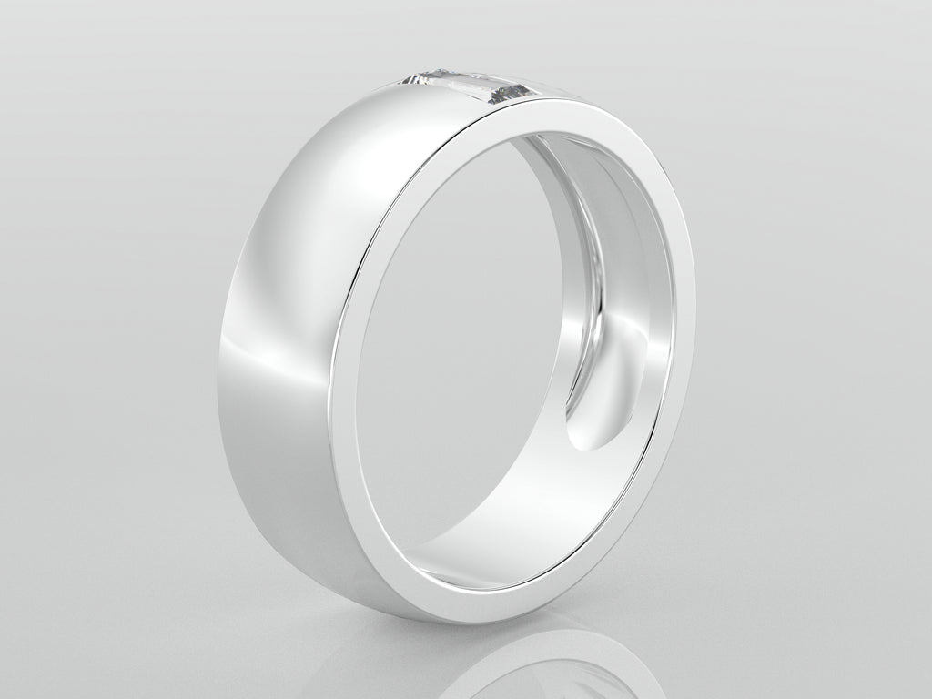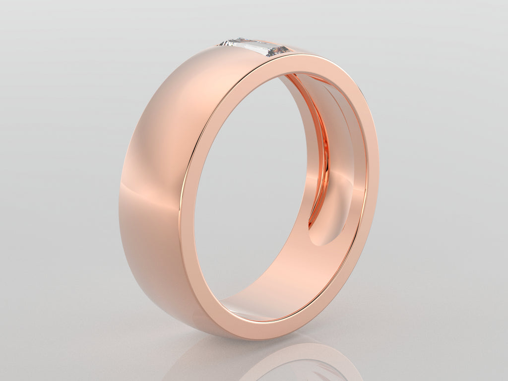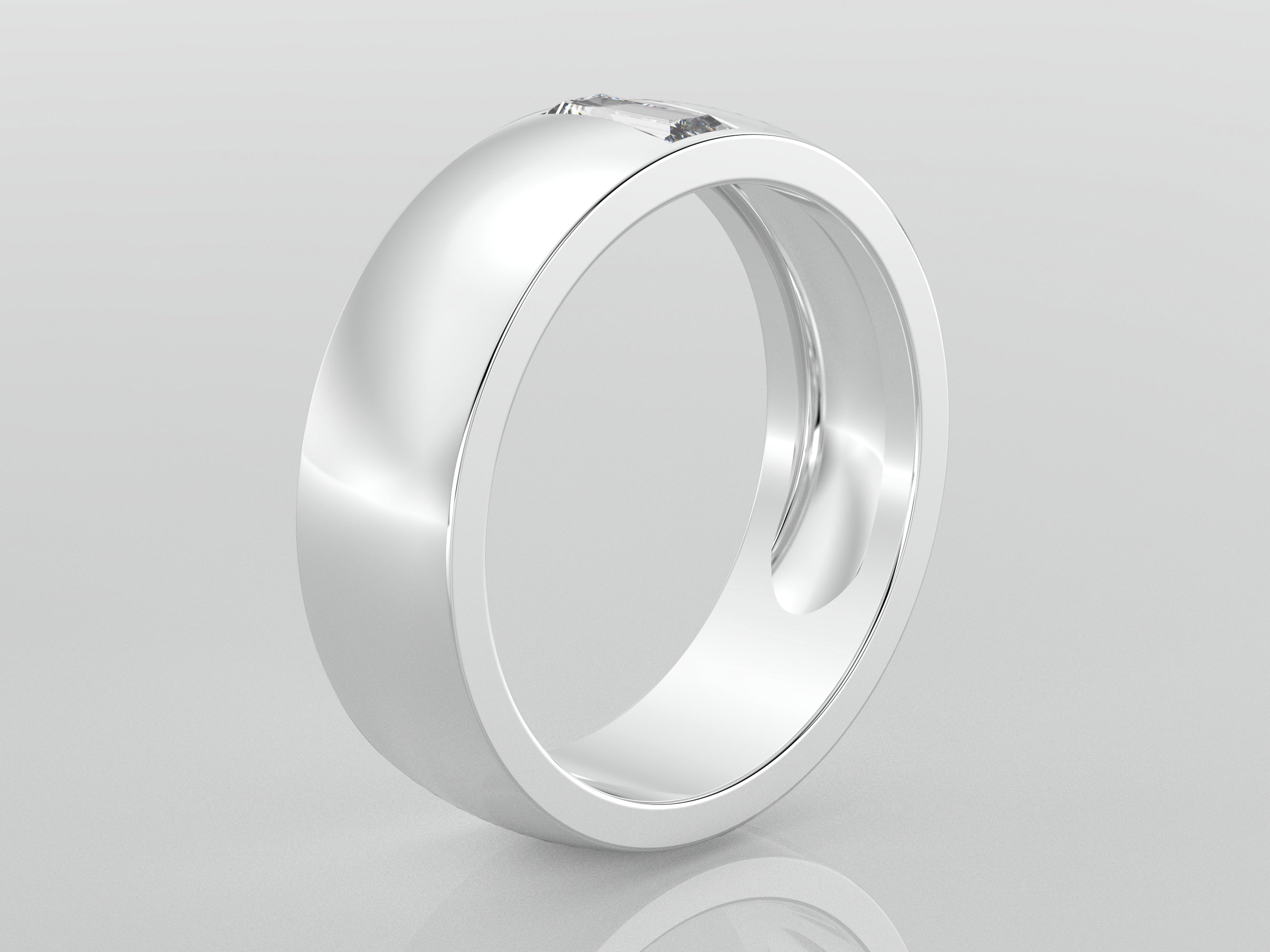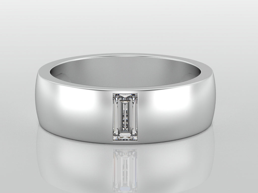 This sleek baguette cut ring features a single moissanite or lab-grown diamond, bezel-set in a solid gold band. Its minimalist and modern design makes it a timeless wedding band or everyday ring. A refined piece that combines elegance with understated sophistication.