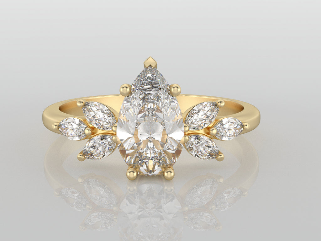 Giulia 1.0 Ct Pear Cut Engagement Ring With Marquise Side Stones