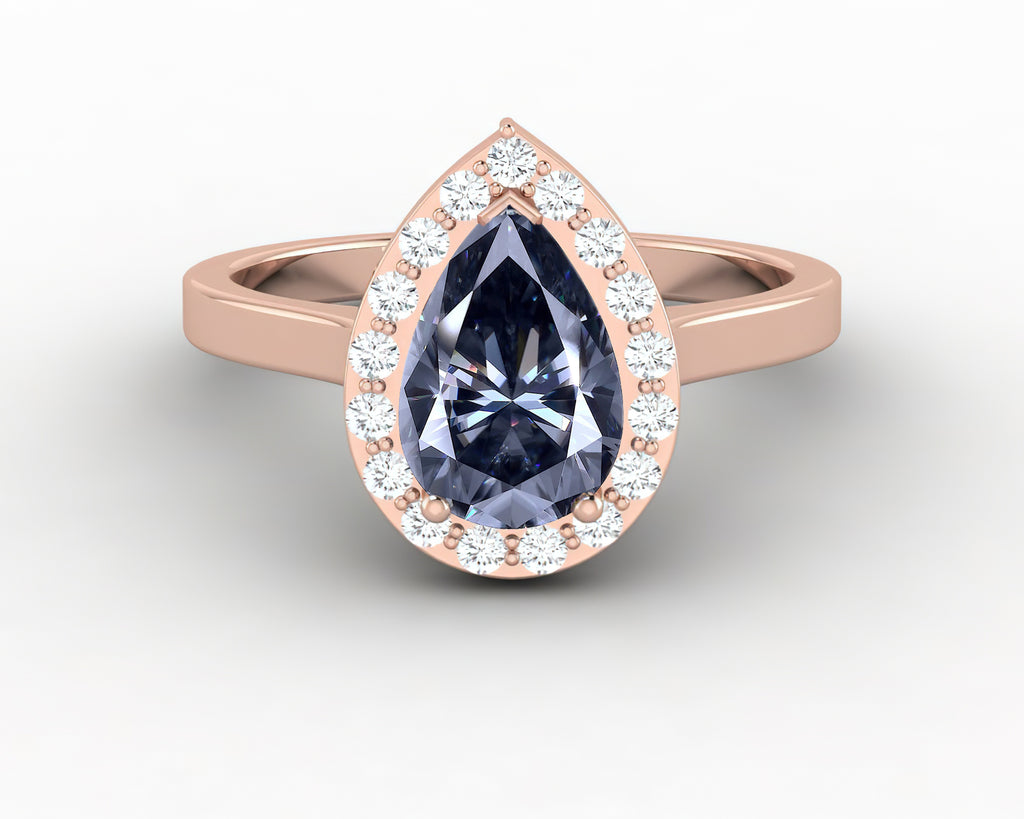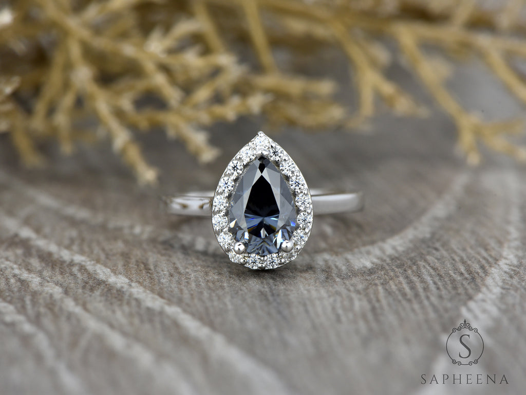 Aureola 1.50 Ct Pear Cut Halo Grey Moissanite Engagement Ring