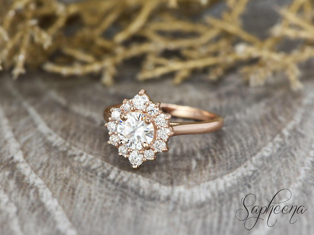 Brilliant Round Cut Green Moissanite Solitaire Engagement Ring, Rose Gold Ring