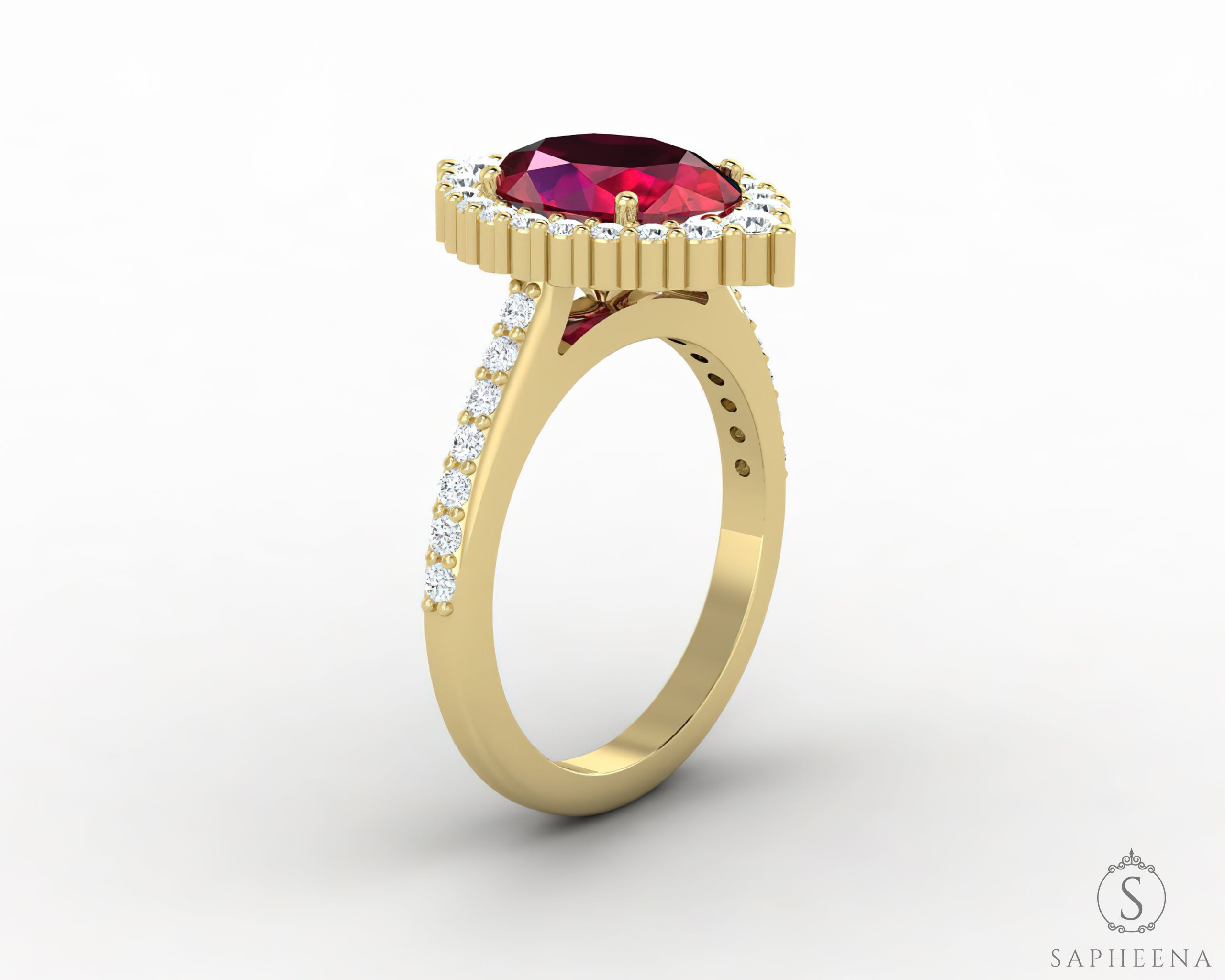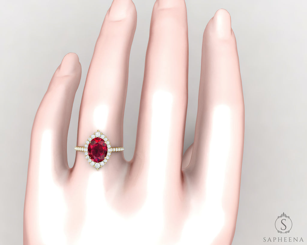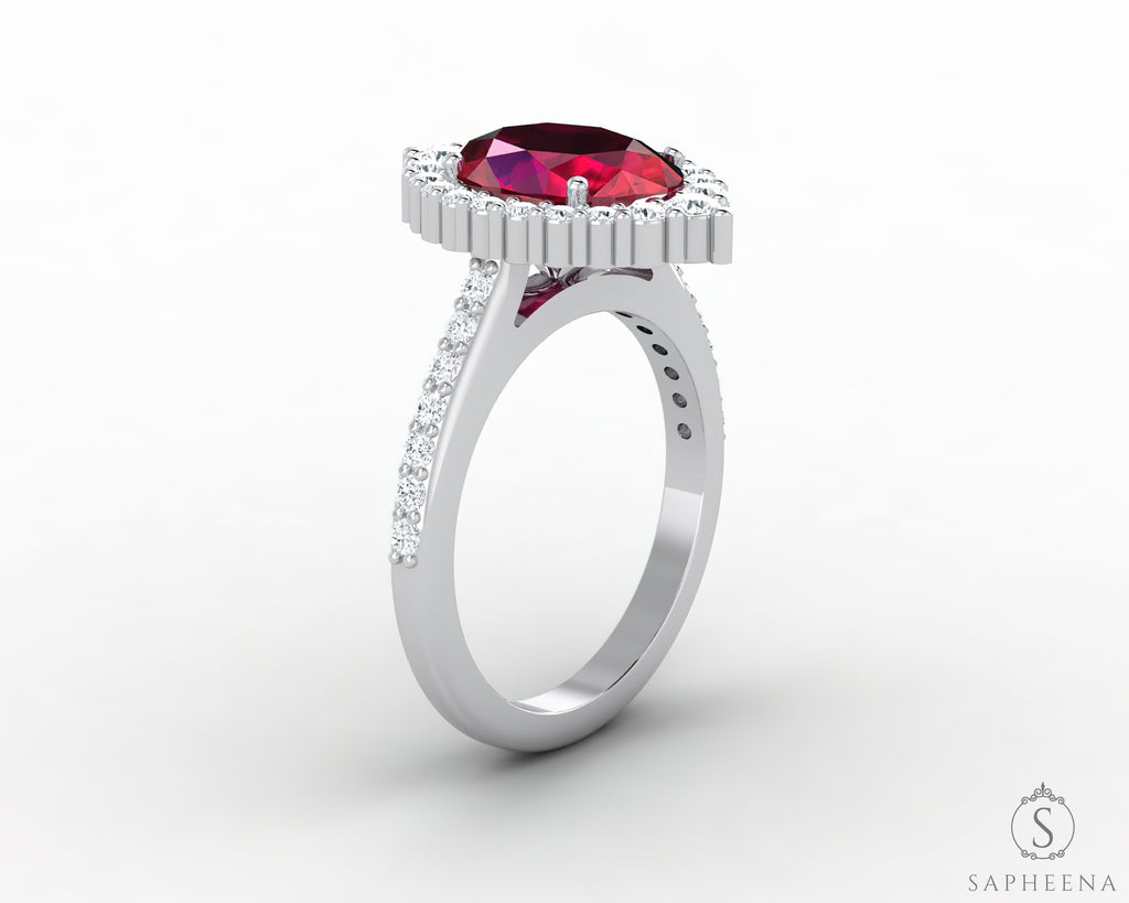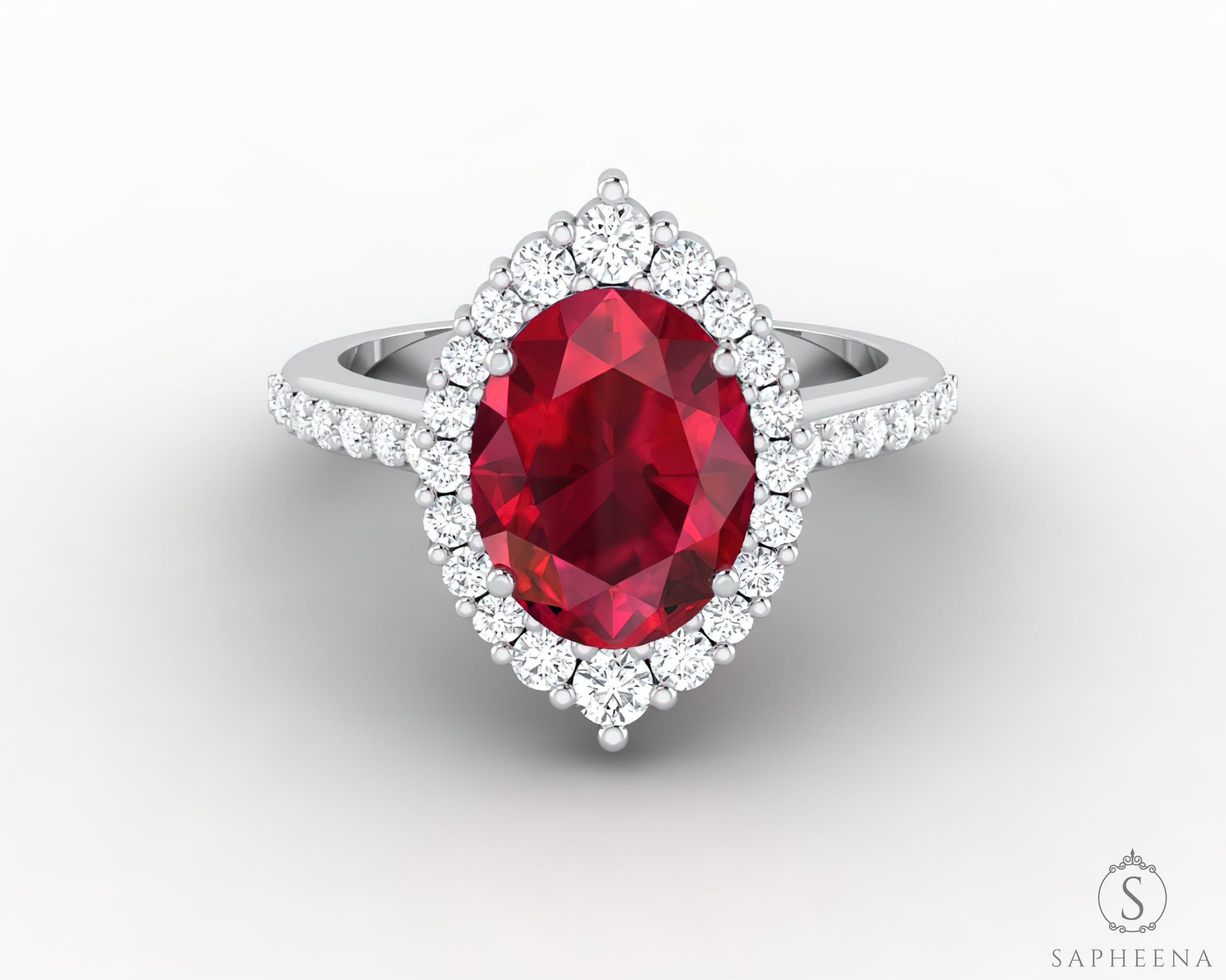 Capella 2.70 Ct Oval Cut Halo Ruby Engagement Ring