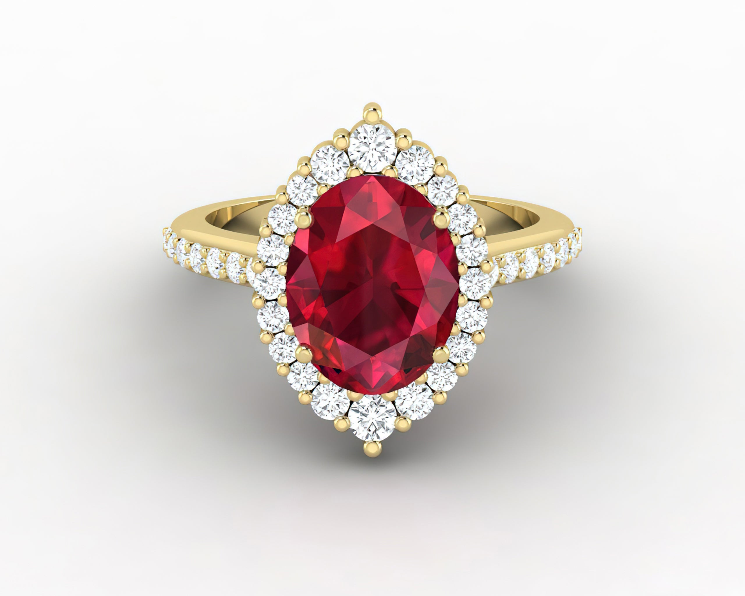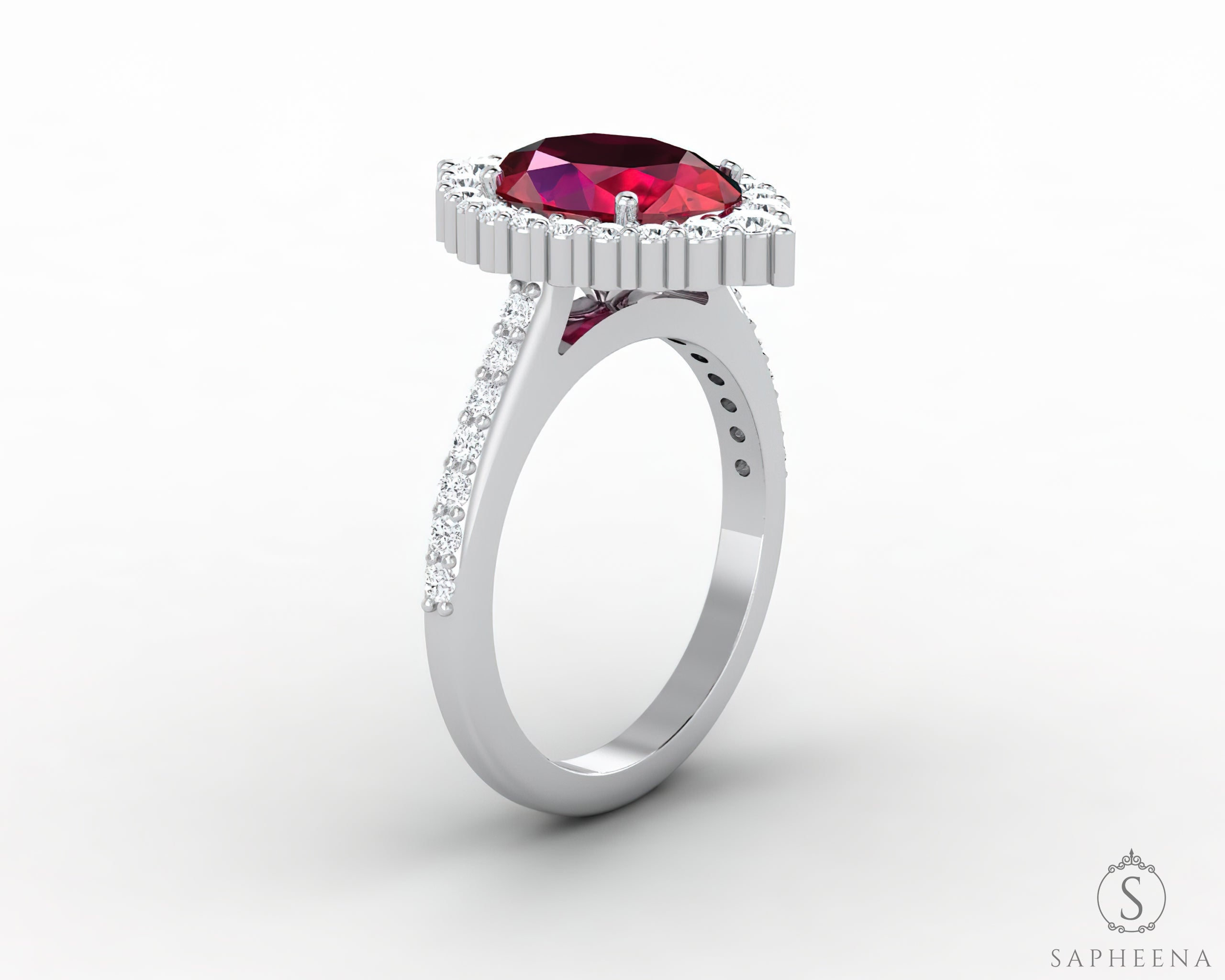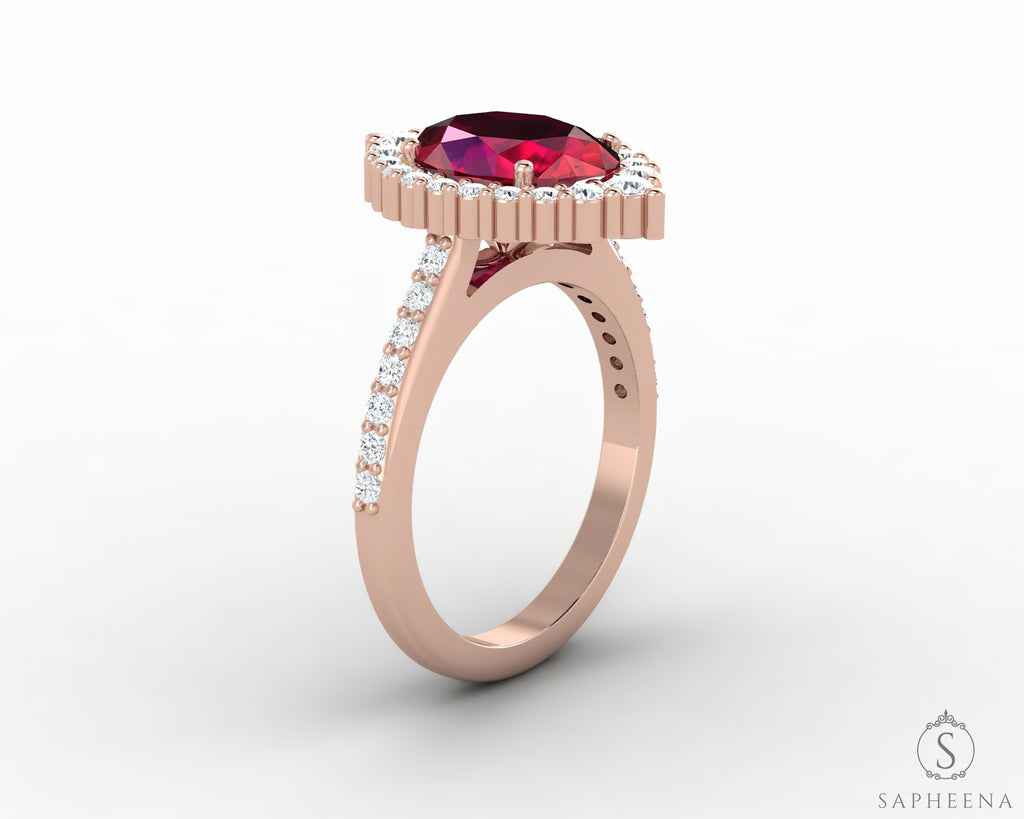 Capella 2.70 Ct Oval Cut Halo Ruby Engagement Ring