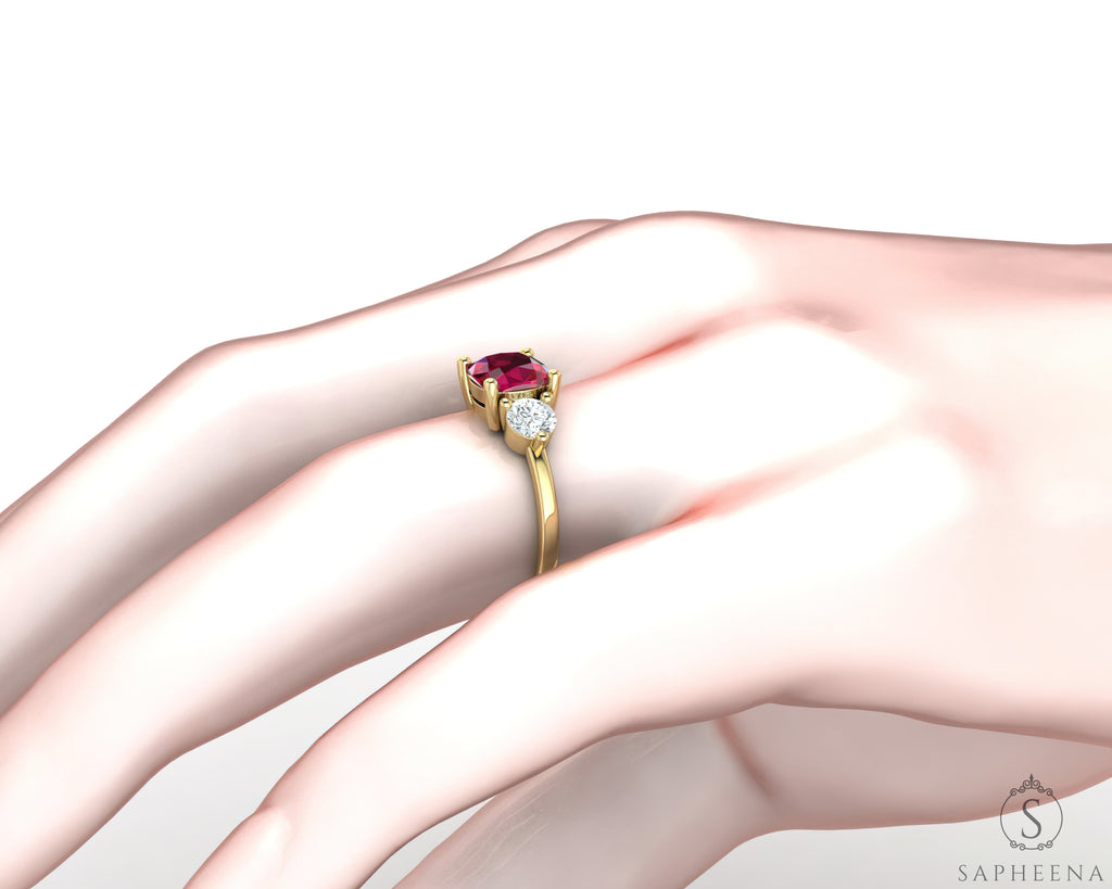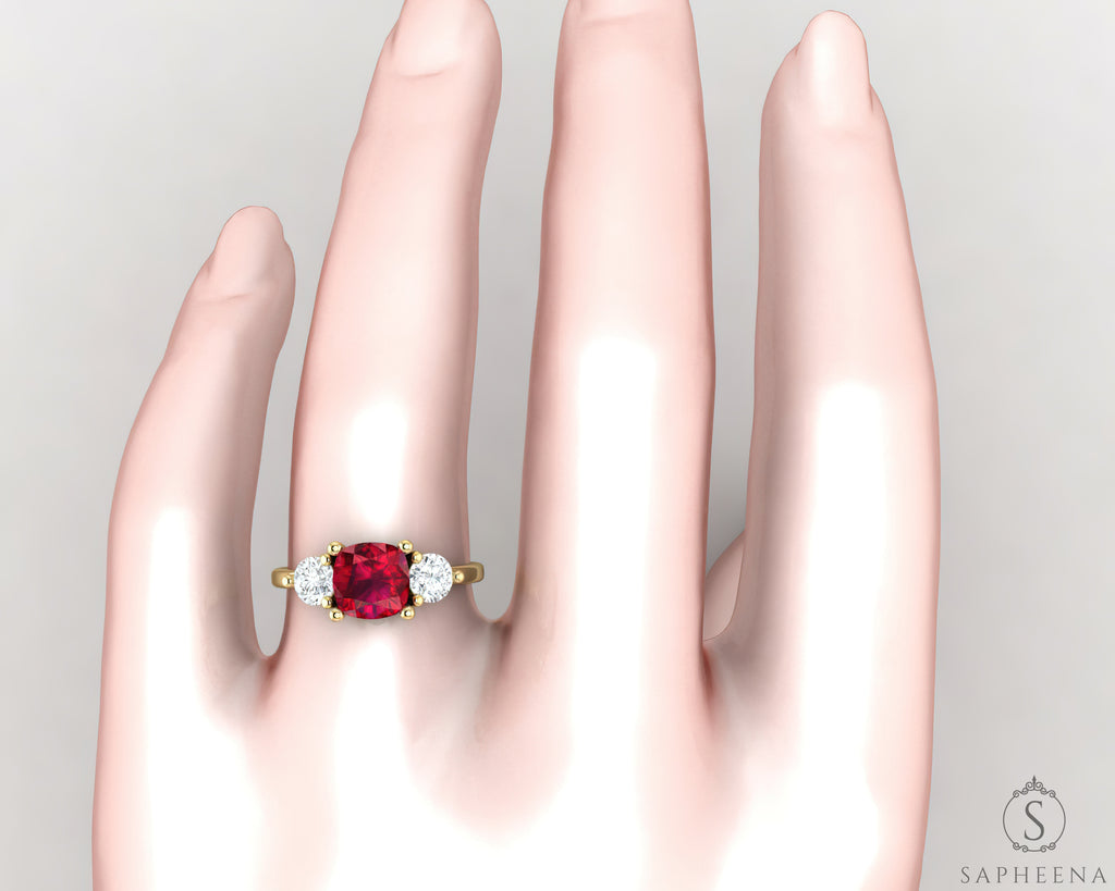 Orion Three Stone 2.3 Ct Cushion Cut Ruby Engagement Ring