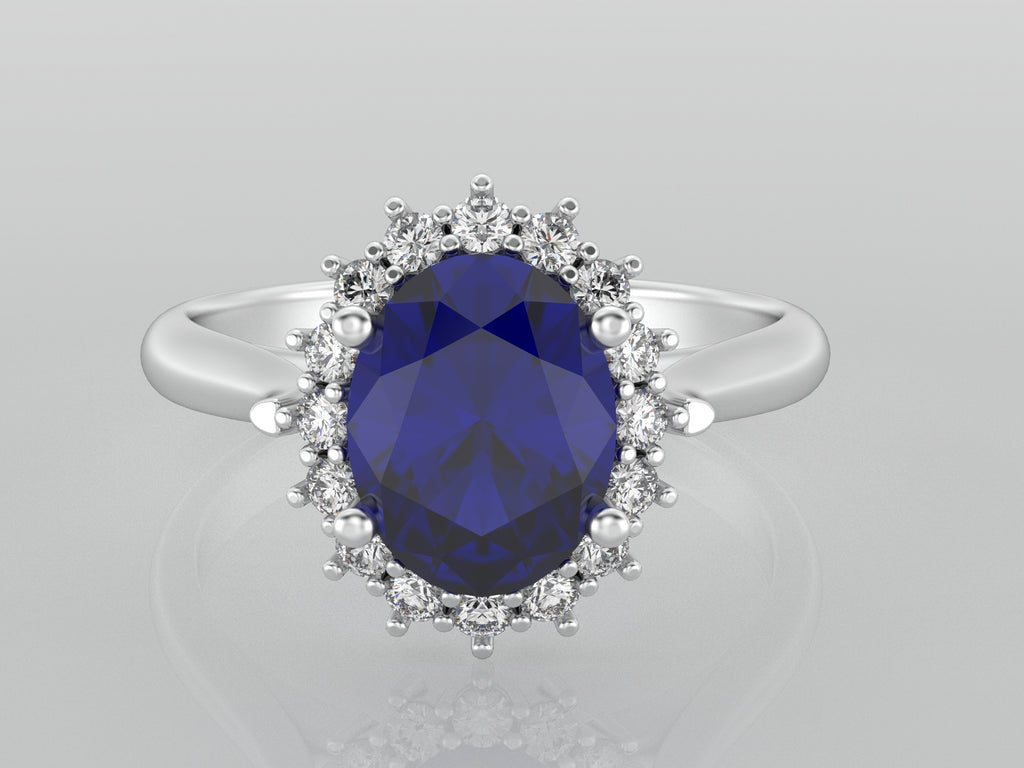 Bridget 1.5 Ct Oval Cut Halo Blue Sapphire Engagement Ring