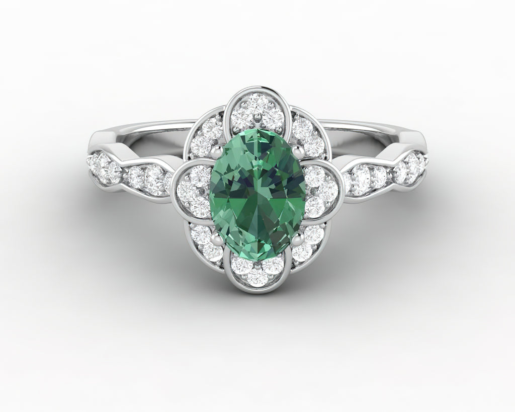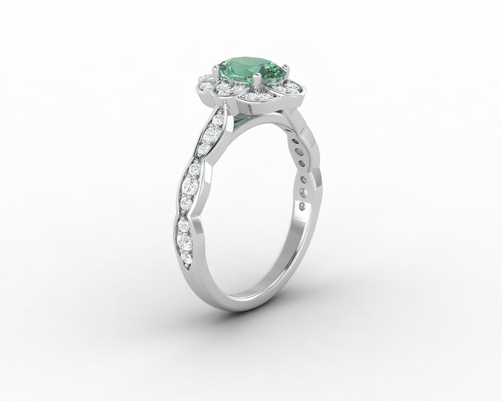 Vivienne 1.0 Ct Oval Cut Natural Green Sapphire Engagement Ring