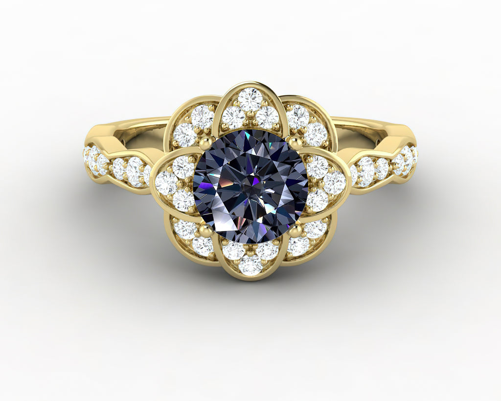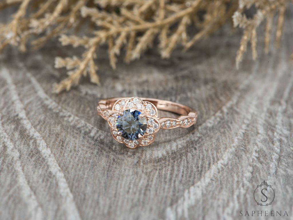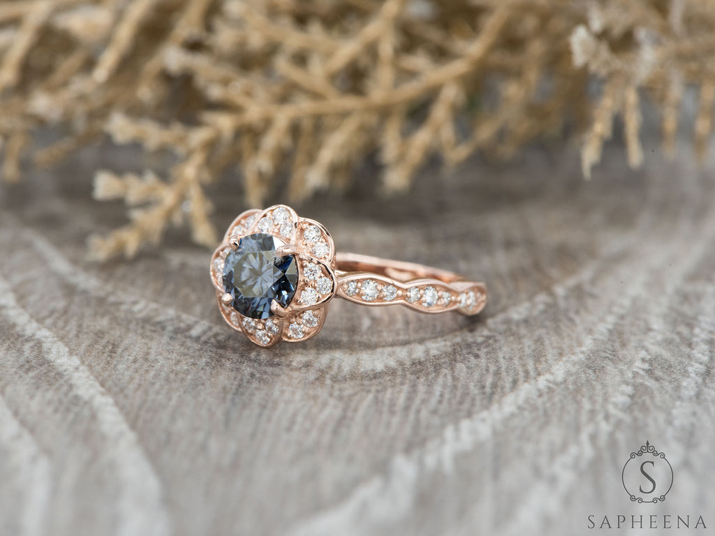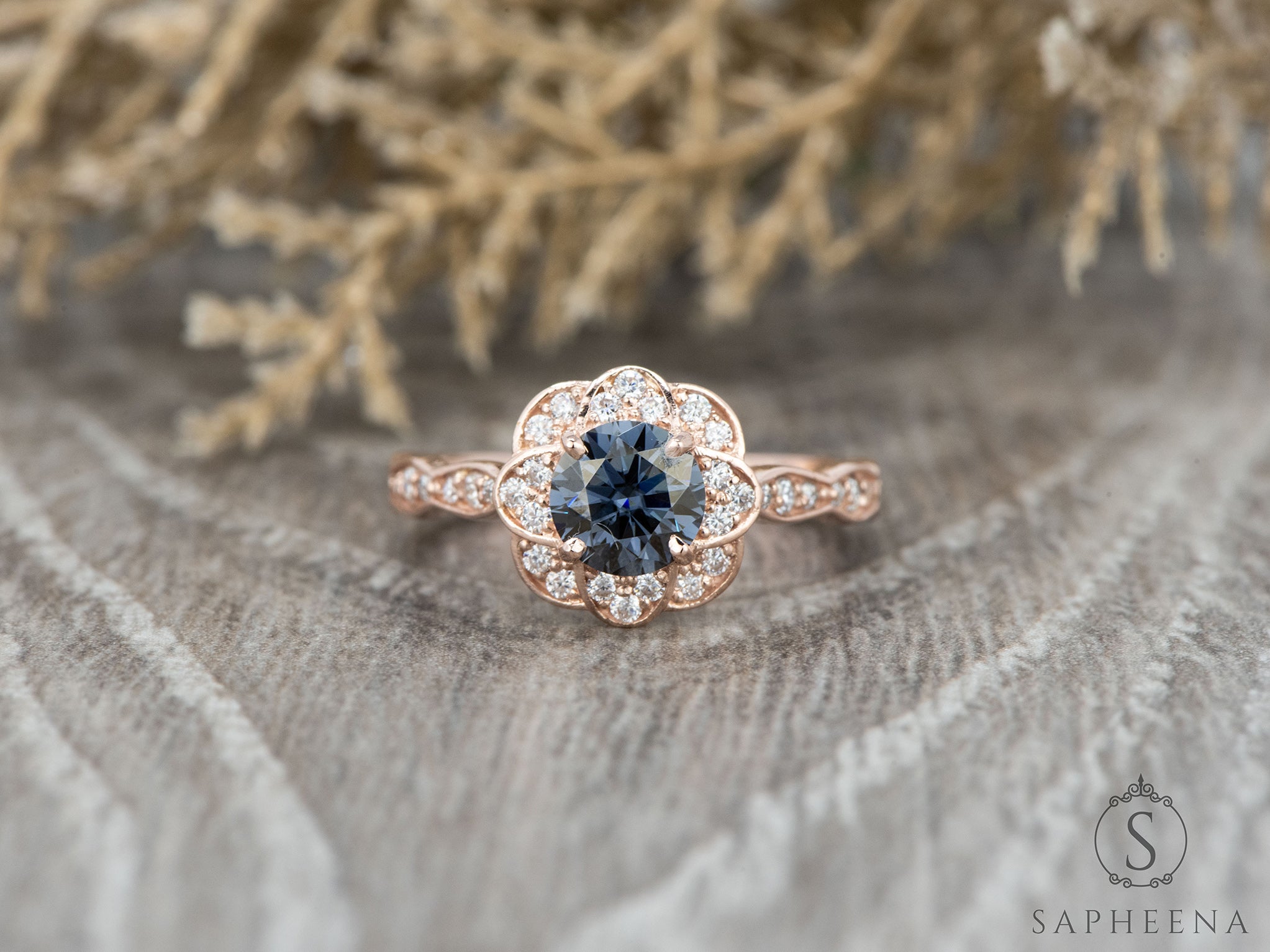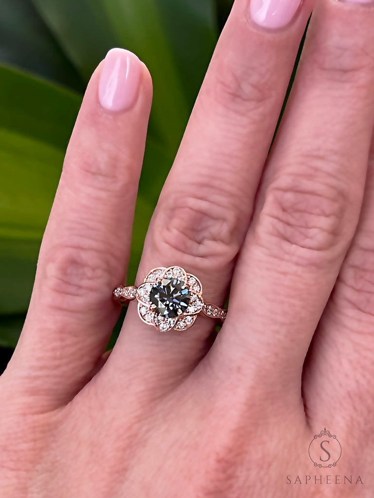 Vivienne 1.25 Ct Round Cut Grey Moissanite Engagement Ring