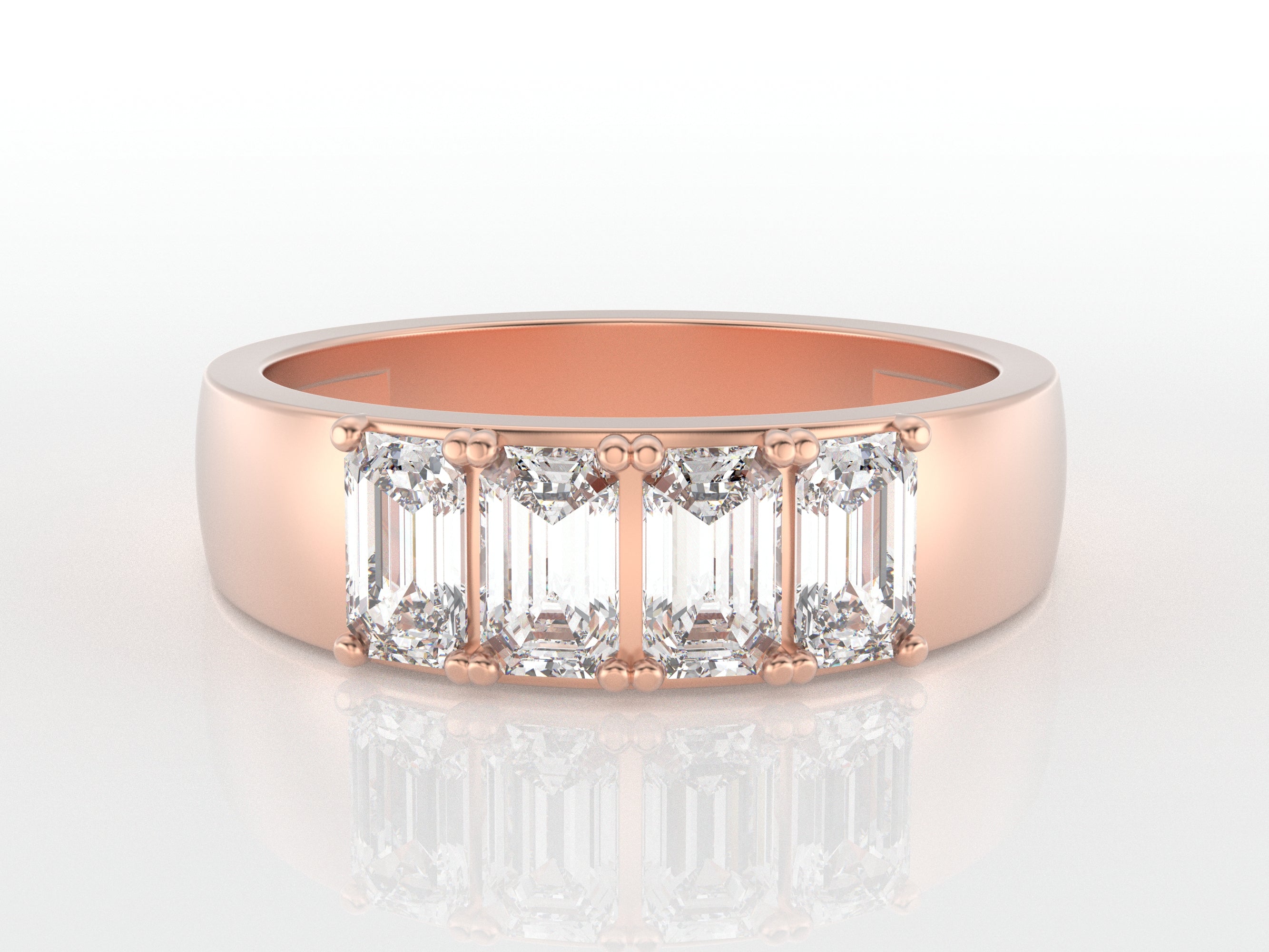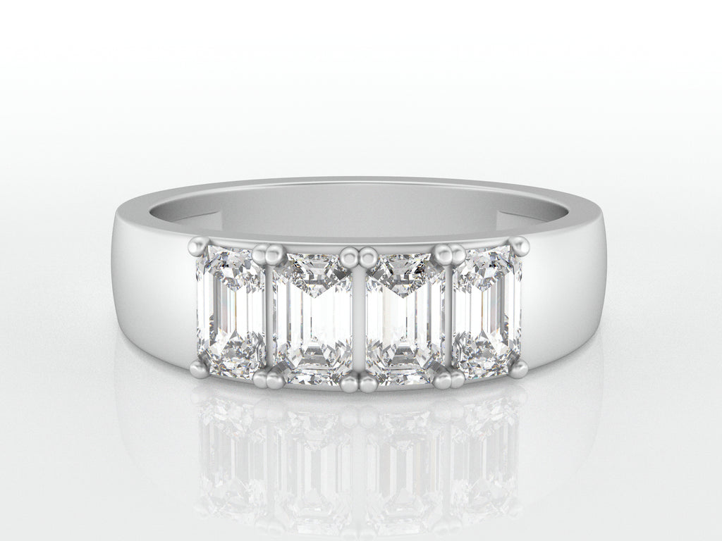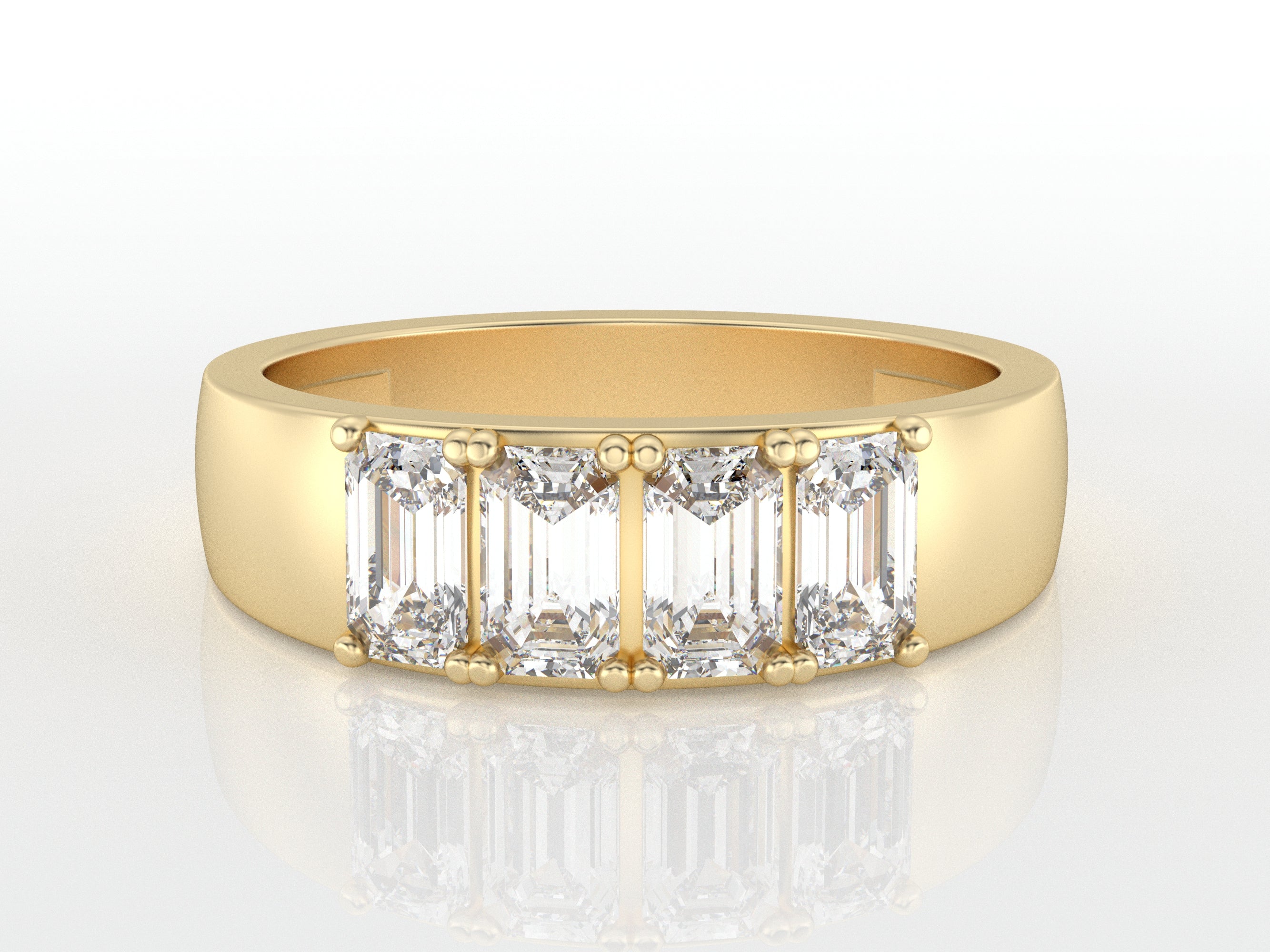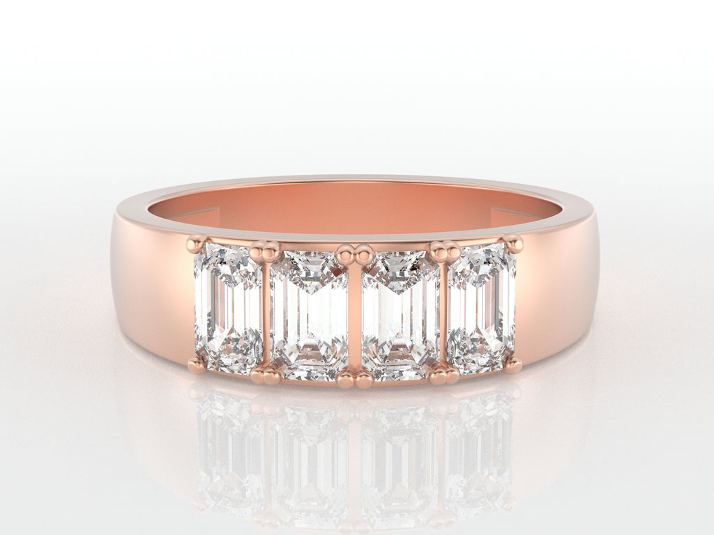 The Liora Band is a timeless solid gold ring set with four brilliant emerald cut stones. Available in lab-grown diamond or natural diamond. Its sleek silhouette and radiant sparkle make it a perfect anniversary ring, stackable band, or elegant daily statement.