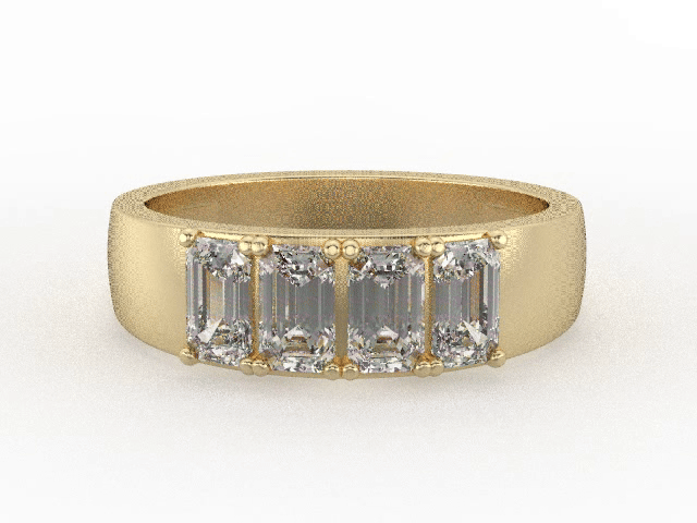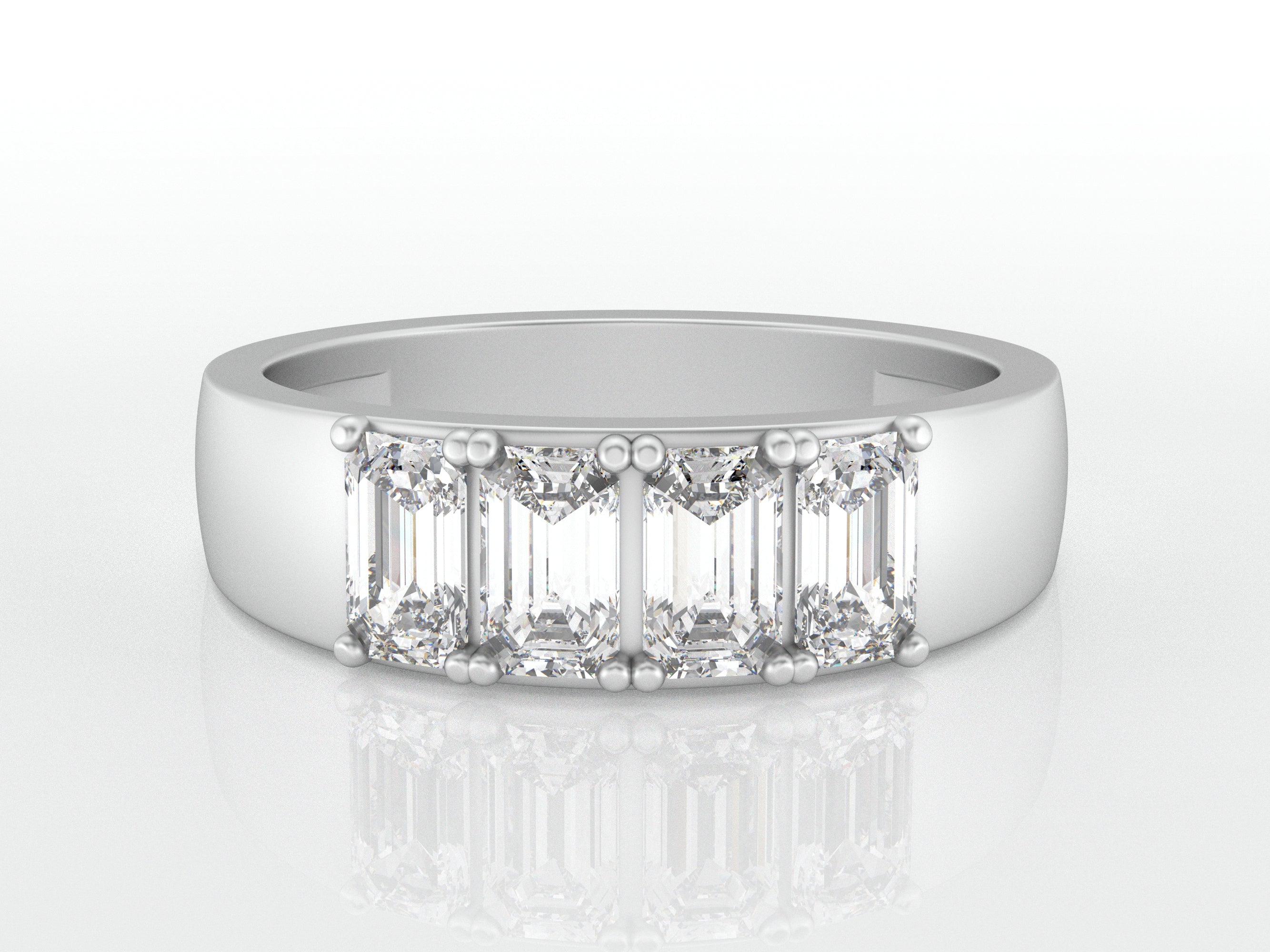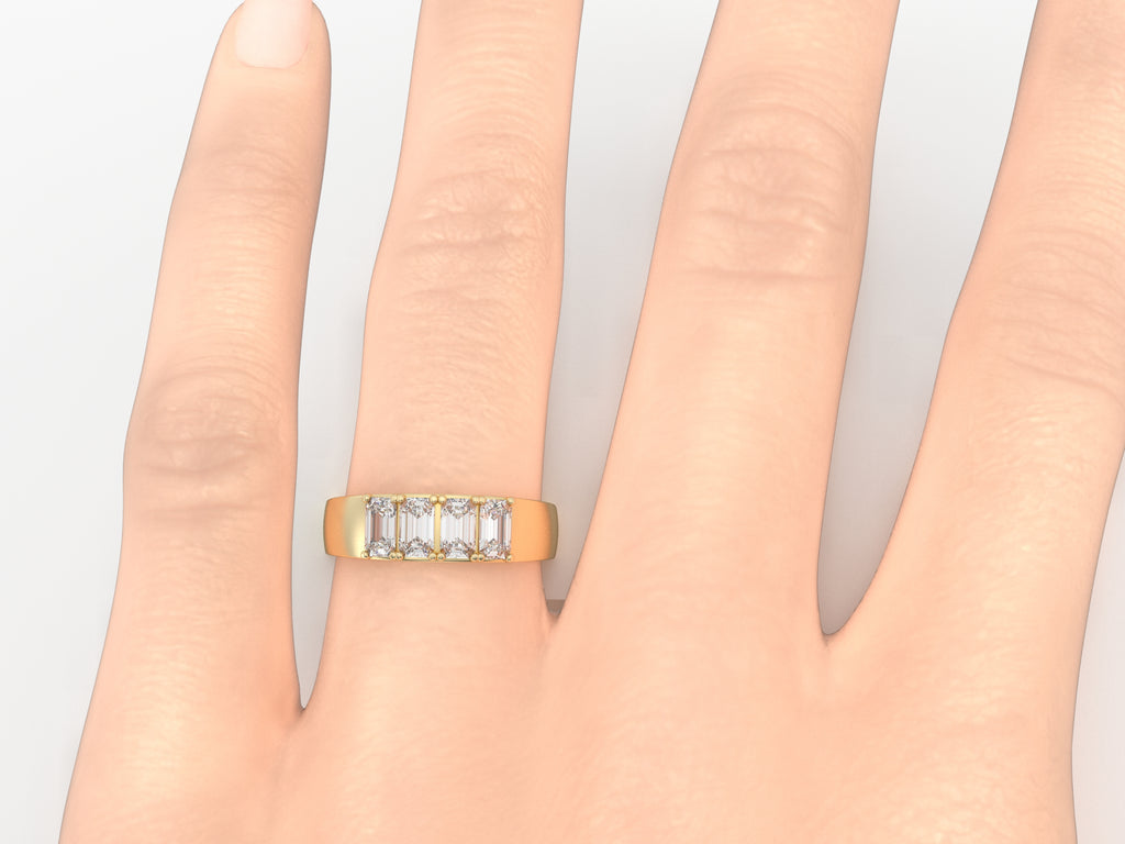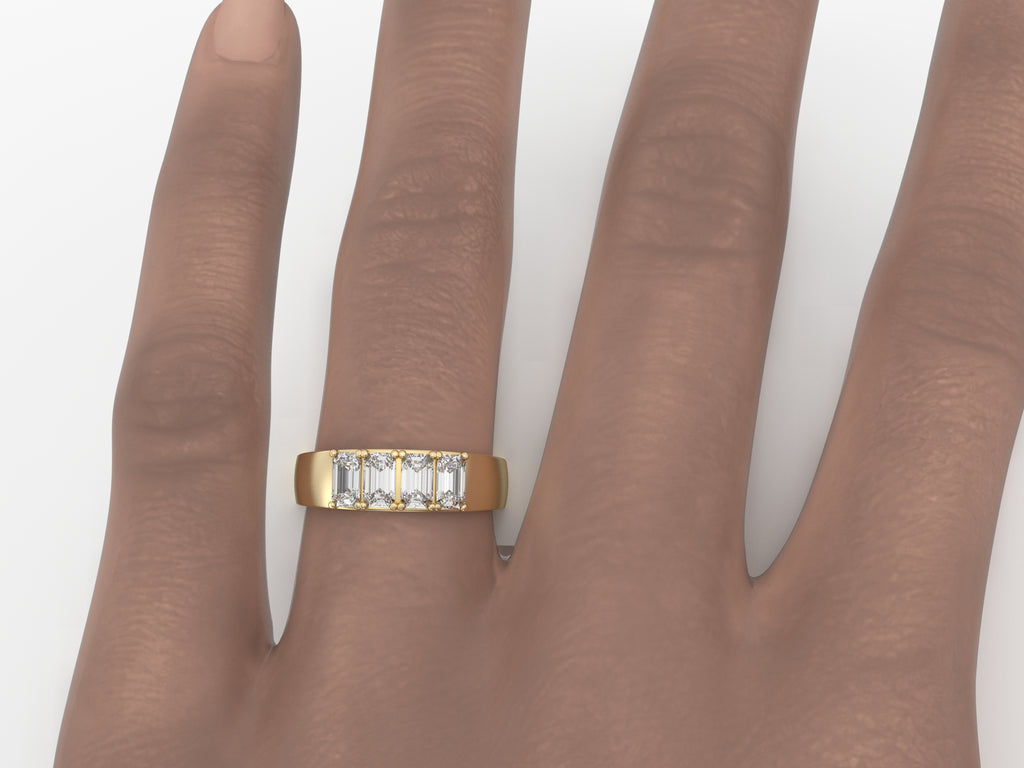 The Liora Band is a timeless solid gold ring set with four brilliant emerald cut stones. Available in lab-grown diamond or natural diamond. Its sleek silhouette and radiant sparkle make it a perfect anniversary ring, stackable band, or elegant daily statement.
