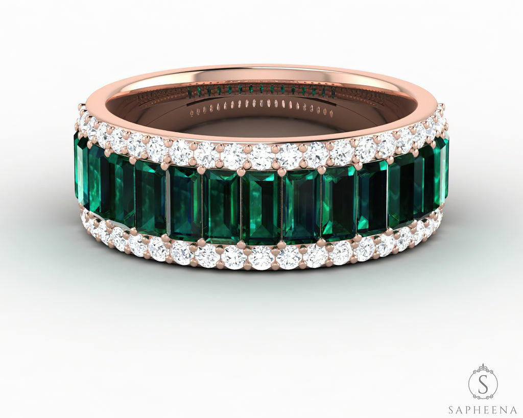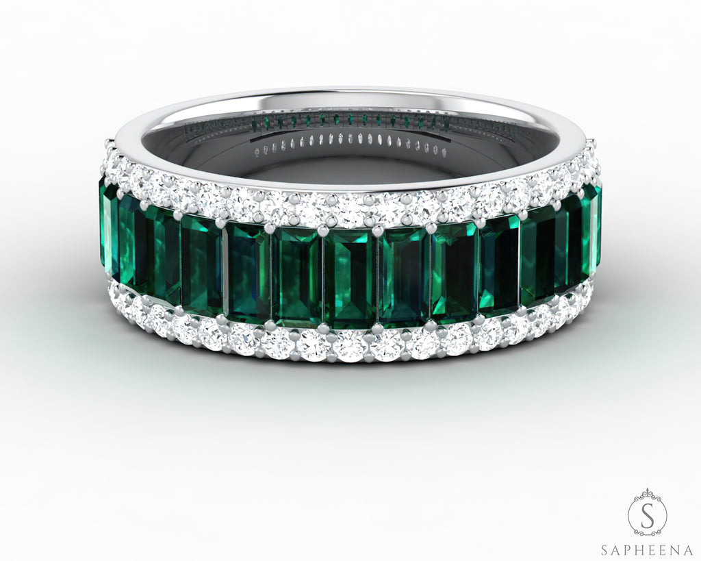 Serena 2.0 Ct Triple Row Green Emerald Half Eternity Wedding Band
