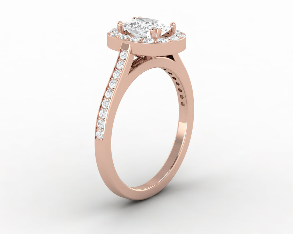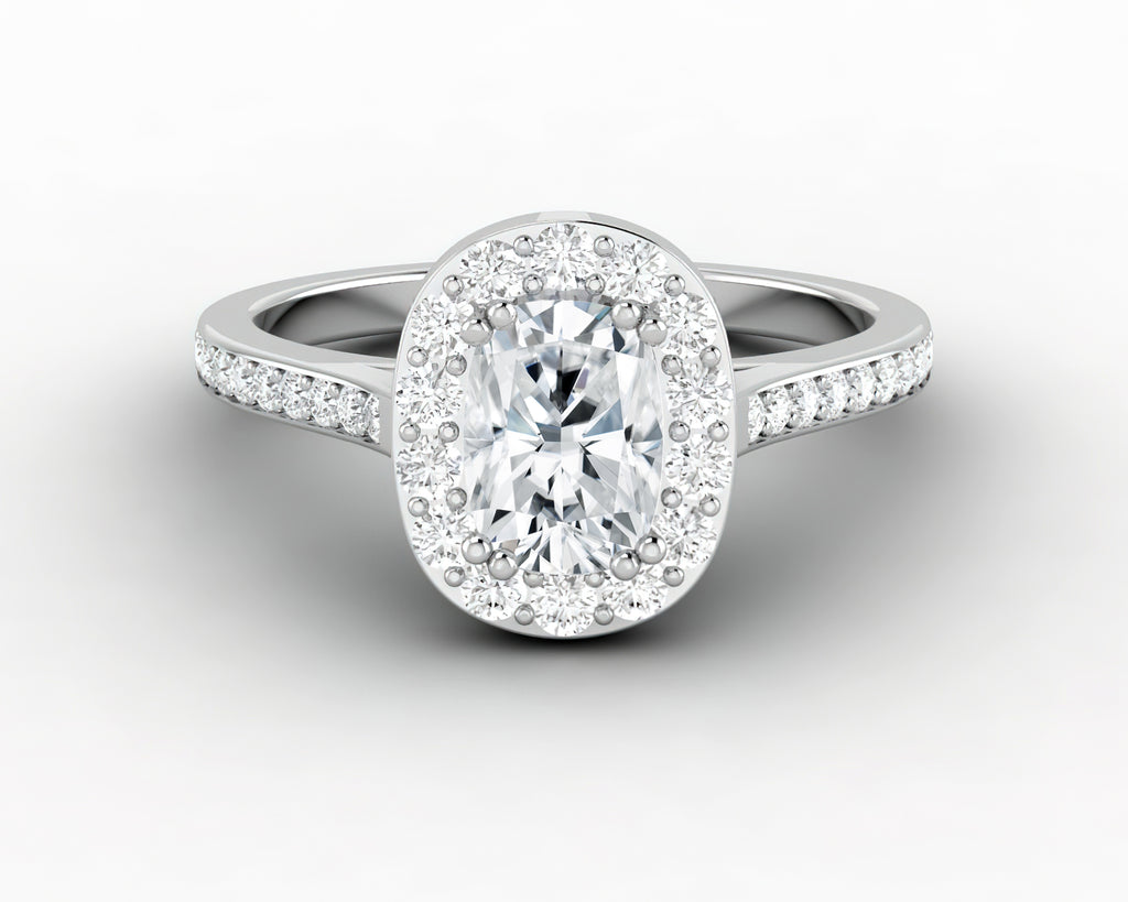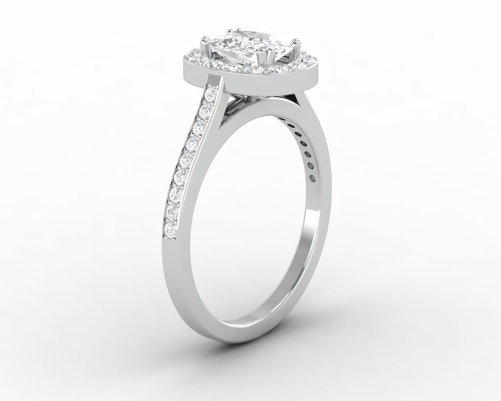 Aureola 1.0 Ct Elongated Cushion Cut Halo Engagement Ring with Side Stones