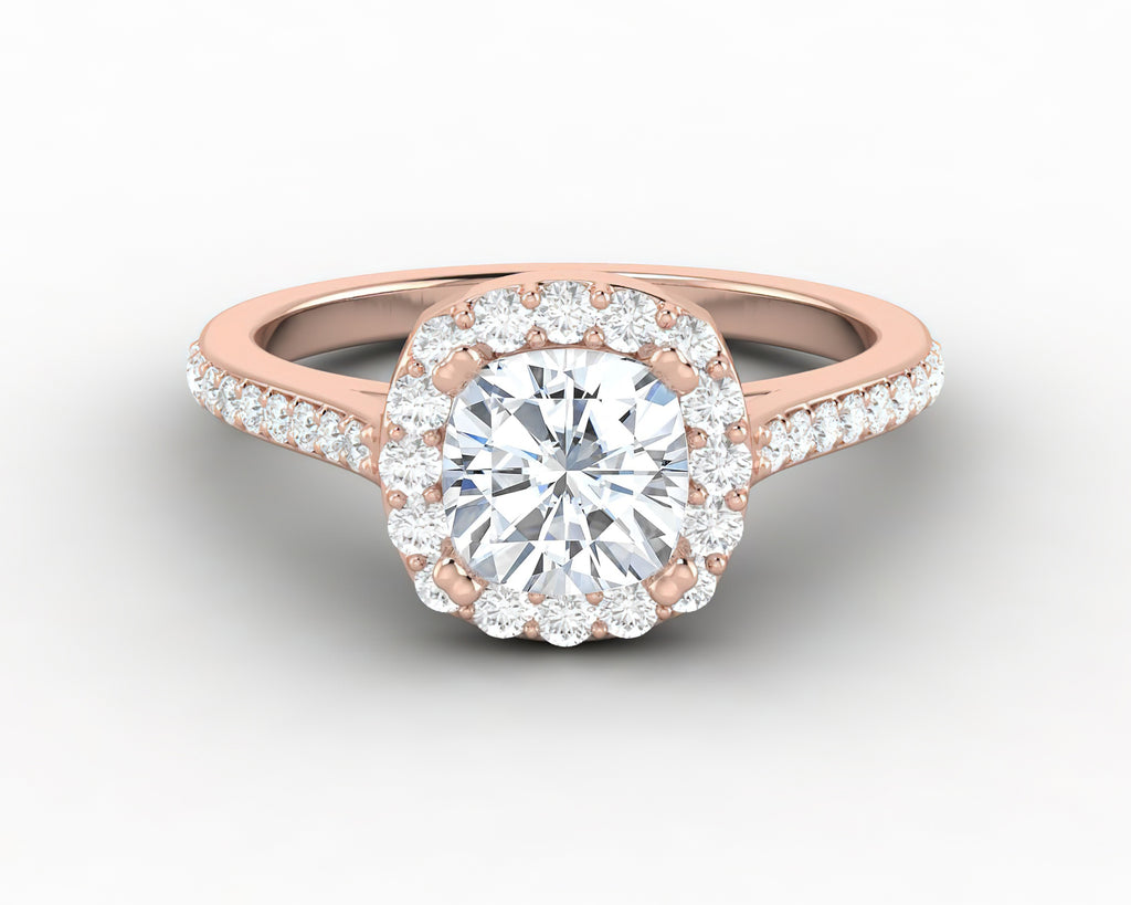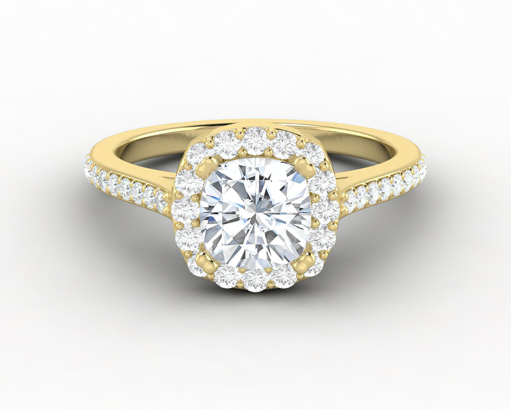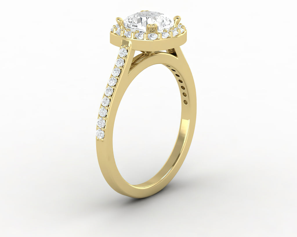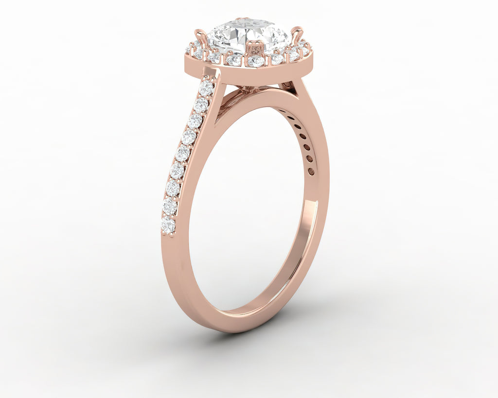 Aureola 1.0 Ct Cushion Cut Halo Engagement Ring with Side Stones