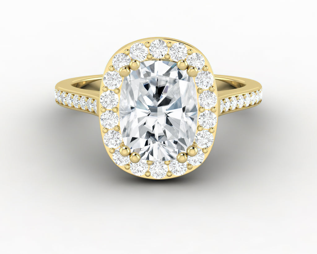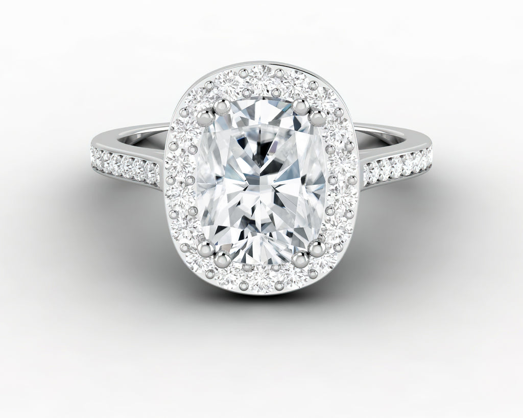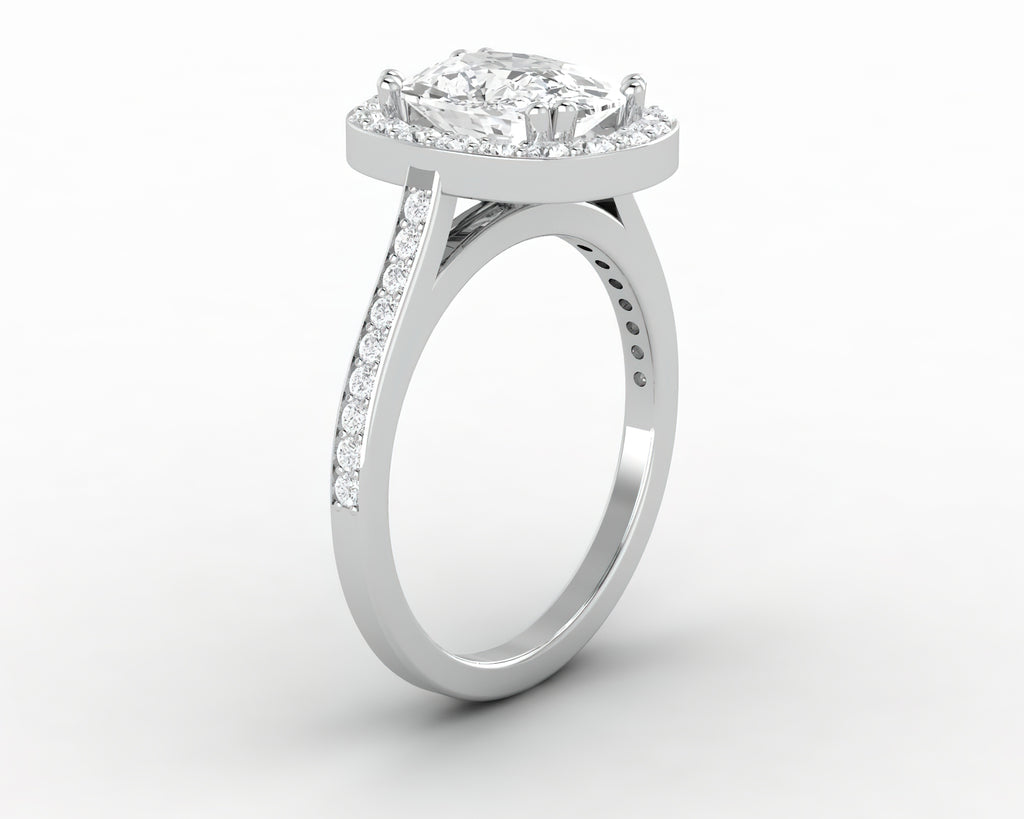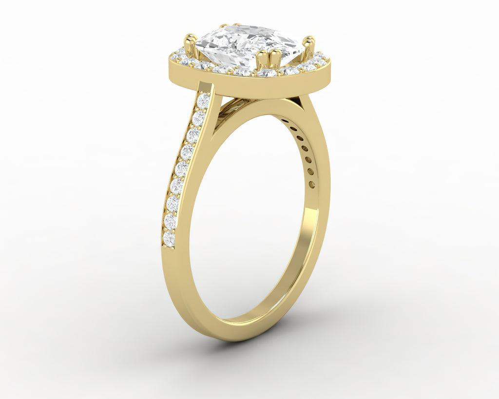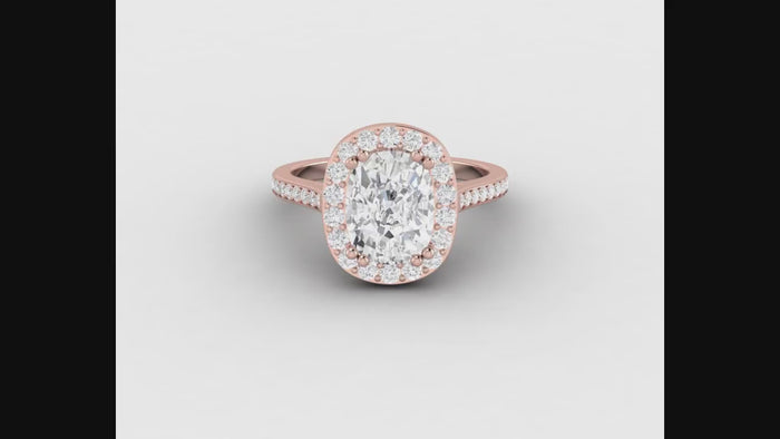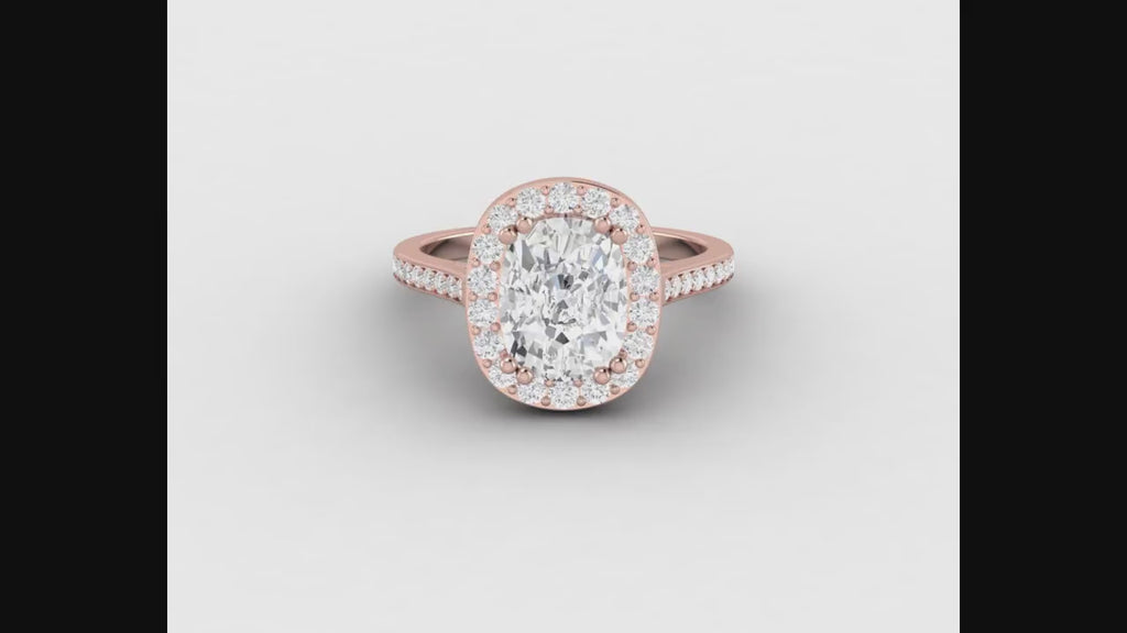 Aureola 2.25 Ct Elongated Cushion Cut Halo Engagement Ring with Side Stones