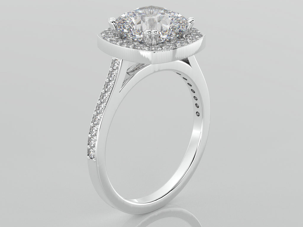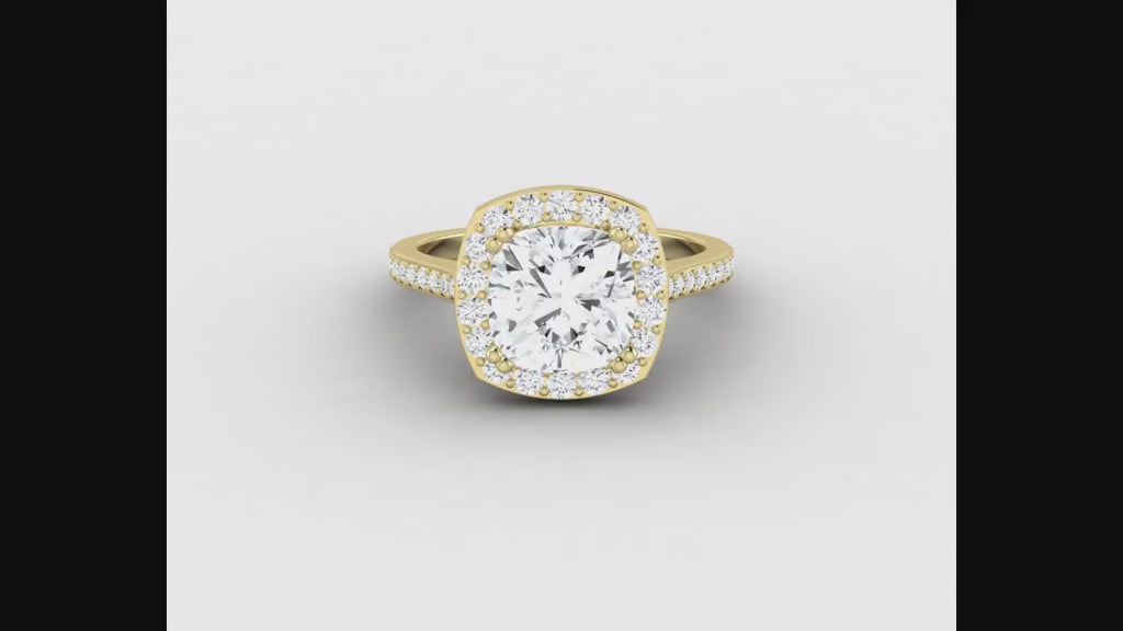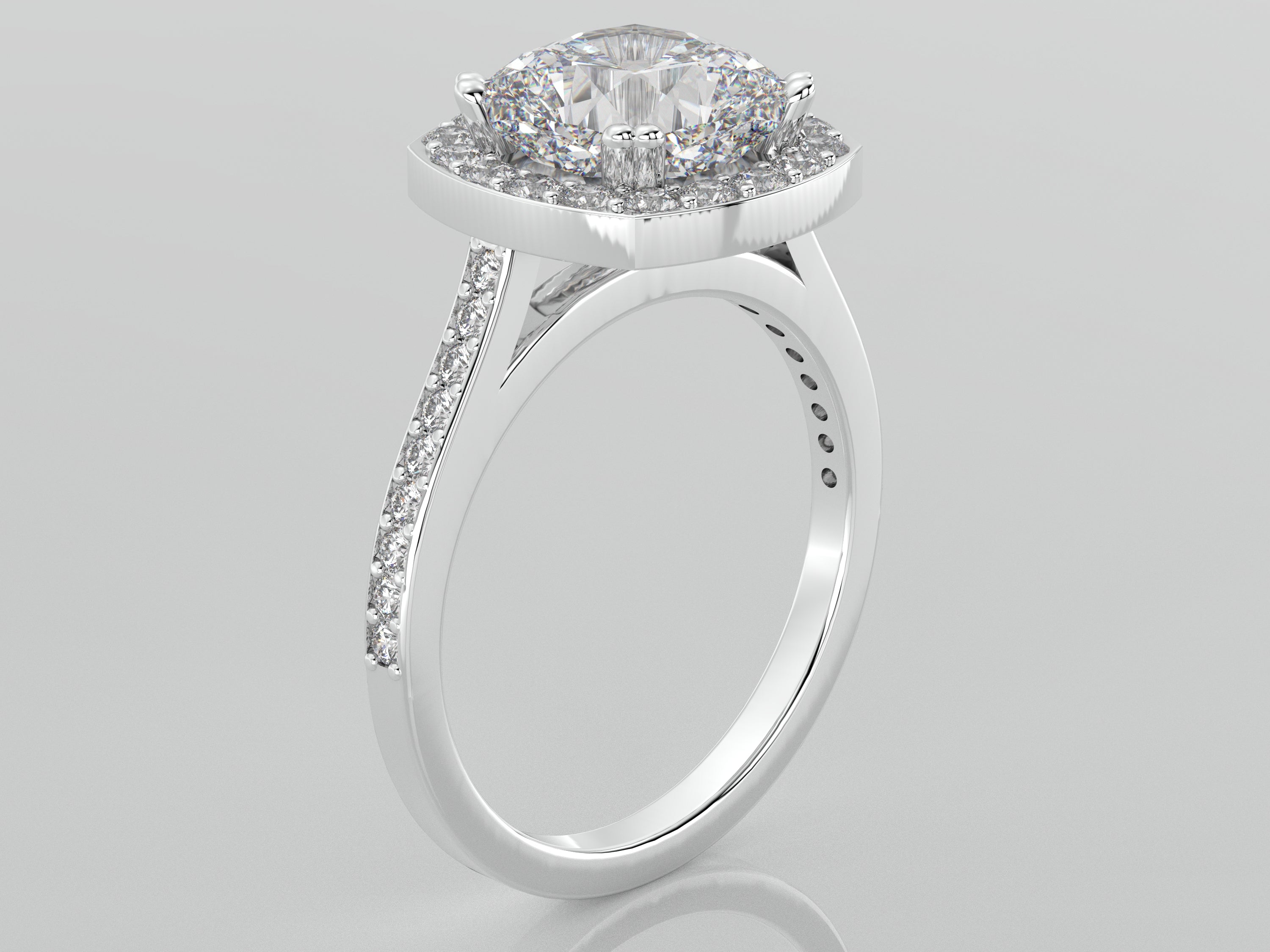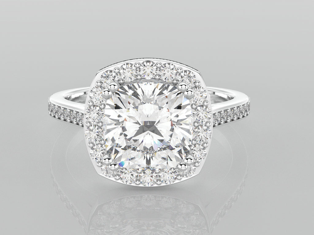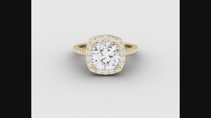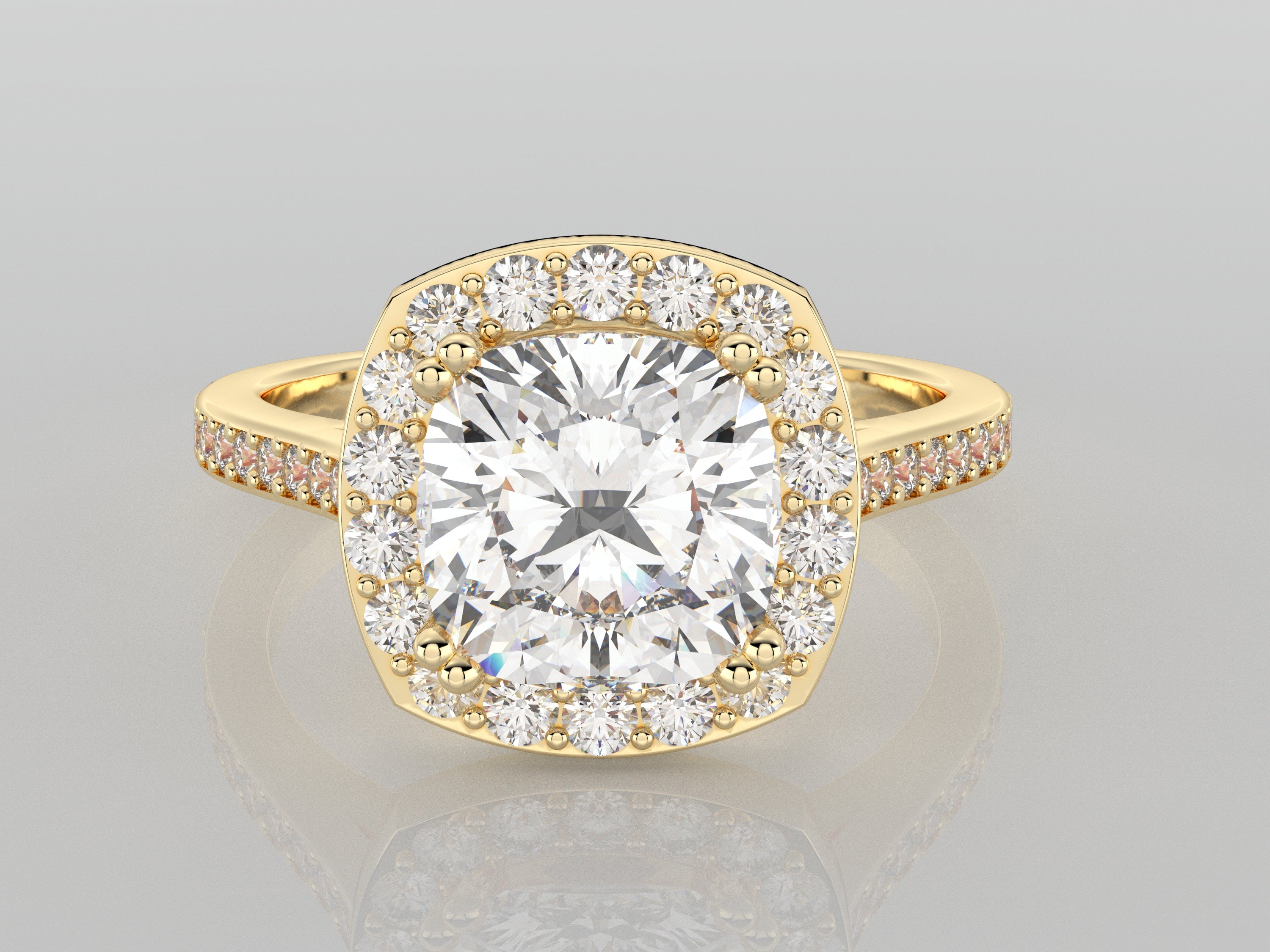 Aureola 2.0 Ct Cushion Cut Halo Engagement Ring with Side Stones