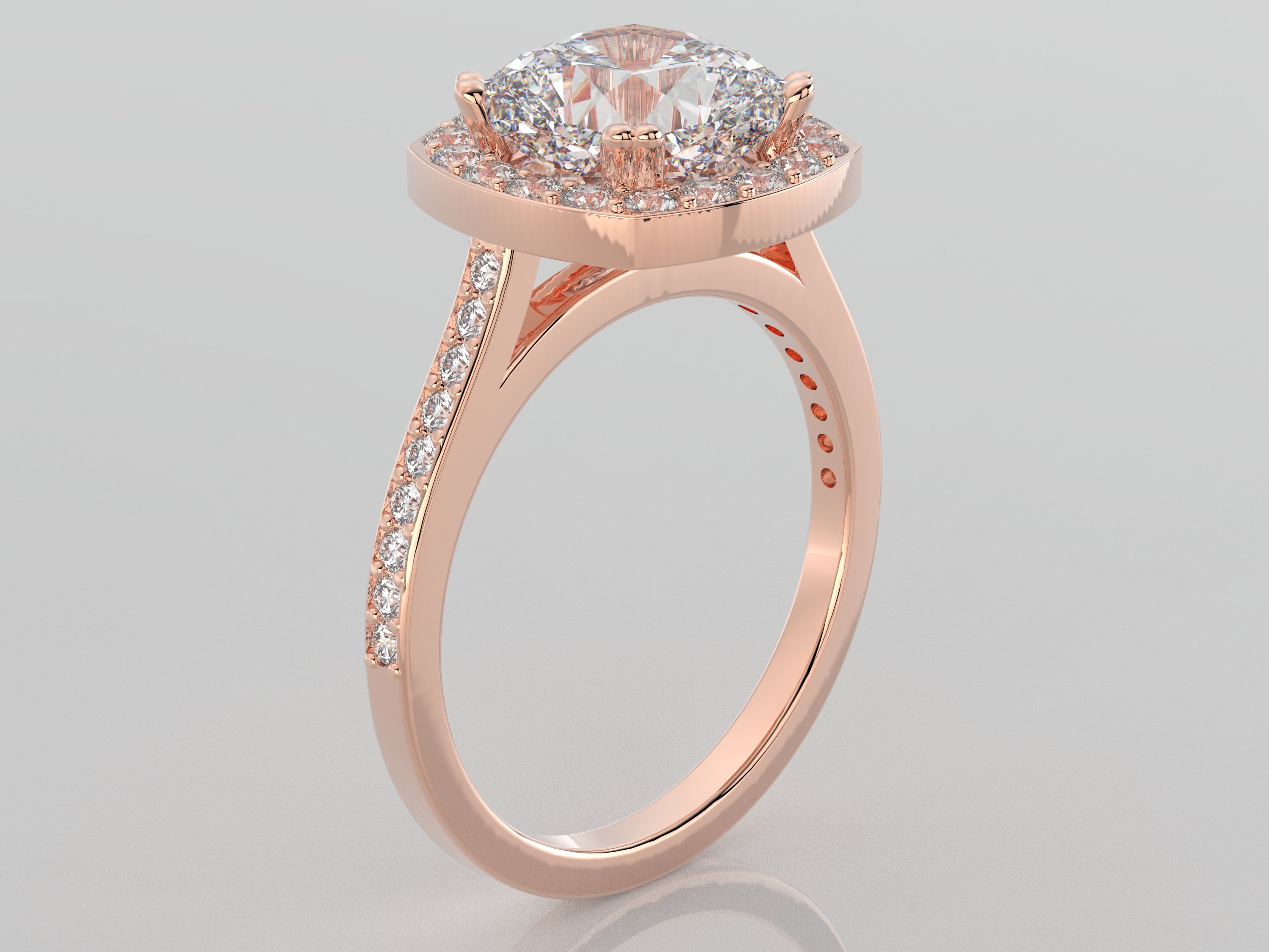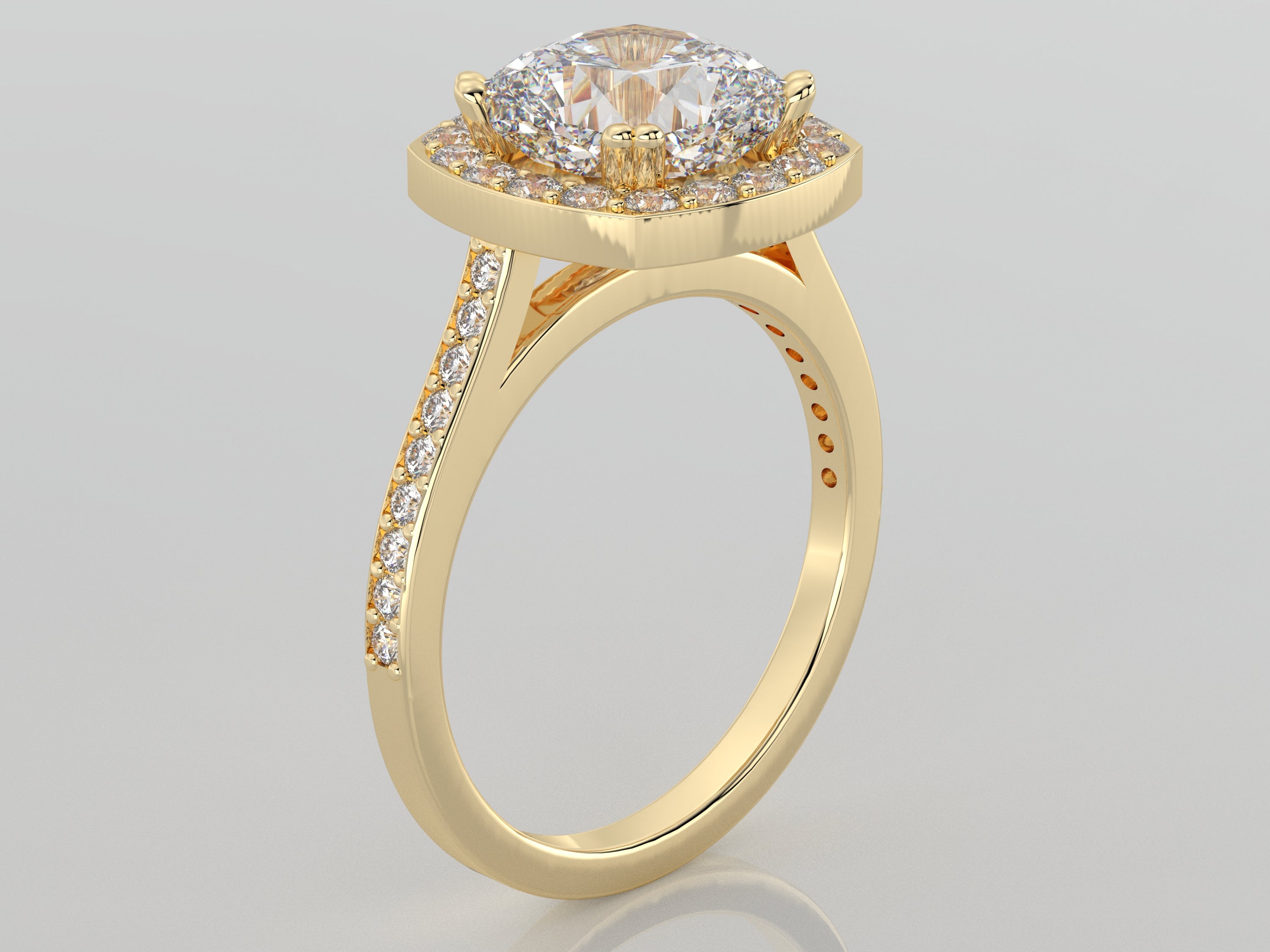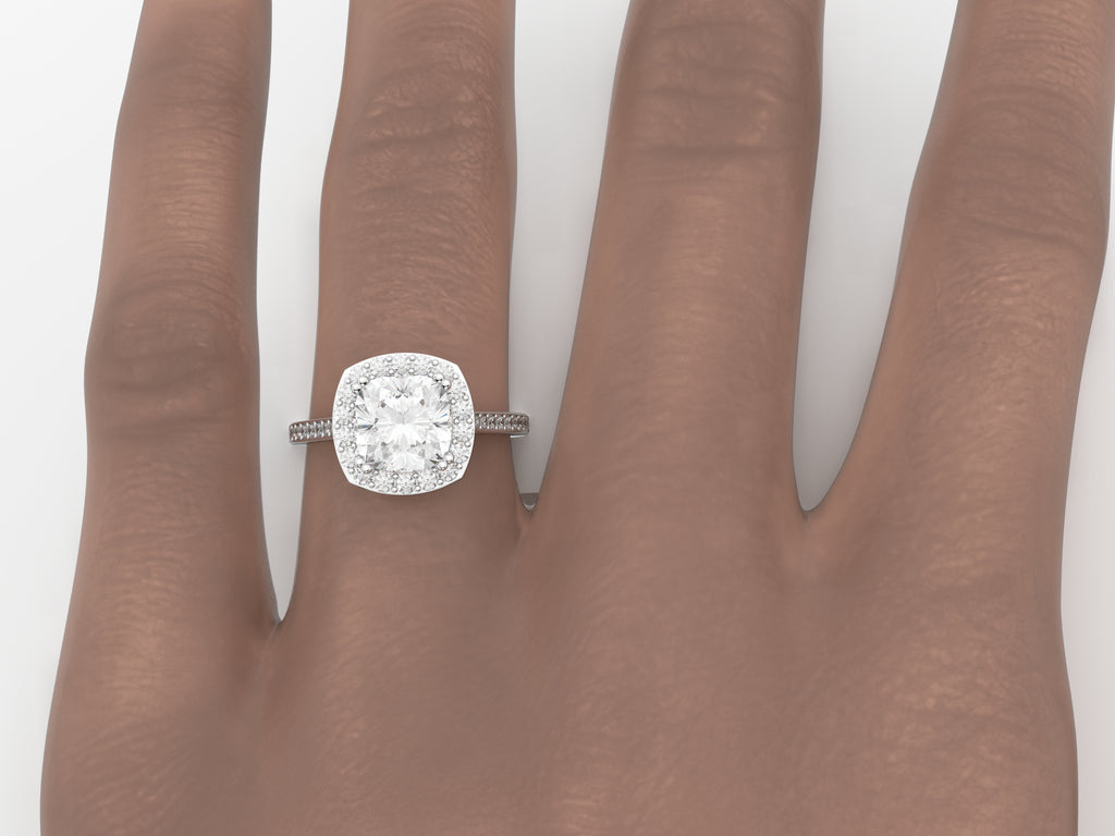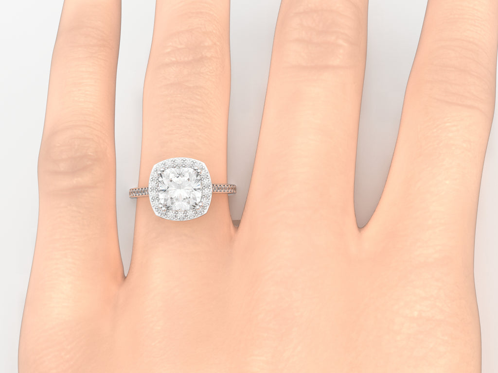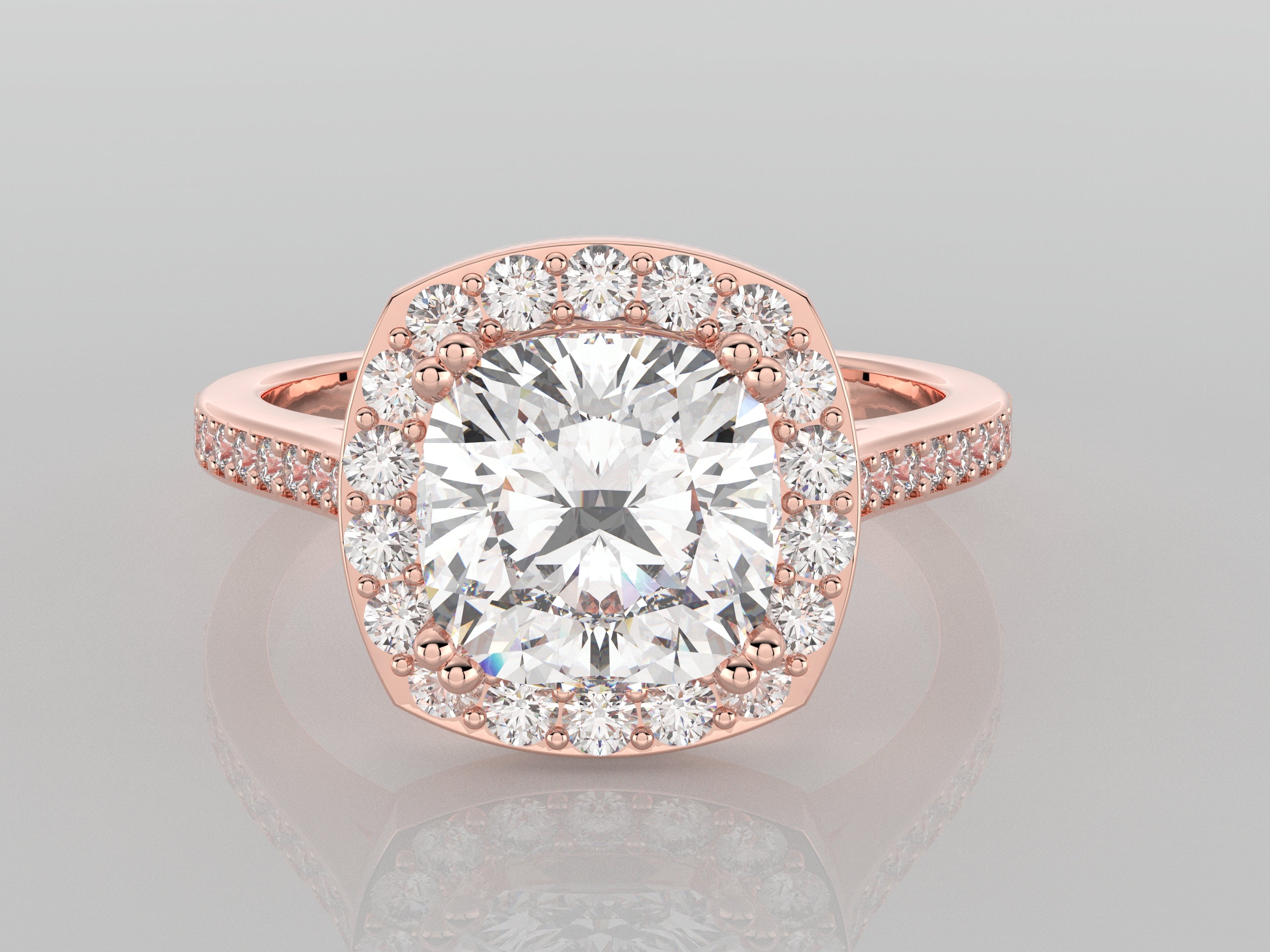 Aureola 2.0 Ct Cushion Cut Halo Engagement Ring with Side Stones