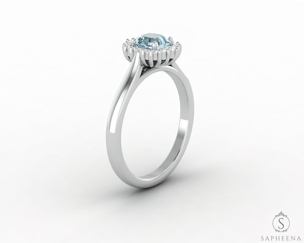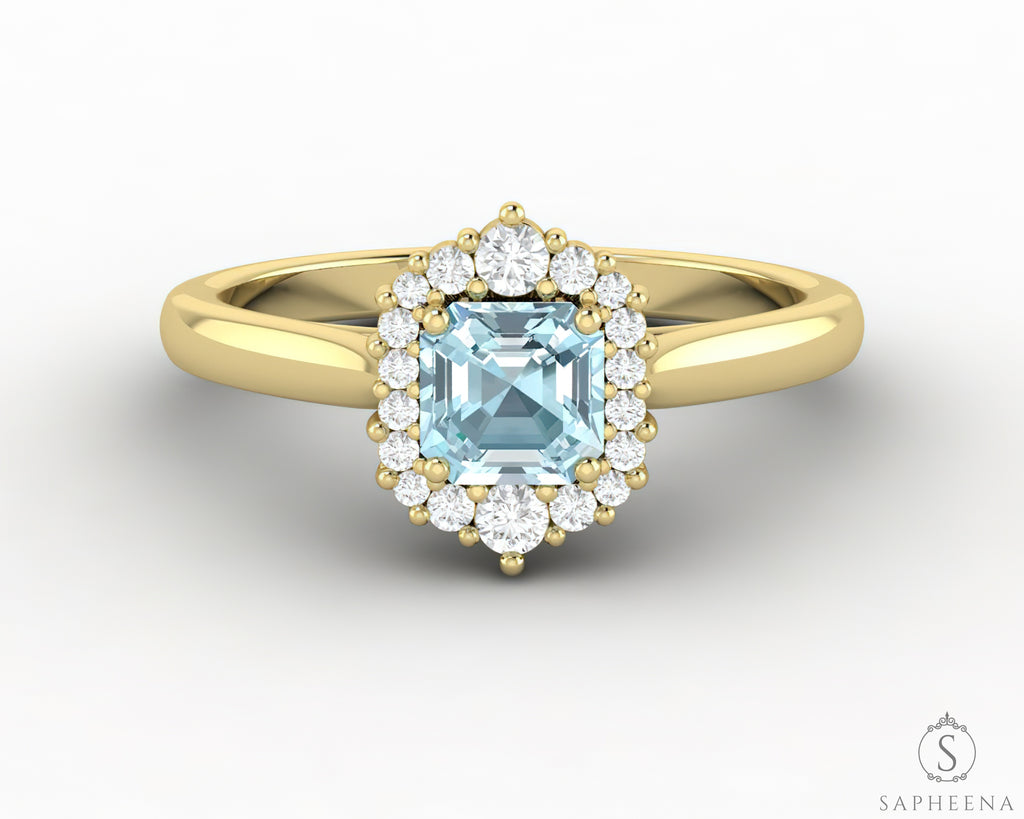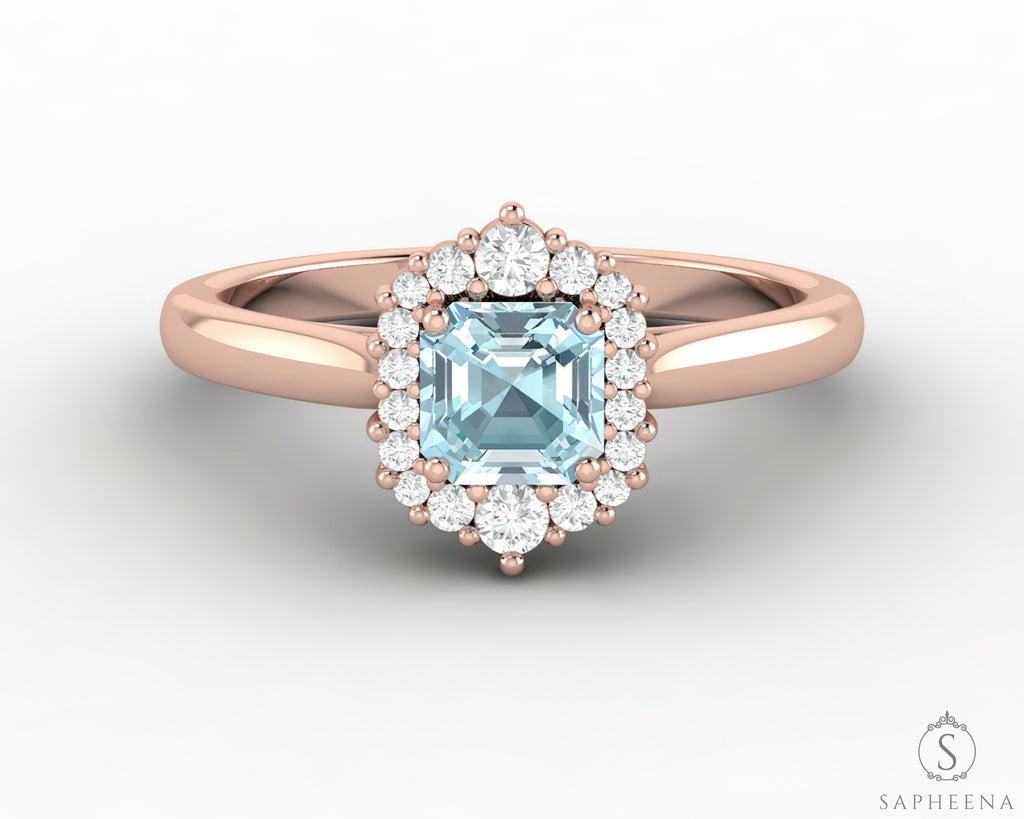 Juno 0.75 Ct Asscher Cut Halo Natural Aquamarine Engagement Ring